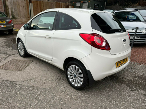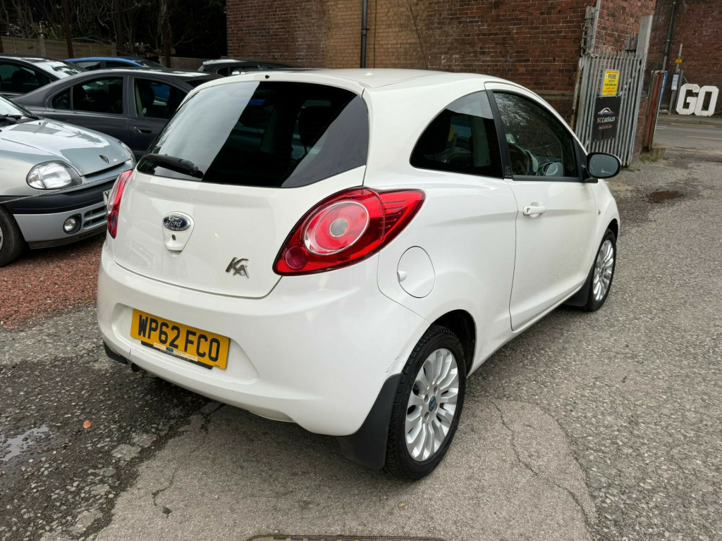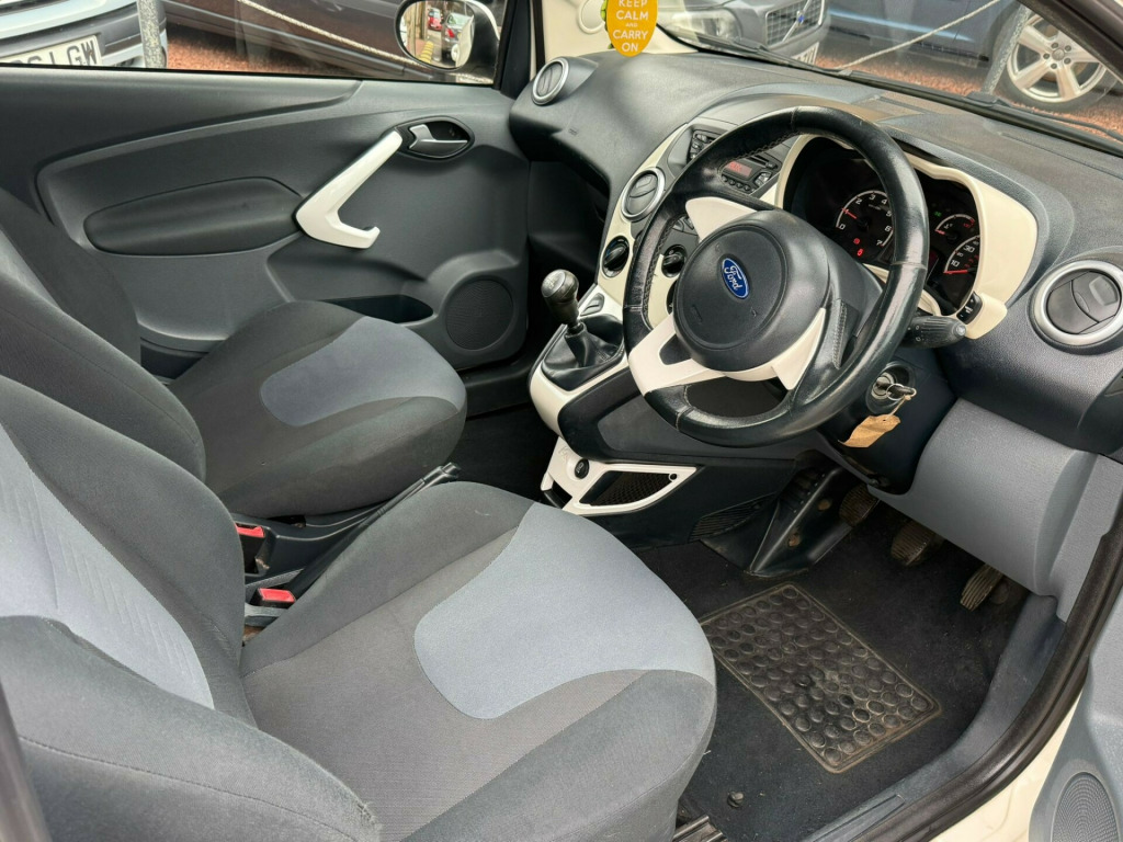 I AM SELLING THIS CAR ON BEHALF OF A THIRD PARTY. JUST IN STOCK A NICE CLEAN AND TIDY FORD KA 1.2 ZETEC PETROL MANUAL WHITE 3 DOOR HATCHBACK. THIS CAR COMES WITH FULL SERVICE HISTORY AND WILL HAVE 12 MONTHS MOT. THESE MAKE GREAT FIRST TIME CARS COMING WITH CHEAP TAX AT £35.00.PART EXCHANGES WELCOMED. ALL MAJOR CREDIT AND DEBIT CARDS ACCEPTED. ALL VIEWINGS STRICTLY BY APPOINTMENT ONLY. v power socket - front, aux connection, cd radio with mp3 and aux in connector - six radio speakers, 15in alloy wheels - multispoke, body colour bumpers, door handles - body colour, door mirrors - power operated with body colour housings heated, electrically-operated front windows with one touch drivers, front towing hook, headlights - manual control, heated front windscreen, rear privacy glass, tailgate handle - body colour, tyre mobility kit, windscreen - heated with heated washer jets, abs - anti-lock braking system, airbags - front passenger, airbags - passenger deactivation, driver seat belt minder, drivers airbag, eba - emergency brake assist, ebd - electronic brakeforce distribution, emergency brake warning, engine immobiliser, front seat belts with pre-tensioners, immobiliser - safeguard passive anti-theft system - pats - insurance-approved category 2 immobiliser, manual locking doors, rear seats - isofix fittings, rear seat - head restraints, remote central locking, air conditioning - manual, flexible accessory holder - pearl white, floor mats - front and rear - velour, floor mounted centre console - with single cup holder, front ashtray and cigar lighter, front dome light, front seatback map pockets - driver and passenger, front seats - driver tipping seat with easy entry - driver memory function, gearshift, high series analogue cluster, loadspace compartment light, passengers seat manual 2-way adjustment, rear seat - 50-50 split rear seat, removable rear parcel shelf, seats - drivers 4-way adjustment, steering wheel - leather-trimmed, steering column - rake adjustable, stowage box - front passenger underseat area, sunvisor - drivers with vanity mirror, sunvisor - passenger with vanity mirror, theatre style dimming, theatre-style dimming, epas - electric power assisted steering, front suspension - independent with macpherson struts, gearshift indicator light, mba - mechanical brake assist, trip computer, front fog lights, headlights - courtesy delay, headlights - halogen, headlights - levelling system - automatic, high mounted brake light