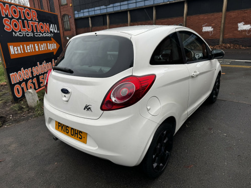 MOT 06.11.205. Service History. 2 keys. £35 road tax. Ai con. USB. Bluetooth phone conn. Very nice little car with low miles and cheap TAX. Ford Ka 1.2 Zetec White Edition finished in White (Manual), 36000 miles, , , Only £4,995, , FINANCE AVAILABLE, PLEASE ASK FOR OUR COMPETITIVE FINANCE DEALS. ALL MAJOR CARDS ACCEPTED. INSPECTIONS WELCOME. WE ARE OPEN MONDAY TO SATURDAY 10.00 TO 17.00. All our cars comes with HPI check, Warranty and Full Valet. Part exchange welcome, please ring for details. Open Monday to Saturday 10.00 to 17.00. Full dealer facilities. Please visit our website www.motorsolution4u.co.uk 172 CHESTERGATE, STOCKPORT, SK3 0BQ