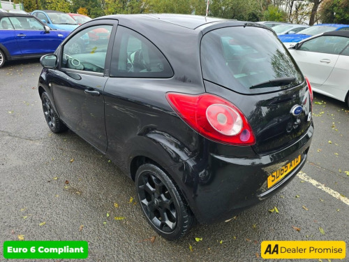 This 2015 Ford Ka Zetec Black Edition boasts an MOT valid until June 2026, offering you peace of mind for the road ahead. This stylish Ka is powered by an efficient 1.2 litre petrol engine, meeting Euro 6 emissions standards. Inside, you'll find convenient features such as manual air conditioning to keep you comfortable and Bluetooth hands free phone connectivity for safe and easy communication on the go. The Zetec Black Edition trim level is designed to impress, and this particular model stands out with its impressive fuel economy of 58 miles per gallon, making it an economical choice for your daily journeys. Furthermore, its low insurance group rating indicates that running costs are kept to a minimum, setting it apart from many other vehicles in its class. 12V Power Socket - Front, 16in Alloy Wheels - 5 Spoke - Y Design -, ABS - Anti-lock Braking System, Air Conditioning - Manual, Air Vents - White Accents, Airbags - Front Passenger, Airbags - Passenger Deactivation, AUX Connection, Bluetooth Hands-free Phone, Body Colour Exterior Mirrors, Bumpers - Front and Rear - Body Colour, Centre Console - Pearl White, Connectivity Pack, Cup Holder, DDS - Deflation Detection System, Door Handles - Body Colour, Door Mirrors - Electrically Operated and, Driver Seat Belt Minder, Drivers Airbag, EBA - Emergency Brake Assist, EBD - Electronic Brakeforce Distribution, Electric Windows - Front, Emergency Brake Warning, Engine Immobiliser, EPAS - Electric Power