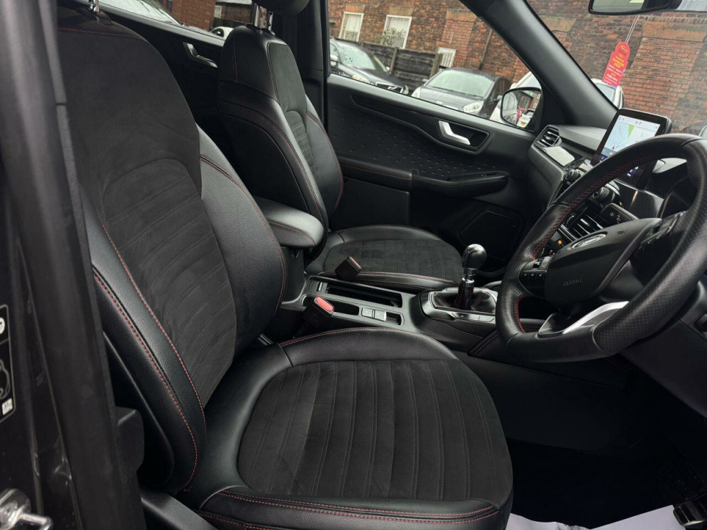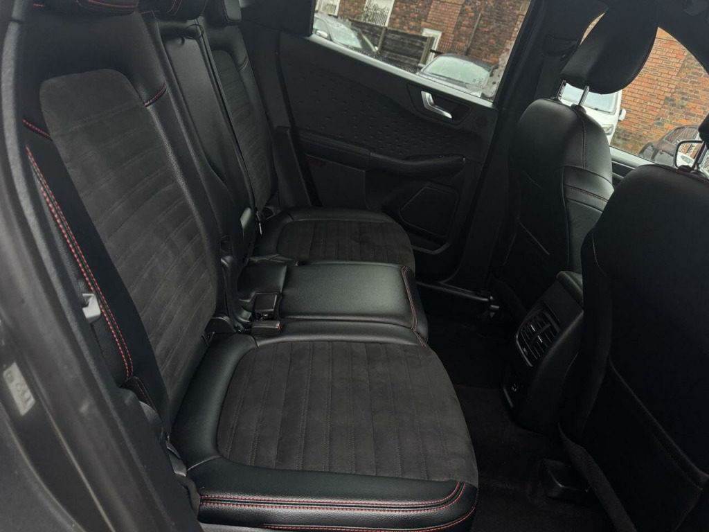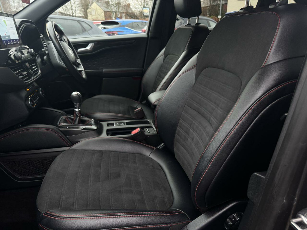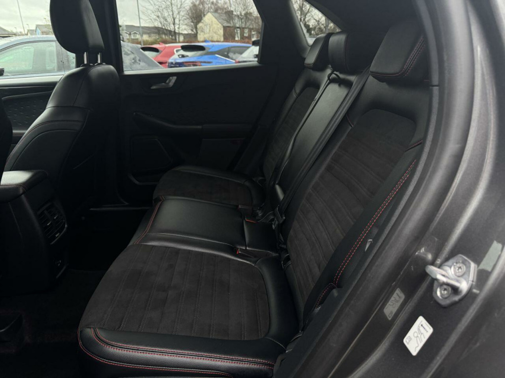 . 10-Way Power Adjustable Drivers Seat, 12v Power Point in Cargo Area, 12V Power Point in Floor Console, 12v Socket - Voltage Regulator, 18in Alloy Wheels - 10 Spoke - Rock Metallic, 2nd Row Sliding Seats with 60-40 Split, 8-Way Manual Passenger Seat including Lumbar Support and Height Adjust, Airbag - Driver and Front Passenger Side, Airbag - Front Passenger Deactivation Switch, Airbags - Driver and Front Passenger, Airbags - Front and Rear Side Curtain, Alloy Pedals, Aluminium - Finish Front Scuff Plates with ST-Line Script, Ambient Lighting, Auto Dimming Rear View Mirror, Auto Wipers, Automatic Door Relocking, Automatic Headlights with Auto High-Low Beam, B and O Premium Audio System with Large Instrument Cluster, Black Roof Rails, Centre Console with Electronic Parking Brake, Cruise Control with Adjustable Speed Limiter, Dark Headliner and Pillars, Driver and Passengers Sun Visor with Illumination, Dual Exhaust Tailpipes with Unique Brushed Stainless Steel Finish, Dual Zone Electronic Automatic Temperature Control - DEATC, Engine Immobiliser - SecuriLock, EPAS - Electric Power Assisted Steering, ESC - Electronic Stability Programme and ABS - Anti Lock Braking System, Exterior Door Handles - Body Coloured, Flat Bottom Steering Wheel in Sensico with Red Stitching, Floor Mats - Front and Rear - ST-Line, Ford Easy Fuel System, Ford Key Free System with Ford Power Start Button - Keyless Start, FordPass Connect, Front and Rear Bumper - Sporty Body Colour with Rear Ebony High-Gloss Insert, Front and Rear Parking Sensors, Front LED Fog Lights with Cornering Function, Front Seats - 2-Way Manual Height Adjust Passive Head Restraints, Front Seats - Drivers and Passengers Seatback Map Pockets, Front Windows - Laminated Glass, Full Digital 12.3in Instrument Cluster, Full LED Headlamps, Gear Shift - Unique Leather Trimmed Knob with Satin Aluminium Insert and Red Gaiter Stitching, Glovebox Lights, Handsfree Power Tailgate, Headlights - Automatic Follow Me Home Lighting, Headlights - Unique Bending, Heated and Power Folding Door Mirrors with Puddle Lights, High-Mounted Brake Light, Intelligent Speed Assist, Kuga Badge, Lane Keeping Aid with Lane Departure Warning, Large Rear Spoiler, LED Daytime Running Lights, Load Compartment - Lights, Load Compartment - Tie Down Hooks, Load Compartment Carpet, Locking Wheel Nuts, Lower Bodyside Moulding - Body Colour, Lower Door Frame Beltline - Black, Manual Childproof Locks on Rear Doors, Mini Overhead Console with Sunglasses Holder Bin, Mobile Phone Wireless Charging Pad, MyKey Gen II, Post Collision Braking, Power Door Deadlocks - Double Locking, Power Door Locks, Power Front and Rear Windows with Shot up and Down - One Global Closing, Pre-Collision Assist with Autonomous Emergency Braking - Camera Detection, Privacy Glass, Quickclear Heated Windscreen, Rear Lights - LED, Rear Seat Centre Head Restraint, Rear Seats - 2-Way Head Restraint Up-Down, Rear Seats - Folding Centre Armrest with Integrated Cup Holder, Rear Seats - Sliding Seat Adjust Tracks - Fore-Aft, Rear View Camera, Red Brake Calipers, Remote Power Central Double Locking Doors, Remote Tailgate Release, Removable Package Tray, Rocker Panel Mouldings - Body Colour - ST-Line Design, Satellite Navigation - Navigation Center, Seat Belt - Drivers - Front Passenger and Rear Seat Belt Reminder Alert, Seat Belts - Front 3-Point Seatbelts with Load Limiter, Seat Belts - Front Height Adjustable, Seat Belts - Rear Retractable Rear Belt - 3-Point All Positions, Seats - ISOFIX Mounting Provision for Child Seats - Outer Seats Only, Selectable Drive Modes, Sports Seats, ST-Line Badge on Left and Right Side Wings, ST-Line Bodystyling Kit, ST-Line Front and Rear Bumper Moulding - Body Colour, ST-Line Leather Gear Knob, Standard Duty Suspension, Steering Column - Locking Electric, Steering Column - Rake and Reach Adjustment, Tailgate Handle - Body Colour, Tether Anchorage - Two Rear Seat Top Tether Anchorage Restraints, Thatcham Category 1 Perimeter and Vol.