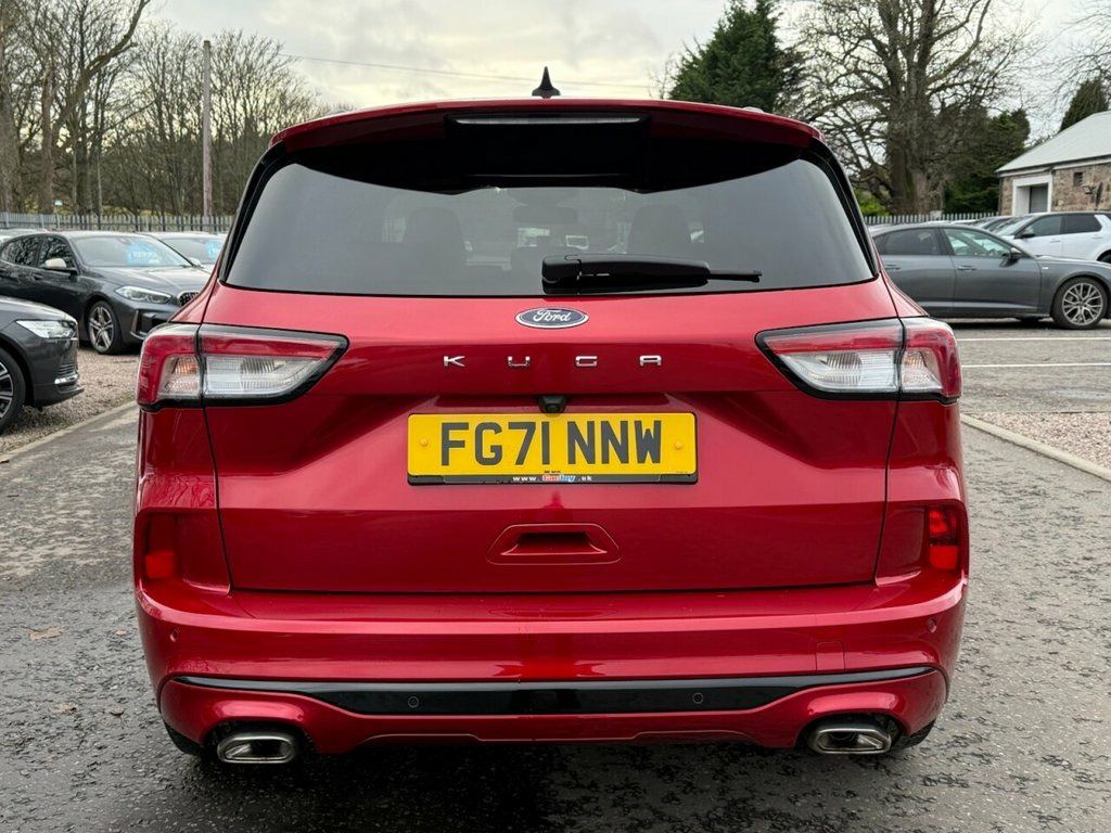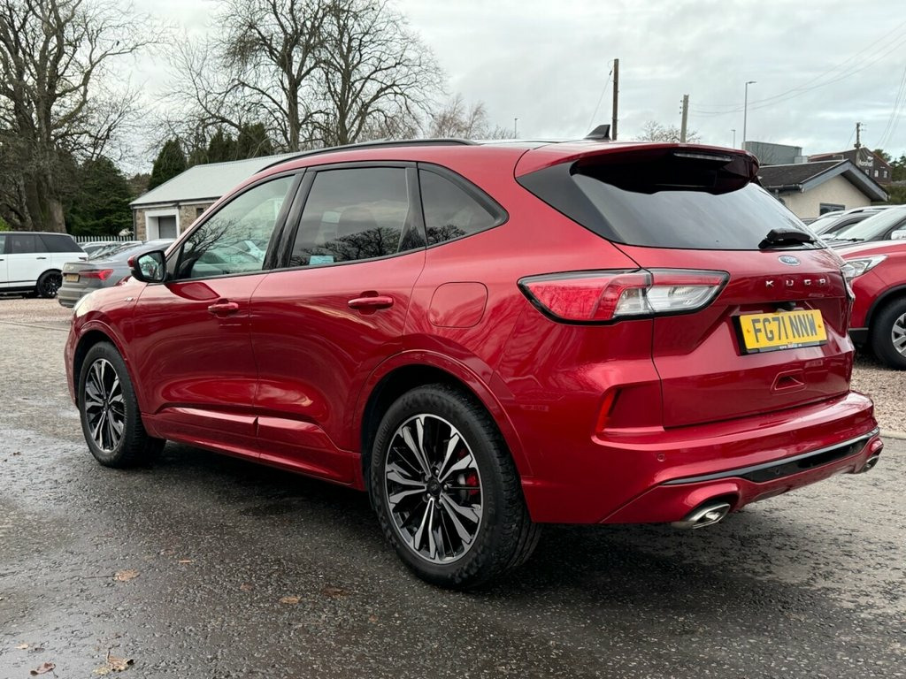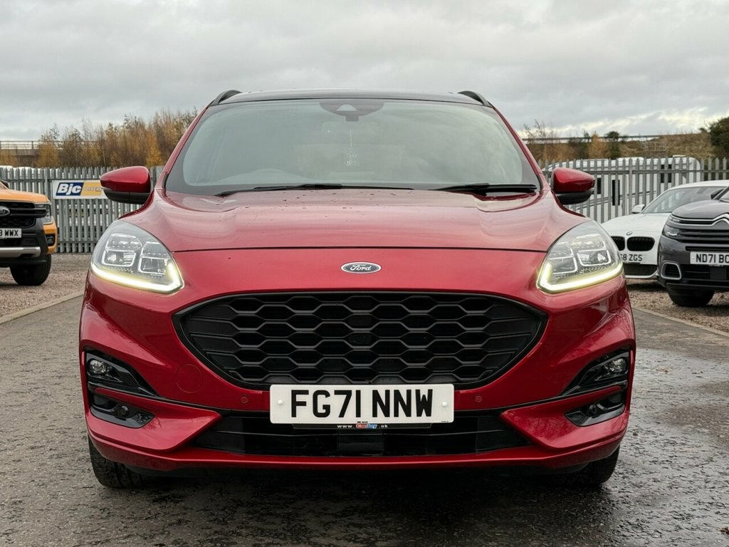 This stylish Ford Kuga ST-Line X Edition offers the perfect mix of sporty styling, comfort, and practicality. Powered by the efficient 1.5 EcoBlue diesel engine with 120 bhp, paired to a smooth automatic transmission, it delivers refined performance and excellent fuel economy—ideal for family life, commuting, or longer journeys. The ST-Line X Edition stands out with its sporty exterior styling, large alloy wheels, body-coloured detailing, and bold road presence. Inside, the cabin is impressive, featuring premium materials, leather/Alcantara sports seats, red stitching, digital driver displays, a large touchscreen with navigation, Apple CarPlay/Android Auto, dual-zone climate control, and a high level of comfort and equipment throughout. Practicality is a strong point, with five seats, great storage, a spacious boot, and versatile layout, making it a dependable everyday SUV. A host of safety and driver assistance features, such as parking sensors, reversing camera, adaptive cruise control, lane assist, and collision alert, enhance confidence on every journey. A fantastic example of a modern family SUV with sporty looks, advanced technology, and everyday efficiency. Bang and Olufsen on board speakers , Panoramic roof , Wireless Charging, Partial Sensico - Rapton Cloth - Ebony w, Lucid Red, 10-Way Power Adjustable Drivers Seat, 12V Power Point in Floor Console, 12v Power Point in Cargo Area, 12v Socket - Voltage Regulator, 19in Alloy Wheels - 5x2 Spoke - High Glo, 2nd Row Sliding Seats, 8-Way Manual Passenger Seat including Lu, ABS - Anti-Lock Braking System with Enha, Air Conditioning - Electronic Automatic , Airbag - Driver and Front Passenger Side, Airbag - Front Passenger Deactivation Sw, Airbags - Driver and Front Passenger, Airbags - Front and Rear Side Curtain, Aluminium - Finish Front Scuff Plates wi, Aluminium Foot Pedals - ST-Line Design, Ambie