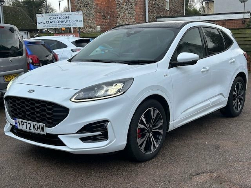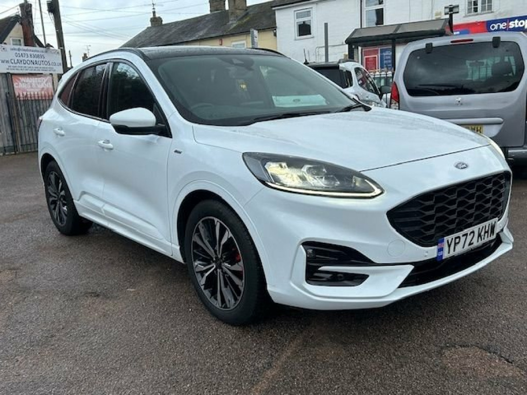 This 2022 Ford Kuga ST-Line X Edition is a superb example, having had only one owner since new. It features a 1.5 litre diesel engine, meeting Euro 6 emission standards, and boasts an MOT valid until August 2026, offering peace of mind for the road ahead. Inside, you'll find a host of desirable features including wireless phone charging, a winter pack with heated seats and a heated steering wheel for those colder journeys, and automatic headlights with auto high-low beam functionality. The convenience of heated driver and passenger seats is also included, alongside a power opening panoramic roof for an enhanced driving experience. This Kuga stands out with its impressive fuel economy, achieving an excellent 60 miles per gallon, which is a significant advantage over many similar vehicles. Furthermore, its low insurance group rating means more affordable ownership, and its low CO2 emissions highlight its efficiency and environmental consideration. These combined factors make this Ford Kuga ST-Line X Edition a compelling choice for those seeking a well equipped, economical, and cost effective SUV. Frozen White, Wireless Charging, Partial Sensico - Rapton Cloth - Ebony w, 10-Way Power Adjustable Drivers Seat, 12V Power Point in Floor Console, 12v Power Point in Cargo Area, 12v Socket - Voltage Regulator, 19in Alloy Wheels - 5x2 Spoke - High Glo, 2nd Row Sliding Seats, 8-Way Manual Passenger Seat including Lu, ABS - Anti-Lock Braking System with Enha, Air Conditioning - Electronic Automatic , Airbag - Driver and Front Passenger Side, Airbag - Front Passenger Deactivation Sw, Airbags - Driver and Front Passenger, Airbags - Front and Rear Side Curtain, Aluminium - Finish Front Scuff Plates wi, Aluminium Foot Pedals - ST-Line Design, Ambient Lighting, Auto Dimming Rear View Mirror, Auto Wi