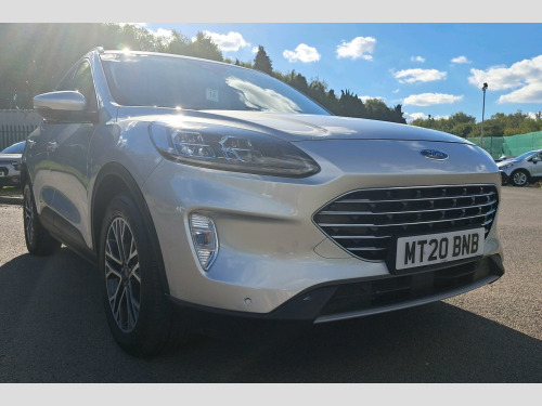 This 2020 Ford Kuga Titanium is a remarkable find, boasting exceptionally low mileage for its age, having covered just 14,400 miles.  Powered by an efficient 1.5 litre diesel engine meeting Euro 6 emissions standards, this model offers a compelling blend of performance and economy, achieving an impressive 55 miles per gallon.  The Titanium trim level ensures a well equipped experience, featuring the Ford SYNC3 Navigation System with seamless Android Auto and Apple CarPlay integration, alongside Bluetooth connectivity for effortless communication and entertainment.  Convenience is further enhanced by the Ford Key Free System, allowing keyless entry and start, while front and rear parking sensors provide invaluable assistance when manoeuvring.  Inside, you'll appreciate the premium sound delivered by the Bang and Olufsen Premium Audio System and the ease of wireless phone charging.This Ford Kuga stands out with its low insurance group and low CO2 emissions, indicating that running costs are kept to a minimum, making it a sensible choice. The combination of its very low mileage, excellent fuel economy of 55 mpg, and these cost saving factors demonstrate how this particular vehicle offers superior value compared to other similar models on the market.. 12V Power Socket - Load Compartment, 18in Alloy Wheels - 5x2 Spoke - Magnetic and Machined, 2nd Row Sliding Seats, ABS - Anti-lock Braking System, Airbags - Driver and Front Passenger, Airbags - Drivers Knee, Airbags - Front and Rear Side Curtain, Ambient Lighting, Auto Dimming Rear View Mirror, Auto Start-Stop System, Automatic Headlights with Auto High-Low Beam, Bang and Olufsen Premium Audio System, Centre Console, Courtesy Light - Front and Rear Centre, Cruise Control with Adjustable Speed Limiter, DEATC - Dual-Zone Electronic Automatic Temperature Control, Door Lever - Chrome Finish, Driver Impairment Monitor, EBA - Emergency Brake Assist, EPAS - Electric Power Assisted Steering, ESC - Electronic Stability Control, Electric Parking Brake, Engine Immobiliser, Ford DAB Audio System, Ford Easy Fuel System, Ford Key Free System - Keyless Entry with Keyless Start, Ford Power Starter Button, Ford SYNC3 Navigation System, FordPass Connect, Front Suspension - Independent with MacPherson Struts and Anti-Roll Bar, Front and Rear Floor Mats, Front and Rear Parking Sensors, Full LED Headlamps, Headliner - Woven, Heated and Power Folding Door Mirrors with Puddle Lights, IPS - Intelligent Protection System, Instrument Cluster - 4.2in Colour TFT Display, Intelligent Speed Assistance, LED Daytime Running Lights, LED Fog Lights - Front, Lane Keeping Aid with Lane Departure Warning, Leather Steering Wheel and Gear Knob, Locking Wheel Nuts, MyKey Gen II, Post Collision Braking, Power Converter 230V, Powered Child Proof Rear Door Locks with Global Closing, Pre-Collision Assist with AEB, Privacy Glass, Quickclear Heated Windscreen, Rain Sensitive Windshield Wipers, Rear Lights - LED, Rear Suspension - Independent Control Blade Multi-Link System and Anti-Roll Bar, Remote Power Central Double Locking Doors, Scuff Plates - Front, Seats - Drivers 8-Way Adjustment, Seats - ISOFIX Mounting Provision for Child Seats - Outer Seats Only, Seats - Passengers 4-Way Adjustment, Selectable Drive Modes, Silver Roof Rails, Sports Seats, Steering Column - Rake and Reach Adjustment, Thatcham Category 1 Alarm, Tie-Down Hooks, Tonneau Cover, Twin Exhausts, Tyre Inflation Kit, Tyre Pressure Monitoring System, Windows - Electrically Operated Front and Rear with One Touch Lowering-Closing on Drivers Side and Global Closing, Wireless Charging.