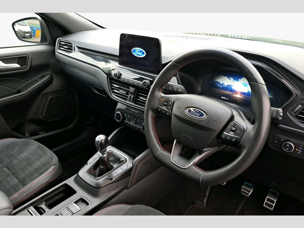 This 2023 Ford Kuga T ST-Line X Edition is a Ford manufacturer approved vehicle, offering peace of mind with its excellent provenance. Powered by an efficient 1.5L Euro 6 petrol engine, this model combines performance with economy. Inside, you'll find a wealth of comfort and technology, including heated driver and passenger seats, and a heated steering wheel for those colder journeys. The ST-Line X Edition trim also boasts full LED headlamps with automatic follow me home lighting, ensuring visibility in all conditions.Navigating your route is made simple with the Ford SYNC3 DAB Navigation System, which seamlessly integrates with Android Auto and Apple CarPlay. This system also includes a premium branded sound system, enhancing your driving experience. Furthermore, this Kuga sits in a low insurance group, making it a more affordable choice to own and run compared to similar vehicles.. 10-Way Power Adjustable Drivers Seat, 12V Power Point in Floor Console, 12v Power Point in Cargo Area, 12v Socket - Voltage Regulator, 19in Alloy Wheels - 5x2 Spoke - High Gloss - Machined, 2nd Row Sliding Seats, 8-Way Manual Passenger Seat including Lumbar Support and Height Adjust, ABS - Anti-Lock Braking System with Enhanced Electronic Stability Control - ESC with Traction Control - Emergency Brake Assist - EBA - Hill Start Assist - Trailer Sway Control, Air Conditioning - Electronic Automatic Temperature Control - EATC, Airbag - Driver and Front Passenger Side, Airbag - Front Passenger Deactivation Switch, Airbags - Driver and Front Passenger, Airbags - Front and Rear Side Curtain, Aluminium - Finish Front Scuff Plates with ST-Line Script, Aluminium Foot Pedals - ST-Line Design, Ambient Lighting, Auto Dimming Rear View Mirror, Auto Wipers, Automatic Door Relocking, Black Roof Rails, Centre Console with Electronic Parking Brake, Child Locks - Manual on Rear Doors, Cruise Control with Speed Limiter, Digital Colour 12.3in Instrument Cluster, Driver and Passengers Sun Visor with Illumination, Dual Exhaust Tailpipes with Unique Brushed Stainless Steel Finish, EPAS - Electric Power Assisted Steering, Electric Parking Brake with Auto Hold, Electrical Charging Point in Second Row, Engine Immobiliser - SecuriLock, Exterior Door Handles - Body Coloured, Ford Easy Fuel System, Ford Keyfree System - Keyless Entry with Ford Power Starter Button, Ford SYNC3 DAB Navigation System, Front Lower Grille - Ebony Black Mesh, Front Seats - 2-Way Manual Height Adjust Passive Head Restraints, Front Seats - Drivers and Passengers Seatback Map Pockets, Front Seats - Sports Style V-shape with High Bolster, Front Upper Grille - Carbon Black Honeycombe Mesh and High-Gloss Black Surround, Front Windows - Laminated Glass, Front and Rear Bumper - Sporty Body Colour with Rear Ebony High-Gloss Insert, Front and Rear Floor Mats with Red Stitching, Front and Rear Parking Sensors, Full LED Headlamps, Gear Shift - Unique Sensico-Trimmed Knob with Satin Aluminium Insert and Red Gaiter Stitching, Glovebox Lights, Handsfree Power Tailgate, Headlights - Automatic Follow Me Home Lighting, Headlights - Automatic High Beam Assist, Headlights - Levelling System - Manual, Headlights - Unique Bending, Headliner - Sports Dark, Heated Driver and Passenger Seats, Heated Rear Seats, Heated Steering Wheel, Heated and Power Folding Door Mirrors with Puddle Lights, High-Mounted Brake Light, Kuga Badge, LED Daytime Running Lights, LED Fog Lights - Front, Lane Keeping Aid with Lane Departure Warning, Large Rear Spoiler, Load Compartment - Lights, Load Compartment - Tie Down Hooks, Load Compartment Carpet, Locking Wheel Nuts, Lower Bodyside Moulding - Body Colour, Lower Door Frame Beltline - Black, Mini Overhead Console with Sunglasses Holder Bin, MyKey, Power Door Deadlocks - Double Locking, Power Door Locks, Power Opening Panoramic Roof, Pre-Collision Assist with Autonomous Emergency Braking, Quickclear Heated Windscreen, Rear Duct on B-Pillar, Rear Lights - LED, Rear Privacy Glass, Rear Seat - 60-40 Split Folding Seats, Rear Seat Centre Head Restraint, Rear Seats - 2-Way Head Restraint Up-Down, Rear Seats - Folding Centre Armrest with Integrated Cup Holder, Rear Seats - Sliding Seat Adjust Tracks - Fore-Aft, Rear View Camera, Red Brake Calipers, Remote Tailgate Release, Removable Package Tray, Rocker Panel Mouldings - Body Colour - ST-Line Design, ST-Line Badge on Left and Right Side Wings, ST-Line Bodystyling Kit, ST-Line Front and Rear Bumper Moulding - Body Colour, Seat Belt - Drivers - Front Passenger and Rear Seat Belt Reminder Alert, Seat Belts - Front 3-Point Seatbelts with Load Limiter, Seat Belts - Front Height Adjustable, Seat Belts - Rear Retractable Rear Belt - 3-Point All Positions, Seats - ISOFIX Mounting Provision for Child Seats - Outer Seats Only, Selectable Drive Modes, Single Rear Fog Light, Steering Column - Locking Electric, Steering Column - Rake and Reac.