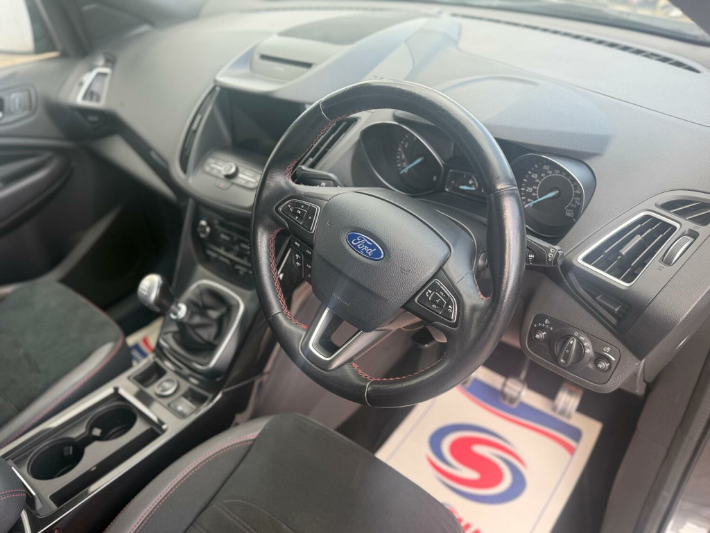 Ford Kuga 1.5 T EcoBoost ST-Line in metallic grey with 40,000 miles and 2 previous owners, , , Step into the 2018 Ford Kuga 1.5 T ST-Line, where sporty design meets practical SUV versatility. Its striking ST-Line styling—featuring bold grille accents, sleek lines, and athletic stance—makes a confident statement on the road. Inside, enjoy a driver-focused cabin with premium touches, intuitive infotainment, and comfort-focused features perfect for every journey. The 1.5L turbocharged engine delivers a responsive and efficient drive, while advanced safety and driver-assist technologies give you confidence in every mile. The 2018 Kuga ST-Line combines style, performance, and practicality, making it a standout choice in its class. , This car includes features that include half leather half Alcantara seats with red stitching, touch screen infotainment system (SYNC), Sat Nav, cruise control, multifunction steering wheel, 4 electronic windows, electronic adjustable wing mirrors, push to start button, 12V power outlet, electronic parking brake, cup holders, dual zone climate control, park assist, auto stop start, heated front windscreen, manual 6 speed gearbox, arm rest with compartment, voice control, ISOFIX and much more. , This vehicle is recorded as Category S, due to a previous structurally repaired incident, but it has been fully restored to a high standard by an insurance approved Bodyshop and has passed all necessary inspections. , We believe buying a car should be as stress-free as driving it. Thats why every vehicle comes with a FREE 3-Month Nationwide Warranty – so you can hit the road with total confidence. , ✅ UK-Wide Coverage – Whether youre commuting locally or travelling across the country, youre protected. ✅ Covers Key Components – Includes major parts such as the engine, gearbox, and drivetrain – the essentials that keep your car running smoothly. ✅ Simple Claims Process – Fast, hassle-free repairs at approved garages nationwide. ✅ Extendable for Longer Cover – Want extra peace of mind? Extended warranty options are available at an additional cost. , Drive away with confidence today – your warrantys on us! ????, , , book your test drive today! ???? Call us at 01380 870777 or ???? email [email protected] for more information.