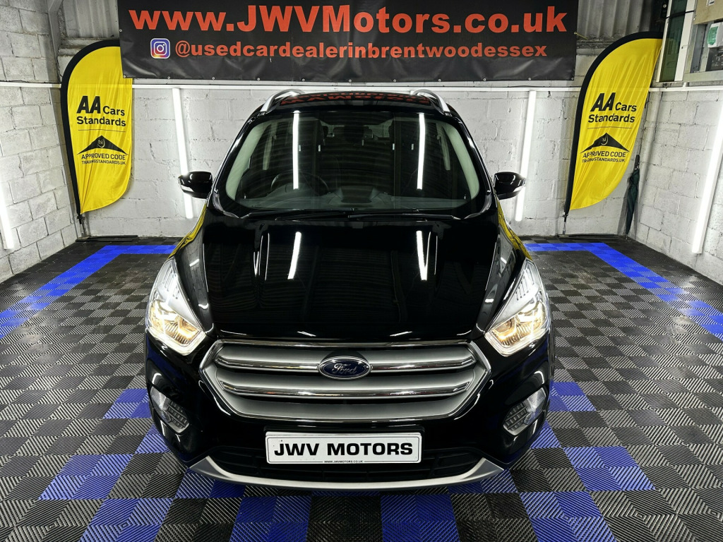 Stunning example of a Ford Kuga Titanium Edition TDCI with just 3 owners from new, which is in excellent condition inside and out for its age and mileage. Ulez compliant, Excellent running costs and excellent mpg for an SUV. Service history comprising of 6 main dealer and 1 othe. This car comes complete with our best 3 months comprehensive warranty, visit our website for full terms and conditions, for that extra peace of mind. HPI clear. Professionally valeted and detailed inside and out giving you the highest quality a car dealer can offer. The perfect new used car feeling. 2 x keyless entry remote central locking key fobs. Part exchange welcome. This car is ready to drive away today. Appointments only giving you the customer our full attention, call today to arrange a viewing. All credit and debit cards accepted including American express. If you are looking for finance we work with a number of brokers to help find you the best deal. If you choose to finance your car with JWV Motors we will give you something back in return, up to  months warranty with no admin fee. Unfortunately if you decide to choose an outsourced finance provider there will be an admin, this will vary depending on the company charges. If this car is not suitable for your needs you can visit all of our current stock on our website www.jwvmotors.co.uk. Why choose JWV Motors? Why not look at our reviews before making any decisions. Thank you for your time. SALE YOUR CAR THROUGH OUR SALE OR RETURN POLICY. INTERESTED PLEASE CALL FOR DETAILS. v power socket - load compartment, ford sync3 dab navigation system, 18in alloy wheels - 10 spoke - luster nickel, appearance pack, door mirrors - power-operated - heated and power-foldable with body colour housings - side indicators and puddle lights, exhaust - dual, locking wheel nuts, mini spare wheel - 17in steel, quickclear heated windscreen, rear privacy glass, scuff plates - front, silver roof rails, windows - electrically operated front and rear with one touch lowering-closing on drivers side and global closing, 6-way manual driver seat with lumbar adjustment, 6-way manual passenger seat with lumbar adjustment, armrest - folding centre - rear, auto dimming rear view mirror, centre console, courtesy lights - front and rear, deatc - dual-zone electronic automatic temperature control, door lever - chrome finish, floor mats - front and rear - velour, ford power starter button, front seat - drivers manual height - fore-aft and recline adjustment, front seat - passenger manual height - fore-aft and seatback angle adjustment, front seats - seat-back map pockets, gearshift knob - leather-trimmed, headliner - woven, load compartment carpet, multi-colour ambient interior lighting, mykey, rain sensitive windshield wipers, rear seat - 60-40 split folding seat back and cushion with multi-step recline function, rear seats - 2-way head restraint up-down, steering column - rake and reach adjustment, steering wheel - 3 spoke - leather trimmed, tie-down hooks, tonneau cover, airbags - driver and front passenger, airbags - drivers knee, airbags - front side impact, airbags - front and rear side curtain, anti-lock braking system - abs with electronic stability control - esc, child locks - manual on rear doors, eba - emergency brake assist, electric parking brake, engine immobiliser, ford key free system - keyless entry with keyless start, ips - intelligent protection system, remote central-double locking, seats - isofix mounting provision for child seats - outer seats only, thatcham category 1 alarm, cruise control with adjustable speed limiter, epas - electric power assisted steering, front suspension - independent with macpherson struts and anti-roll bar, rear parking sensors, rear suspension - independent control blade multi-link system and anti-roll bar, tyre pressure monitoring system, fog lights - front, headlights - halogen with led daytime running lights
