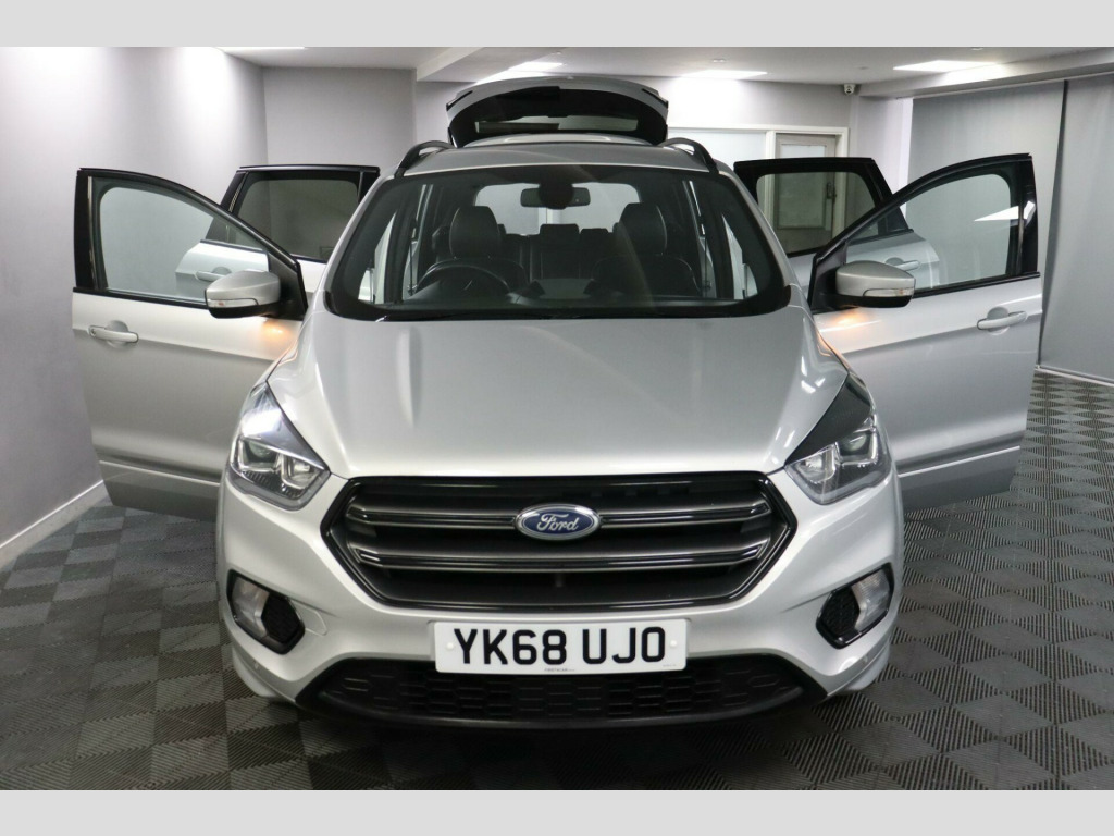 YK68UJO. The Ford Kuga ST-Line offers extra space with a sportier edge, making a suitable match for Families, Commuters and Anyone needing a practical SUV with a more focused design. The ST-Line styling brings a confident exterior, while the interior offers generous room and useful storage throughout.An 8-Inch Colour Touchscreen provides Ford SYNC 3 with DAB Navigation, Bluetooth, Apple CarPlay and Android Auto. Cruise Control with Active Speed Limiter supports steady motorway driving, and a 12V Power Socket in the Load Area provides added flexibility for travel equipment.Front and Rear Parking Sensors work alongside Enhanced Active Park Assist and a Colour Reversing Camera, giving reassurance in tighter areas. Dual-Zone Electronic Automatic Temperature Control maintains a comfortable environment, and the Ford KeyFree System with Keyless Entry and Power Start Button adds everyday convenience. An Electric Parking Brake and Hill Start Assist complete the setup.Reserve now and book a test drive.This car comes with a Good Service History, a new 12 month MOT with no advisories, a clear HPI report, two keys, and verified mileage for peace of mind.Finance is available, and we can provide a personalised video on request. Please note that some features (e.g., Navigation/CarPlay) may require an active subscription. Spec details can vary, so just ask if you’d like us to confirm anything.For more info or a finance quote, call ☎️ 0113 257 00 00.. Quickclear Heated Front Windscreen with Heated Washer Jets, Parking Sensors - Front and Rear, Colour Reversing Camera, Apple CarPlay - Android Auto, Hill Start Assist, Bluetooth Connection, Enhanced Active Park Assist, Electric Parking Brake, Cruise Control with Active Speed Limiter, DAB Radio, Ford SYNC3 DAB Navigation System, Automatic Dimming Rear View Mirror, 8in Colour Touchscreen Infotainment System, 18in Alloy Wheels - 5x2 Spoke - Absolute Black Machined Finish, 12V Power Socket - Load Compartment, Ford Keyfree System - Keyless Entry with Ford Power Starter Button, DEATC - Dual-Zone Electronic Automatic Temperature Control, Power Folding Door Mirrors with Puddle Lights, Ford Power Starter Button, Seats - ISOFIX Mounting Provision for Child Seats - Outer Seats Only, Rear View Camera, Premium Ford DAB Navigation System with Ford SYNC3, Rear Privacy Glass, Dinamica Micro Fibre - Salerno Leather - Ebony and Charcoal Black, Active City Stop.