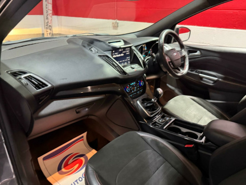 This 2019 Ford Kuga TDCi ST-Line offers a compelling blend of style and advanced technology, making it a standout choice. As a Euro 6 compliant model, it features a 1.5L diesel engine that delivers an impressive fuel economy of 46 miles per gallon. This particular ST-Line trim benefits from the ST-Line Style Pack, which includes striking Xenon headlights, and the Driver Assistance Pack, enhancing safety with Blind Spot Assistance. Inside, you'll find the Premium Ford DAB Navigation System with Ford SYNC3, offering Bluetooth connectivity and a rear camera for easier parking. The Enhanced Active Park Assist, complete with front and rear parking sensors, further simplifies manoeuvring, while Adaptive Cruise Control adds convenience on longer journeys.The Kuga TDCi ST-Line is designed to offer a superior driving experience, as indicated by its highlights. Its low CO2 emissions and low insurance group demonstrate its efficiency and cost effectiveness compared to similar vehicles. These factors, combined with its excellent fuel economy, make this Ford Kuga a practical and desirable option for everyday driving. v power socket - load compartment, 18in alloy wheels - 5x2 spoke, 6-way manual passenger seat with lumbar adjustment, airbags - driver and front passenger, airbags - drivers knee, airbags - front side impact, airbags - front and rear side curtain, alloy foot pedals, anti-lock braking system - abs with electronic stability control - esc, armrest - folding centre - rear, audible text messaging - voice control and usb connectivity, black roof rails, centre console, child locks - manual on rear doors, courtesy lights - front and rear, cruise control with active speed limiter, deatc - dual-zone electronic automatic temperature control, dark headliner, door lever - chrome finish, eba - emergency brake assist, epas - electric power assisted steering, esp - electronic stability programme, electric parking brake, engine immobiliser, enhanced active park assist, fog lights - front, ford power starter button, ford sync3 dab navigation system, front seat - drivers manual height - fore-aft and recline adjustment, front seat - passenger manual height - fore-aft and seatback angle adjustment, front seats - seat-back map pockets, front suspension - independent with macpherson struts and anti-roll bar, front and rear floor mats with red stitching, full body styling kit, headlights - halogen, ips - intelligent protection system, led daytime running lights, load compartment carpet, locking wheel nuts, mini spare wheel - 17in steel, mykey, power folding door mirrors with puddle lights, quickclear heated front windscreen with heated washer jets, rain sensitive windshield wipers, rear parking sensors, rear seat - 60-40 split folding seat back and cushion with multi-step recline function, rear seats - 2-way head restraint up-down, rear suspension - independent control blade multi-link system and anti-roll bar, remote central-double locking, scuff plates - front, seats - drivers with manual lumbar support adjustment, seats - isofix mounting provision for child seats - outer seats only, sports suspension, steering column - rake and reach adjustment, steering wheel and gear knob - leather with red stitching, thatcham category 1 alarm, tie-down hooks, tonneau cover, twin exhausts and rear diffuser, tyre pressure monitoring system, windows - electrically operated front and rear with one touch lowering-closing on drivers side and global closing, adaptive cruise control, premium ford dab navigation system with ford sync3, driver assistance pack, st-line style pack