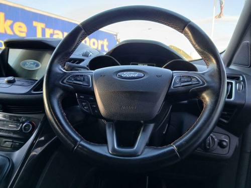 . 12V Power Socket - Load Compartment, 18in Alloy Wheels - 5x2 Spoke - Dark Machined, 6-Way Manual Passenger Seat with Lumbar Adjustment, Airbags - Driver and Front Passenger, Airbags - Drivers Knee, Airbags - Front Side Impact, Airbags - Front and Rear Side Curtain, Alloy Pedals, Anti-Lock Braking System - ABS with Electronic Stability Control - ESC, Armrest - Folding Centre - Rear, Audible Text Messaging - Voice Control and USB Connectivity, Automatic Dimming Rear View Mirror, Automatic Halogen Headlights with LED Daytime Running Lights, Black Roof Rails, Centre Console, Child Locks - Manual on Rear Doors, Courtesy Lights - Front and Rear, Cruise Control with Active Speed Limiter, DEATC - Dual-Zone Electronic Automatic Temperature Control, Dark Headliner, Door Lever - Chrome Finish, EBA - Emergency Brake Assist, EPAS - Electric Power Assisted Steering, ESP - Electronic Stability Programme, Electric Parking Brake, Electric Windows - Front and Rear with Global Opening-Closing and One Touch, Engine Immobiliser, Enhanced Active Park Assist, Fog Lights - Front, Ford DAB Navigation System with Ford SYNC3, Ford SYNC with Emergency Assistance, Front Seat - Drivers Manual Height - Fore-Aft and Recline Adjustment, Front Seat - Passenger Manual - Fore-Aft and Recline Adjustment, Front Seats - Seat-Back Map Pockets, Full Body Styling Kit, Hill Start Assist, IPS - Intelligent Protection System, Keyless Start, Leather Steering Wheel and Gear Knob, Loadspace Floor Carpet, Locking Wheel Nuts, Mini Spare Wheel, MyKey, Paddle Shift, Power Folding Door Mirrors with Puddle Lights, Quickclear Heated Front Windscreen with Heated Washer Jets, Rain Sensitive Windshield Wipers, Rear Seat - 60-40 Split Folding Seat Back and Cushion with Multi-Step Recline Function, Rear Seats - 2-Way Head Restraint Up-Down, ST-Line Floor Mats with Contrast Stitching, ST-Line Seats - Gear Knob and Steering Wheel, SYNC3 with 8in Touchscreen DAB Audio System, Scuff Plates - Front, Seat Belts - 3-Point Diagonal Inertia Reel - All Seats, Seat Belts - Rear Belt Minder Alert, Seatbelts - Manual Height Adjustment, Seats - Drivers with Manual Lumbar Support Adjustment, Seats - ISOFIX Mounting Provision for Child Seats - Outer Seats Only, Seats - Passenger Height Adjustment, Seats - Passenger Lumbar Support, Sports Suspension, Steering Column - Rake and Reach Adjustment, Thatcham Category 1 Alarm, Tie-Down Hooks, Tonneau Cover, Twin Exhausts and Rear Diffuser, Tyre Pressure Monitoring System, Magnetic, Rear Privacy Glass.