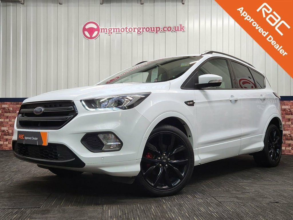 MG Motor Group are pleased to offer this stunning Ford Kuga 1.5 TDCi ST-Line X finished in Frozen White with Black Part Leather interior. 2 keys, service history and a recent full service carried out in house. Excellent condition throughout and a true credit to its previous owners. Excellent spec that includes 19 inch Gloss Black Alloy Wheels, Parking Sensors, Electric Panoramic Roof, Cruise Control, Heated Electric Seats, Sat Nav, DAB Radio, Bluetooth Connectivity, Heated Windscreen, Heated Headlight Washers, Power Folding Mirrors, Electric Tailgate, Park Assist and much more Rear Privacy Glass, Large Rear Spoiler, Frozen White, 12V Power Socket - Load Compartment, 19in Alloy Wheels - 5x2 Spoke - Black, 6-Way Manual Passenger Seat with Lumbar , Airbags - Driver and Front Passenger, Airbags - Drivers Knee, Airbags - Front Side Impact, Airbags - Front and Rear Side Curtain, Alloy Foot Pedals, Anti-Lock Braking System - ABS with Elec, Armrest - Folding Centre - Rear, Audible Text Messaging - Voice Control a, Black Roof Rails, Centre Console, Child Locks - Manual on Rear Doors, Cruise Control with Active Speed Limiter, DEATC - Dual-Zone Electronic Automatic T, Dark Headliner, Door Lever - Chrome Finish, Drivers Seat - 10-Way Power Adjustment, EBA - Emergency Brake As