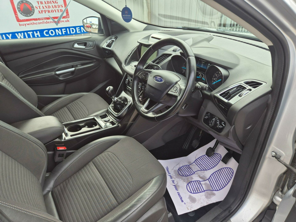 OUR DECEMBER EXTRAVAGANZA SALE IS NOW ON DECEMBER 1ST - DECEMBER 31STALL VEHICLE'S ARE IN THE SALE - WE HAVE DISCOUNTED PRICES BY UPTO £1000SOME OF THE BEST VALUE CARS IN THE UK £100 REFUNDABLE DEPOSIT HOLDS ANY VEHICLE FOR 7 DAYS DRIVE AWAY SAME DAY PART EXCHANGE ACCEPTED WE SETTLE EXISTING FINANCE 60 SECOND FINANCE DECISION FREE WARRANTY ON EVERY VEHICLEThis 2018 Ford Kuga TDCi Titanium presents an exceptional ownership proposition with its remarkably low mileage of just 45,508 miles, significantly less than expected for a vehicle of its age. Benefiting from a full service history, its most recent service was completed on 1st September 2025 at 45,508 miles, and it boasts an MOT valid until September 2026, offering peace of mind. This Euro 6 compliant 1.5L diesel model, finished in the Titanium trim, comes equipped with desirable features including rear parking sensors for easier manoeuvring, automatic halogen headlights with LED daytime running lights for enhanced visibility, and dual zone electronic automatic temperature control for personalised comfort. Keyless entry allows for effortless access, while the Ford DAB Navigation System with Ford SYNC3 and Bluetooth connectivity ensures you stay informed and entertained on every journey.The appeal of this Ford Kuga is further enhanced by its impressive fuel economy, achieving an outstanding 54 miles per gallon, which indicates it is more economical than many similar vehicles. Its low CO2 emissions also contribute to its cost effectiveness and environmental consideration. Furthermore, this model falls into a low insurance group, suggesting that running costs will be more affordable compared to other cars in its class. These combined highlights make this Kuga TDCi Titanium a sensible and appealing choice for those seeking a well maintained, economical, and feature rich SUV.. 17in Alloy Wheels - 5x2 Spoke, Accessory Power Socket - 12V, Accessory Power Socket - 12v in Luggage Compartment, Airbags - Driver and Front Passenger, Airbags - Drivers Knee, Airbags - Drivers and Front Passenger Front Side - Front and Rear Curtain, Airbags - Front Side Impact, Armrest - Folding Centre - Rear, Audible Text Messaging - Voice Control and USB Connectivity, Automatic Dimming Rear View Mirror, Automatic Halogen Headlights with LED Daytime Running Lights, Automatic Headlights - Rain Sensing Wipers - Auto Dimming Rear View Mirror, Centre Console, Child Locks - Manually Adjustable Rear Door Locks, Courtesy Light - Footwell Illumination, Courtesy Light - Front and Rear, Cruise Control with Active Speed Limiter, DEATC - Dual-Zone Electronic Automatic Temperature Control, Door Lever - Chrome Finish, EPAS - Electric Power Assisted Steering, ESP - Electronic Stability Programme, Electric Parking Brake, Electric Windows - Front and Rear with Global Opening-Closing and One Touch, Flat Load Floor Board, Fog Lights - Front, Ford DAB Navigation System with Ford SYNC3, Ford Easy-Fuel Capless Refuelling System, Front Floor Mats, Front Lower Grille - Self Colour, Front Seat - Drivers Manual Height - Fore-Aft and Recline Adjustment, Front Seat - Passenger Manual - Fore-Aft and Recline Adjustment, Front Seats - 4-Way Front Head Restraints - Up-Down, Front Seats - Seat-Back Map Pockets, Front Upper Grille - Painted Black with Chrome Bar Insert and Chrome Surround, Gear Shift Indicator, Hill Start Assist, IPS - Intelligent Protection System, Keyless Opening, Keyless Start, Leather Steering Wheel and Gear Knob, Locking Wheel Nuts, Locks - Remote Central with Double Locking, Mini Spare Wheel, Multi-Colour Ambient Interior Lighting, Power Folding Door Mirrors with Puddle Lights, Quickclear Heated Front Windscreen with Heated Washer Jets, Rain Sensitive Windshield Wipers, Rear Floor Mats, Rear Parking Sensors, Rear Seat - 60-40 Split Folding Seat Back and Cushion with Multi-Step Recline Function, SYNC3 with 8in Touchscreen DAB Audio System, Scuff Plates - Front, Seats - Drivers Lumbar Support, Seats - Front Sports, Seats - ISOFIX Mounting Provision for Child Seats - Outer Seats Only, Seats - Passenger Lumbar Support, Steering Column - Rake and Reach Adjustment, Tailgate Wash-Wipe, Thatcham Category 1 Alarm, Tie-Down Hooks, Tonneau Cover, Twin Exhausts and Rear Diffuser, Tyre Pressure Monitoring System. Full service history
