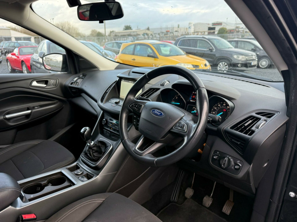 Ford Kuga 1.5 TDCi Zetec 118 5Dr Registered June 2018Only 1 Previous Owner.Warranted 108614 Miles With Service History.MOT August 2026.Full Pre Delivery Inspection In Our Workshop With A Fresh Engine Service & Cambelt Inspection.3 Months Comprehensive No Quibble In House Warranty Included With Option To Extend To 6 Months.Finished In Unmarked Metallic Black With Black Chequered Cloth Trim.Power Steering, Electric Windows, Electric Door Mirrors, Climate Control & Air Conditioning, Trip Computer, Colour Screen Satellite Navigation, Cruise Control, Bluetooth Connectivity, Front & Rear Parking Sensors, 6 Speed Manual, Alloy Wheels, Remote Central Locking With Factory Alarm & Immobiliser , 2 Keys.Part Exchange & All Dealer Facilities Available Including Nationwide Delivery.Signature Cars Of Portadown Best Value Approved Used Cars In Northern Ireland .***** Check Out Our 5Star Reviews On Line ***** in alloy wheels - 5x2 spoke, accessory power socket - 12v, accessory power socket - 12v in luggage compartment, airbags - driver and front passenger, airbags - drivers knee, airbags - drivers and front passenger front side - front and rear curtain, airbags - front side impact, armrest - folding centre - rear, audible text messaging - voice control and usb connectivity, automatic dimming rear view mirror, automatic halogen headlights with led daytime running lights, automatic headlights - rain sensing wipers - auto dimming rear view mirror, centre console, child locks - manually adjustable rear door locks, courtesy light - footwell illumination, courtesy light - front and rear, cruise control with active speed limiter, deatc - dual-zone electronic automatic temperature control, door lever - chrome finish, epas - electric power assisted steering, esp - electronic stability programme, electric parking brake, electric windows - front and rear with global opening-closing and one touch, flat load floor board, fog lights - front, ford dab navigation system with ford sync3, ford easy-fuel capless refuelling system, front floor mats, front lower grille - self colour, front seat - drivers manual height - fore-aft and recline adjustment, front seat - passenger manual - fore-aft and recline adjustment, front seats - 4-way front head restraints - up-down, front seats - seat-back map pockets, front upper grille - painted black with chrome bar insert and chrome surround, gear shift indicator, hill start assist, ips - intelligent protection system, keyless opening, keyless start, leather steering wheel and gear knob, locking wheel nuts, locks - remote central with double locking, mini spare wheel, multi-colour ambient interior lighting, paddle shift, power folding door mirrors with puddle lights, quickclear heated front windscreen with heated washer jets, rain sensitive windshield wipers, rear floor mats, rear parking sensors, rear seat - 60-40 split folding seat back and cushion with multi-step recline function, sync3 with 8in touchscreen dab audio system, scuff plates - front, seats - drivers lumbar support, seats - front sports, seats - isofix mounting provision for child seats - outer seats only, seats - passenger lumbar support, steering column - rake and reach adjustment, tailgate wash-wipe, thatcham category 1 alarm, tie-down hooks, tonneau cover, twin exhausts and rear diffuser, tyre pressure monitoring system
