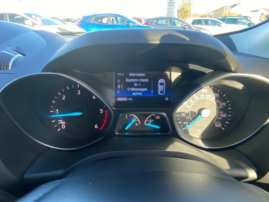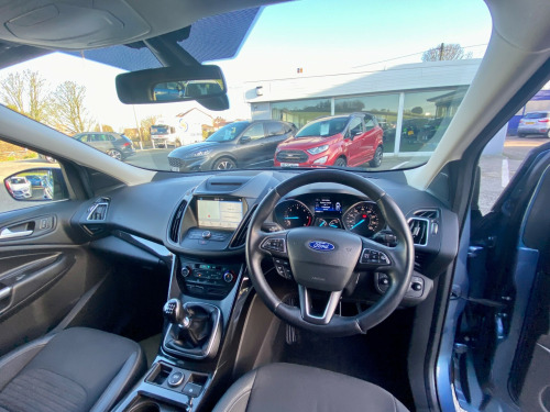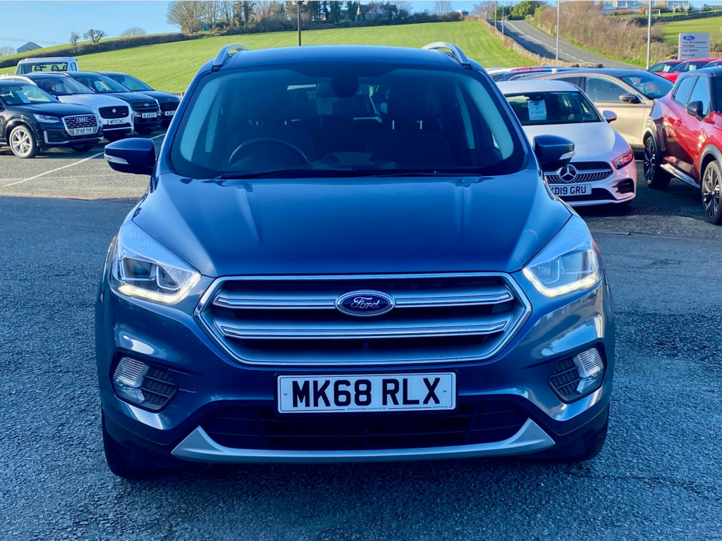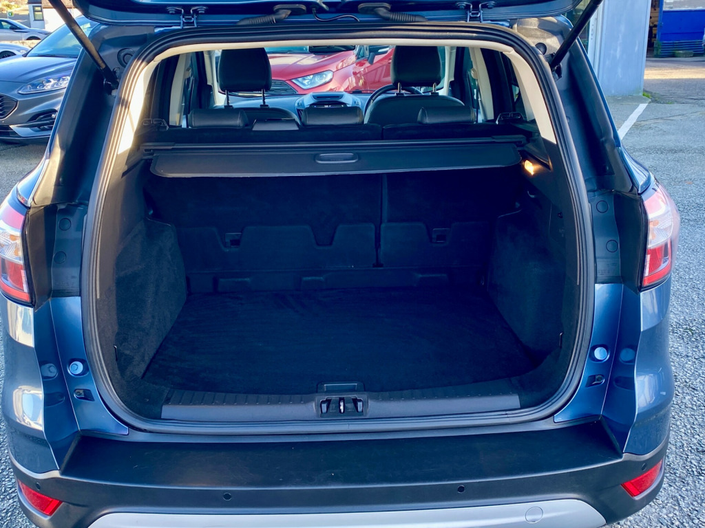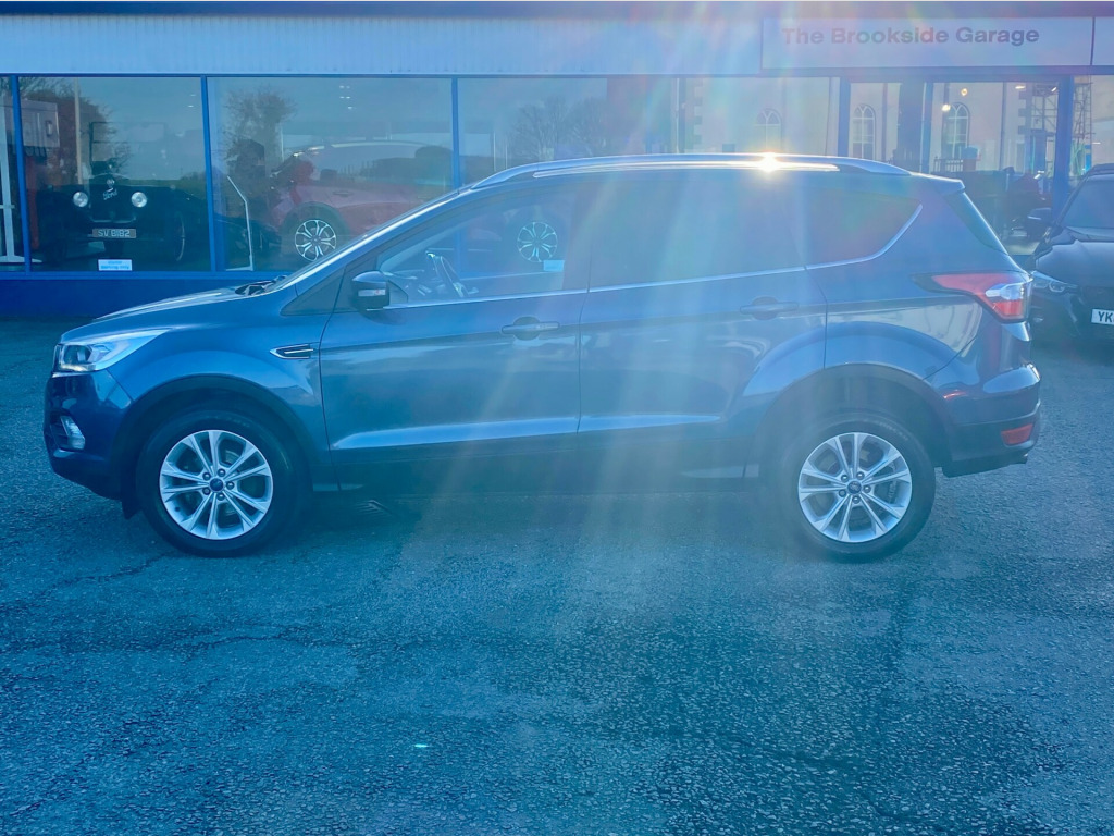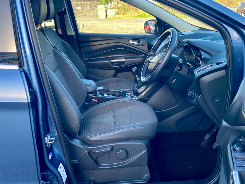 Kuga 1.5 TDCi Titanium finished in Chrome Blue.Very nice example, well specified with, Climate Control, Cruise Control,HFS,Sat Nav,Bluetooth and HFS. v power socket - load compartment, audible text messaging - voice control and usb connectivity, ford sync3 dab navigation system, 17in alloy wheels - 5x2 spoke, locking wheel nuts, mini spare wheel - 17in steel, power folding door mirrors with puddle lights, quickclear heated front windscreen with heated washer jets, scuff plates - front, twin exhausts and rear diffuser, windows - electrically operated front and rear with one touch lowering-closing on drivers side and global closing, 6-way manual passenger seat with lumbar adjustment, armrest - folding centre - rear, centre console, courtesy lights - front and rear, deatc - dual-zone electronic automatic temperature control, door lever - chrome finish, floor mats - front and rear - velour, ford power starter button, front seat - drivers manual height - fore-aft and recline adjustment, front seat - passenger manual height - fore-aft and seatback angle adjustment, front seats - seat-back map pockets, headliner - woven, leather steering wheel and gear knob, load compartment carpet, multi-colour ambient interior lighting, mykey, rain sensitive windshield wipers, rear seat - 60-40 split folding seat back and cushion with multi-step recline function, rear seats - 2-way head restraint up-down, seats - drivers with manual lumbar support adjustment, steering column - rake and reach adjustment, tie-down hooks, tonneau cover, airbags - driver and front passenger, airbags - drivers knee, airbags - front side impact, airbags - front and rear side curtain, anti-lock braking system - abs with electronic stability control - esc, child locks - manual on rear doors, eba - emergency brake assist, esp - electronic stability programme, electric parking brake, engine immobiliser, ford key free system - keyless entry with keyless start, ips - intelligent protection system, remote central-double locking, seats - isofix mounting provision for child seats - outer seats only, thatcham category 1 alarm, cruise control with active speed limiter, epas - electric power assisted steering, front suspension - independent with macpherson struts and anti-roll bar, rear parking sensors, rear suspension - independent control blade multi-link system and anti-roll bar, tyre pressure monitoring system, fog lights - front, headlights - halogen, led daytime running lights