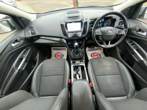 This 2018 Ford Kuga TDCi Titanium is presented with a clear vehicle history check, offering peace of mind for its next owner. Powered by an efficient 1.5 litre Euro 6 diesel engine, this model boasts the desirable Titanium trim level. Inside, you'll find the Ford DAB Navigation System with Ford SYNC3, which includes Bluetooth connectivity for seamless calls and music streaming. Parking is made easier with rear parking sensors and rear parking assistance, while keyless entry and keyless opening provide convenient access. The cabin comfort is enhanced by DEATC dual-zone electronic automatic temperature control, ensuring a pleasant environment for all occupants. Further enhancing your driving experience, this Kuga features automatic halogen headlights that switch on automatically, complemented by distinctive LED daytime running lights. The fuel economy is a notable highlight, achieving an impressive 59 miles per gallon, which indicates it is more economical than many similar vehicles. This model also benefits from a low insurance group, suggesting lower running costs, and low CO2 emissions, demonstrating its environmental consideration compared to other cars in its class, FULL SERVICE HISTORY, drives superb, automatic, rear parking sensors, bluetooth, cruise control, sat nav, 1 former keeper, automatic, HPI CLEAR. FINANCE AVAILABLE - LOW CREDIT SCORE? WE MAY STILL BE ABLE TO HELP. EXCELLENT EXTENDED AA WARRANTY OPTION AND 12 MONTH AA BREAKDOWN COVER INCLUDED. ALL CARS READ 12V Power Socket - Load Compartment, 17in Alloy Wheels - 5x2 Spoke, 6-Way Manual Passenger Seat with Lumbar , Airbags - Driver and Front Passenger, Airbags - Drivers Knee, Airbags - Front Side Impact, Airbags - Front and Rear Side Curtain, Anti-Lock Braking System - ABS with Elec, Armrest - Folding Centre - Rear, Audible Text Messaging - Voice Control a, Automatic Dimming Rear View Mirror, Automatic Halogen Headlights with LED Da, Centre Console, Child Locks - Manual on Rear Doors, Courtesy Lights - Front and Rear, Cruise Control with Active Speed Limiter, DEATC - Dual-Zone Electronic Automatic T, Door Lever - Chrome Finish, EBA - Emergency Brake Assist, EPAS - Electric Power Assisted Steeri