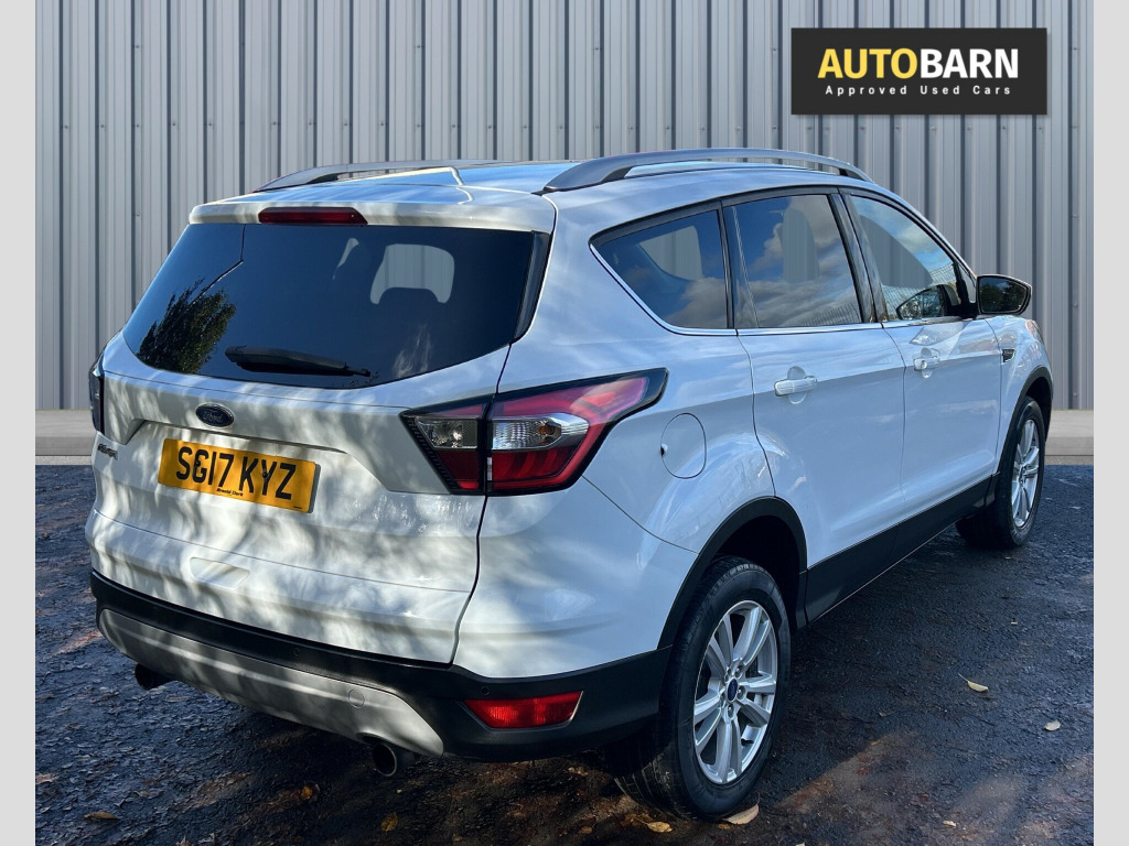 Auto Barn are excited to offer a 2017 Ford Kuga for sale. This vehicle is a diesel model, with a 1498cc engine, and is finished in white. The Ford Kuga is a popular choice in the UK, known for its reliability and practicality. This 2017 Ford Kuga features a range of convenient technologies, including the Ford SYNC touchscreen Sat Nav, Bluetooth, and parking sensors. These features make it easy to navigate, communicate, and park with confidence.As a diesel vehicle, this Ford Kuga is well-suited for motorway driving and long journeys. The 1498cc engine provides a good balance of power and fuel efficiency.The white colour of this vehicle gives it a clean and simple appearance. The Ford Kuga is a versatile vehicle, suitable for a variety of purposes, from family transport to commuting.We invite you to visit us to view this 2017 Ford Kuga and take it for a test drive. Our team will be happy to answer any questions you may have and provide you with more information about this vehicle. pearance pack, ford dab navigation system with ford sync3, frozen white, rear floor mats, rear parking sensors, 17in alloy wheels - 10 spoke, accessory power socket - 12v, accessory power socket - 12v in luggage compartment, airbags - driver and front passenger, airbags - drivers and front passenger front side - front and rear curtain, airbags - drivers knee, airbags - front side impact, audible text messaging - voice control and usb connectivity, automatic headlights - rain sensing wipers - auto dimming rear view mirror, centre console, child locks - manually adjustable rear door locks, courtesy light - footwell illumination, courtesy light - front and rear, cruise control with active speed limiter, door lever - chrome finish, door mirrors - electrically operated and heated, electric windows - front and rear with global opening-closing and one touch, epas - electric power assisted steering, esp - electronic stability programme, flat load floor board, fog lights - front, ford dab digital radio-cd with 6 speakers, ford easy-fuel capless refuelling system, ford sync with emergency assistance, front floor mats, front lower grille - self colour, front seat - drivers manual height - fore-aft and recline adjustment, front seat - passenger manual - fore-aft and recline adjustment, front seats - 4-way front head restraints - up-down, front seats - seat-back map pockets, front upper grille - self colour with chrome bar insert, front windscreen wipers - 6 speed interval settings, gear shift indicator, hill start assist, ips - intelligent protection system, keyless start, leather steering wheel and gear knob, locking wheel nuts, locks - remote central with double locking, manual air conditioning, mini spare wheel, quickclear heated front windscreen with heated washer jets, rear seat - 60-40 split folding seat back and cushion with multi-step recline function, seats - front sports, seats - isofix mounting provision for child seats - outer seats only, steering column - rake and reach adjustment, tailgate wash-wipe, thatcham category 1 alarm, tie-down hooks, tonneau cover, twin exhausts and rear diffuser, tyre pressure monitoring system
