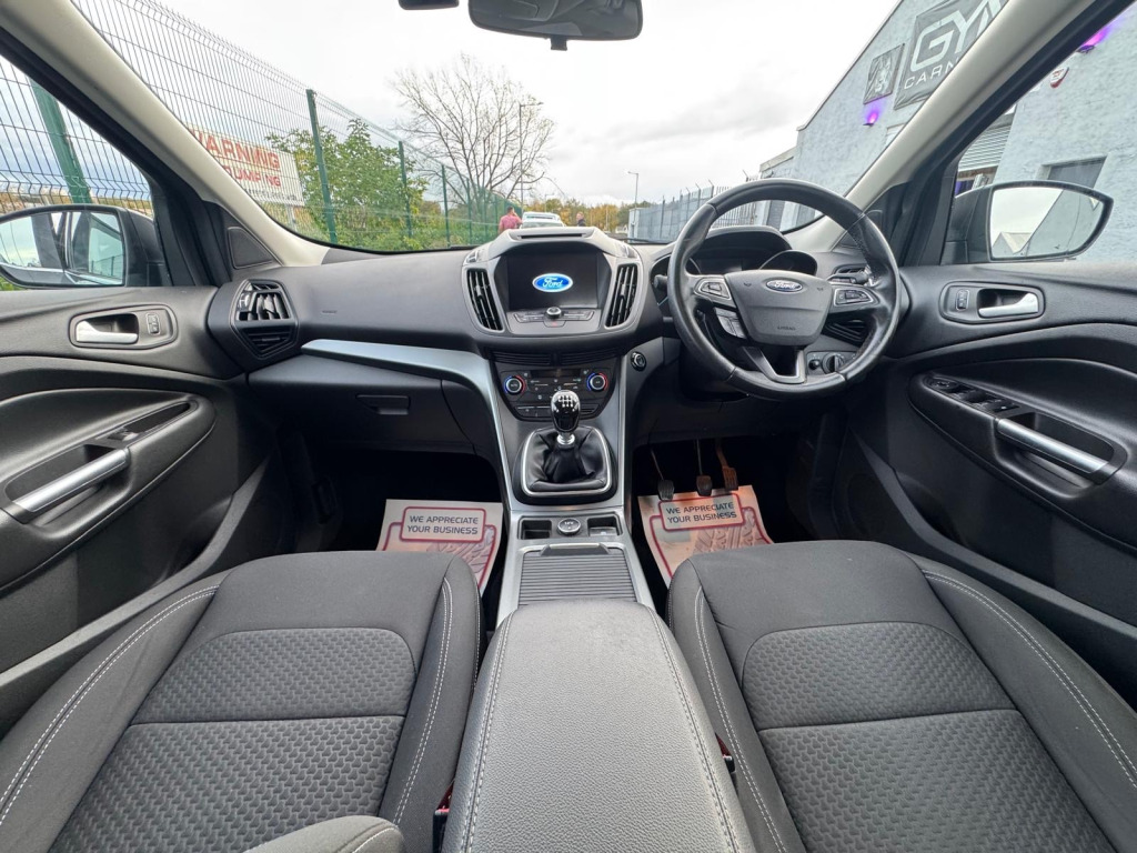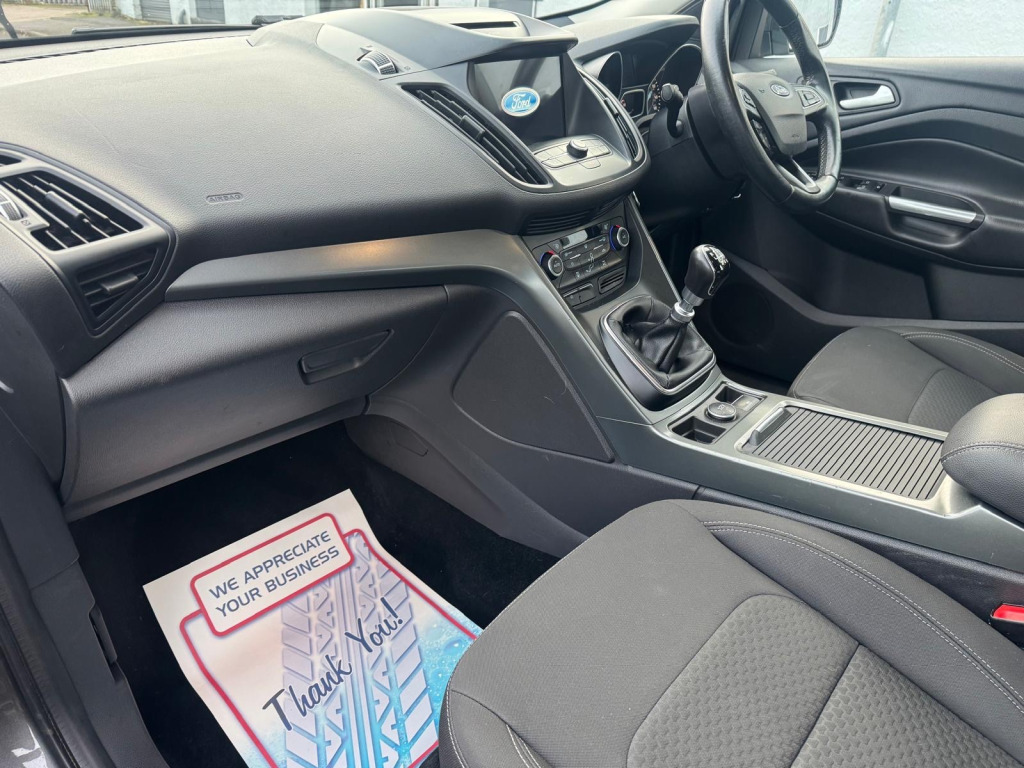 This 2018 Ford Kuga 1.5 TDCi Zetec SUV has covered 87357 miles and is powered by an efficient diesel engine, making it ULEZ compliant. With 5 seats and 5 doors, this SUV is both spacious and practical, perfect for families or adventurers. providing peace of mind for the future. Equipped with 17in Alloy Wheels and Ford DAB Digital Radio-CD with 6 Speakers, as well as Ford SYNC with Emergency Assistance, Audible Text Messaging, Voice Control and USB Connectivity, this Kuga ensures a comfortable and connected driving experience. With additional features including a 12V Power Socket in the Load Compartment, this SUV is ready for all your journeys. Don't miss out on this reliable and stylish vehicle. v power socket - load compartment, audible text messaging - voice control and usb connectivity, ford dab digital radio-cd with 6 speakers, ford sync with emergency assistance, 17in alloy wheels - 10 spoke, door mirrors - electrically operated and heated, electric windows - front and rear with global opening-closing and one touch, locking wheel nuts, mini spare wheel, quickclear heated front windscreen with heated washer jets, twin exhausts and rear diffuser, airbags - driver and front passenger, airbags - drivers knee, airbags - front side impact, airbags - front and rear side curtain, anti-lock braking system - abs with electronic stability control - esc, child locks - manual on rear doors, eba - emergency brake assist, esp - electronic stability programme, engine immobiliser, hill start assist, ips - intelligent protection system, remote central locking, seat belts - 3-point diagonal inertia reel - all seats, seat belts - rear belt minder alert, seatbelts - manual height adjustment, seats - isofix mounting provision for child seats - outer seats only, thatcham category 1 alarm, centre console, courtesy lights - front and rear, door lever - chrome finish, front floor mats, front seat - drivers manual height - fore-aft and recline adjustment, front seat - passenger manual - fore-aft and recline adjustment, front seats - seat-back map pockets, headliner - woven, keyless start, leather steering wheel and gear knob, loadspace floor carpet, manual air conditioning, mykey, rear seat - 60-40 split folding seat back and cushion with multi-step recline function, rear seats - 2-way head restraint up-down, seats - drivers with manual lumbar support adjustment, seats - passenger lumbar support, steering column - rake and reach adjustment, tie-down hooks, tonneau cover, cruise control with active speed limiter, epas - electric power assisted steering, front suspension - independent with macpherson struts and anti-roll bar, rear suspension - independent control blade multi-link system and anti-roll bar, tyre pressure monitoring system, daytime running lamps, fog lights - front, headlights - halogen
