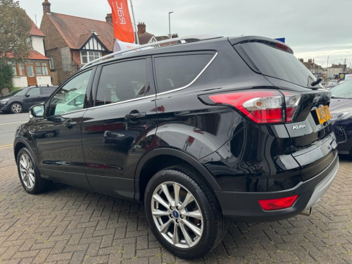 This 2019 Ford Kuga T Titanium Edition boasts exceptionally low mileage for its age, having covered just 25125 miles with 3 services recorded. It is presented in the Titanium Edition trim and is powered by an efficient 1.5L Petrol Engine, meeting Euro 6 emissions standards. This vehicle comes with a 3 month warranty for your peace of mind, and its MOT is valid until June 2026. Furthermore, it benefits with the last service completed on 2025-09-17 at 25125 miles. The Kuga Titanium Edition is equipped with a host of desirable features that set it apart. Stay connected and navigate with ease thanks to the Ford SYNC3 DAB Navigation System, which includes Android Auto, Apple CarPlay, and Bluetooth connectivity. Parking is made simpler with rear parking sensors and parking assistance. Enjoy a comfortable cabin environment with DEATC dual-zone electronic automatic temperature control, allowing for personalised climate settings. The Ford Key Free System with 2 keys provides convenient keyless entry and keyless start, enhancing the overall driving experience. Groove Fabric and Salerno Leather - Char, Shadow Black, 12V Power Socket - Load Compartment, 18in Alloy Wheels - 10 Spoke - Luster Ni, 6-Way Manual Driver Seat with Lumbar Adj, 6-Way Manual Passenger Seat with Lumbar , Airbags - Driver and Front Passenger, Airbags - Drivers Knee, Airbags - Front Side Impact, Airbags - Front and Rear Side Curtain, Anti-Lock Braking System - ABS with Elec, Appearance Pack, Armrest - Folding Centre - Rear, Auto Dimming Rear View Mirror, Centre Console, Child Locks - Manual on Rear Doors, Courtesy Lights - Front and Rear, Cruise Control with Adjustable Speed Lim, DEATC - Dual-Zone Electronic Automatic T, Door Lever - Chrome Finish, Door Mirrors - Power-Operated