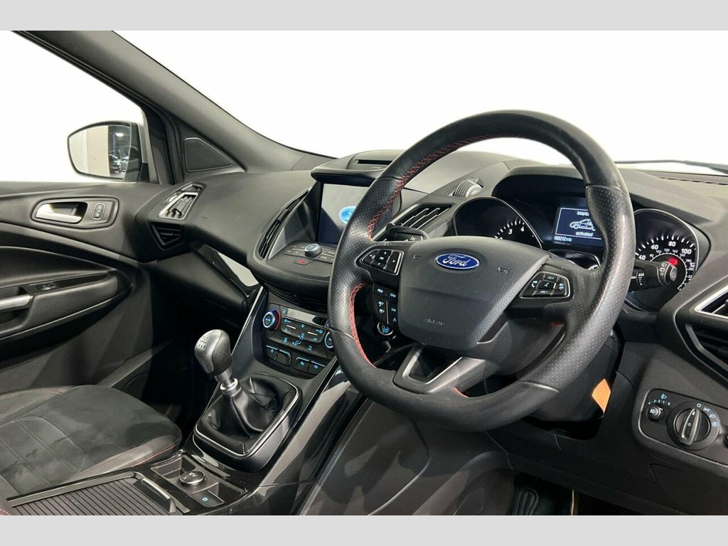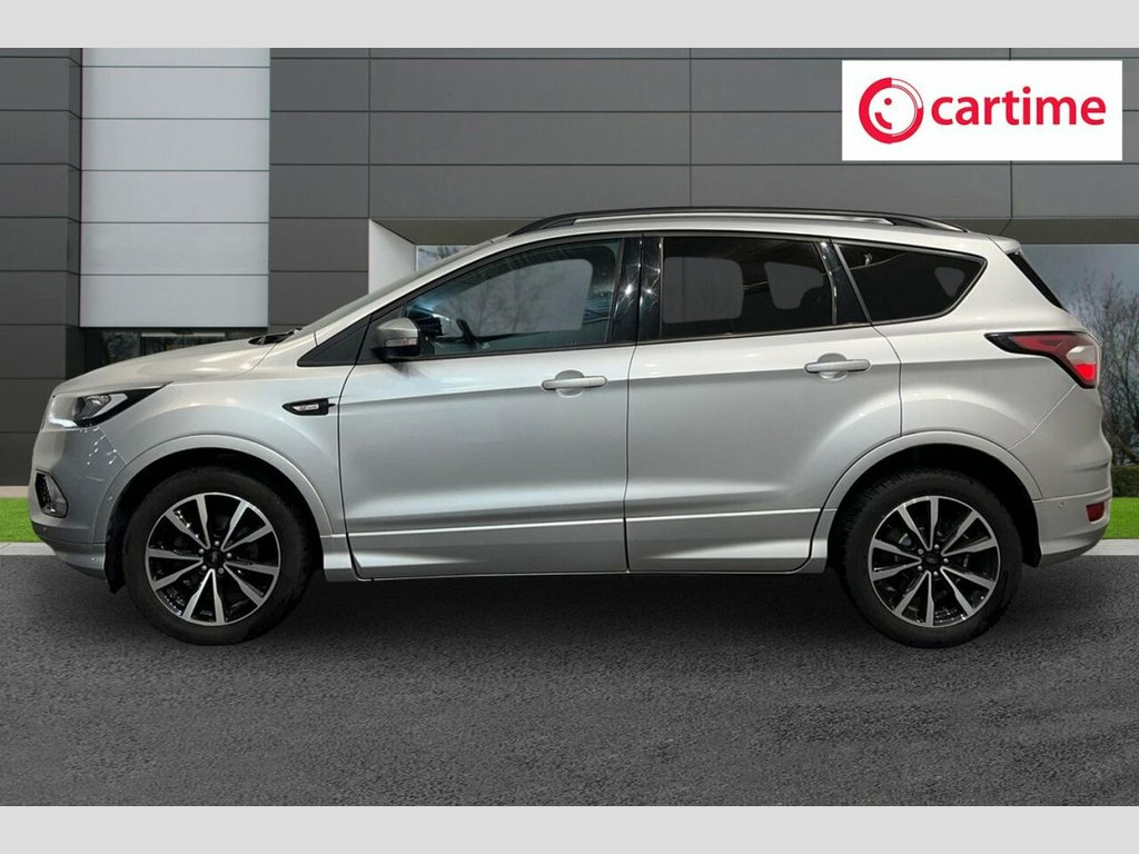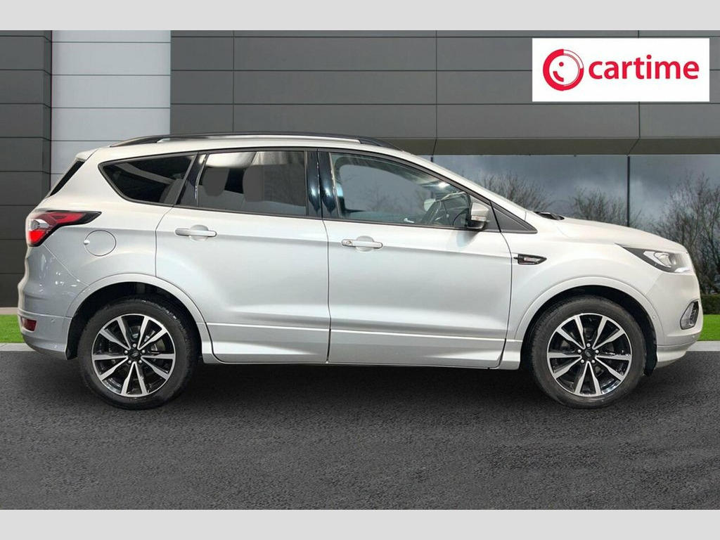 This 2019 Ford Kuga T ST-Line offers excellent peace of mind with an MOT valid until March 2026 and a clear vehicle history check. This Euro 6 compliant model features a 1.5 litre petrol engine and comes in the sporty ST-Line trim. You'll appreciate the convenience of the Ford Key Free System for keyless entry and start, alongside the Enhanced Active Park Assist which includes both front and rear parking sensors, complemented by rear parking sensors for effortless manoeuvring. Inside, the Ford SYNC3 DAB Navigation System keeps you connected and on track, offering seamless integration with Android Auto and Apple CarPlay, as well as Bluetooth connectivity. Comfort is assured with DEATC Dual-Zone Electronic Automatic Temperature Control, allowing you to set individual climate zones. These features collectively demonstrate a superior level of technology and driver assistance, setting this Kuga apart from other vehicles in its class. 12V Power Socket - Load Compartment, 18in Alloy Wheels - 5x2 Spoke - Absolute, 6-Way Manual Driver Seat with Lumbar Adj, 6-Way Manual Passenger Seat with Lumbar , Airbags - Driver and Front Passenger, Airbags - Drivers Knee, Airbags - Front and Rear Side Curtain, Airbags - Front Side Impact, Alloy Foot Pedals, Anti-Lock Braking System - ABS with Elec, Appearance Pack, Armrest - Folding Centre - Rear, Auto Dimming Rear View Mirror, Black Roof Rails, Centre Console, Child Locks - Manual on Rear Doors, Courtesy Lights - Front and Rear, Cruise Control with Adjustable Speed Lim, Dark Headliner, DEATC - Dual-Zone Electronic Automatic T, Dinamica Micro Fibre - Salerno Leather -, Door Lever - Chrome