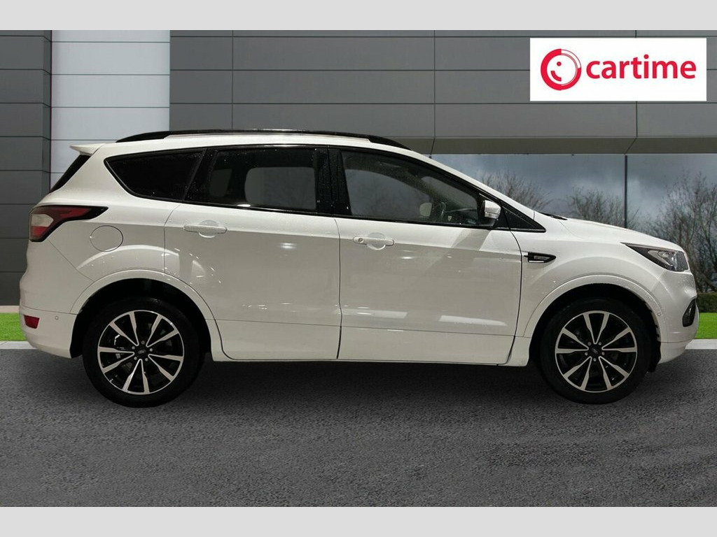 With an MOT valid until July 2026 and a clear vehicle history check, this 2018 Ford Kuga T ST Line offers excellent peace of mind. This Euro 6 compliant 1.5 litre petrol model has covered a low mileage of just 50,190 miles for its age. It comes equipped with the Ford SYNC3 DAB Navigation System, featuring Android Auto and Apple CarPlay for seamless smartphone integration, alongside Bluetooth connectivity. The Ford Keyfree System allows for keyless entry and starting with the Ford Power Starter Button, while automatic halogen headlights with LED daytime running lights enhance visibility. Parking is made simpler with Enhanced Active Park Assist, which includes front and rear parking sensors, complemented by dedicated rear parking sensors. These features, combined with the low mileage and comprehensive MOT, demonstrate that this Ford Kuga T ST Line has been well cared for and offers a superior ownership experience compared to many other vehicles of its kind. 12V Power Socket - Load Compartment, 18in Alloy Wheels - 5x2 Spoke - Absolute, 6-Way Manual Passenger Seat with Lumbar , ABS - Anti-lock Braking System, Airbags - Driver and Front Passenger, Airbags - Drivers Knee, Airbags - Front and Rear Side Curtain, Airbags - Front Side Impact, Alloy Foot Pedals, Appearance Pack, Armrest - Folding Centre - Rear, Automatic Dimming Rear View Mirror, Automatic Halogen Headlights with LED Da, Black Roof Rails, Centre Console, Child Locks - Manual on Rear Doors, Courtesy Lights - Front and Rear, Cruise Control with Active Speed Limiter, Dark Headliner, DEATC - Dual-Zone Electronic Automatic T, Dinamica Micro Fibre - Salerno Leather -, Door Lever - Chrome Fini