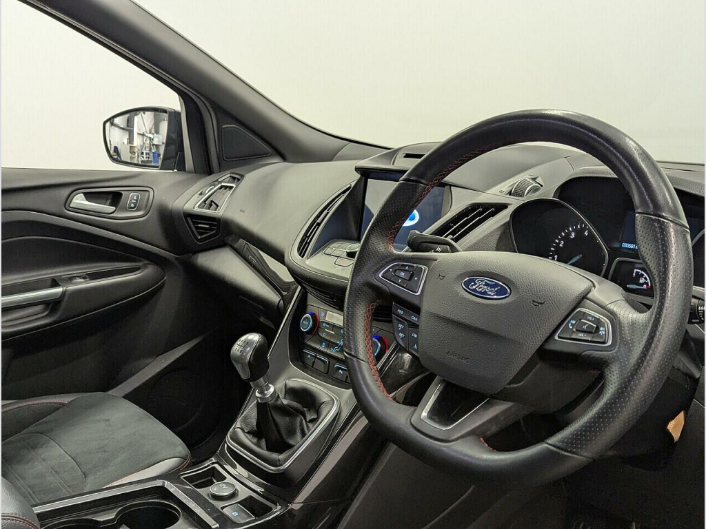 Fresh Motors presents this sleek and sporty Black Ford Kuga ST-Line Auto Petrol, a stunning SUV that combines everyday practicality with bold styling and dynamic performance. This well-equipped example boasts an impressive spec, including Active Park Assist for effortless manoeuvres, front and rear parking sensors, cruise control, and a Quickclear heated windscreen for those frosty mornings. Inside, you'll find sporty ST-Line seats, a leather-wrapped steering wheel, and a high-quality infotainment system featuring Bluetooth connectivity and DAB radio. Backed by a great service history and supplied with a 6-month Select warranty, this Kuga offers a superb combination of comfort, capability, and peace of mind.???? Late Night Shopping – Speak to our sales team until 9pm, Monday, Thursday and Friday.???? Driveaway Same Day – Collect today or delivered straight to your door tomorrow for ultimate convenience.☑️ Certified Fresh – Award-winning vehicle preparation standard, quality assurance you can trust.???? Routine Servicing and MOT – Ensuring reliability & performance, always.???? Extensive Inspections – Thorough checks by skilled technicians, your safety is our top priority.???? Transparent, Honesty and Provenance – No hidden past or surprises, just confidence in every vehicle.???? Reserve for just £99 – Via our website, quick and easy online reservation.???? Part Exchange Available – Trade in your current vehicle hassle-free.???? Finance Options – Flexible deposit & term choices, apply via our website (subject to status).???? Protection Warranties – 12, 24, or 36-month peace of mind options available.✨ Ceramic Paint & Fabric Protection available – Keep your vehicle looking brand new.???? GPS Trackers available – For extra security and peace of mind.???? Support Fee added – Hundreds of pounds worth of benefits and added value for maintenance, our community & environment.???? Visit: freshmotors.co.uk for more details!. 12V Power Socket - Load Compartment, Ford SYNC3 DAB Navigation System, Cruise Control with Adjustable Speed Limiter, Enhanced Active Park Assist, Rear Parking Sensors, Tyre Pressure Monitoring System, 18in Alloy Wheels - 5x2 Spoke - Absolute Black Machined Finish, Appearance Pack, Black Roof Rails, Door Mirrors - Power-Operated - Heated and Power-Foldable with Body Colour Housings - Side Indicators and Puddle Lights, Exhaust - Dual, Full Body Styling Kit, Locking Wheel Nuts, Mini Spare Wheel - 17in Steel, Quickclear Heated Windscreen, Rear Privacy Glass, Scuff Plates - Front, Windows - Electrically Operated Front and Rear with One Touch Lowering-Closing on Drivers Side and Global Closing, Fog Lights - Front, Headlights - Halogen with LED Daytime Running Lights, 6-Way Manual Driver Seat with Lumbar Adjustment, 6-Way Manual Passenger Seat with Lumbar Adjustment, Alloy Foot Pedals, Armrest - Folding Centre - Rear, Auto Dimming Rear View Mirror, Centre Console, Courtesy Lights - Front and Rear, Dark Headliner, DEATC - Dual-Zone Electronic Automatic Temperature Control, Door Lever - Chrome Finish, Ford Power Starter Button, Front and Rear Floor Mats with Red Stitching, Front Seat - Drivers Manual Height - Fore-Aft and Recline Adjustment, Front Seat - Passenger Manual Height - Fore-Aft and Seatback Angle Adjustment, Front Seats - Seat-Back Map Pockets, Gear Knob - Leather with Red Stitching, Load Compartment Carpet, MyKey, Rain Sensitive Windshield Wipers, Rear Seat - 60-40 Split Folding Seat Back and Cushion with Multi-Step Recline Function, Rear Seats - 2-Way Head Restraint Up-Down, Steering Column - Rake and Reach Adjustment, Steering Wheel - 3-Spoke Flat Bottom - Leather Trimmed with Red Stitching, Tie-Down Hooks, Tonneau Cover, EPAS - Electric Power Assisted Steering, Front Suspension - Independent with MacPherson Struts and Anti-Roll Bar, Rear Suspension - Independent Control Blade Multi-Link System and Anti-Roll Bar, Sports Suspension, Airbags - Driver and Front Passenger, Airbags - Drivers Knee, Airbags - Front and Rear Side Curtain, Airbags - Front Side Impact, Anti-Lock Braking System - ABS with Electronic Stability Control - ESC, Child Locks - Manual on Rear Doors, EBA - Emergency Brake Assist, Electric Parking Brake, Engine Immobiliser, Ford Key Free System - Keyless Entry with Keyless Start, IPS - Intelligent Protection System, Remote Central-Double Locking, Seats - ISOFIX Mounting Provision for Child Seats - Outer Seats Only, Thatcham Category 1 Alarm. Part service history