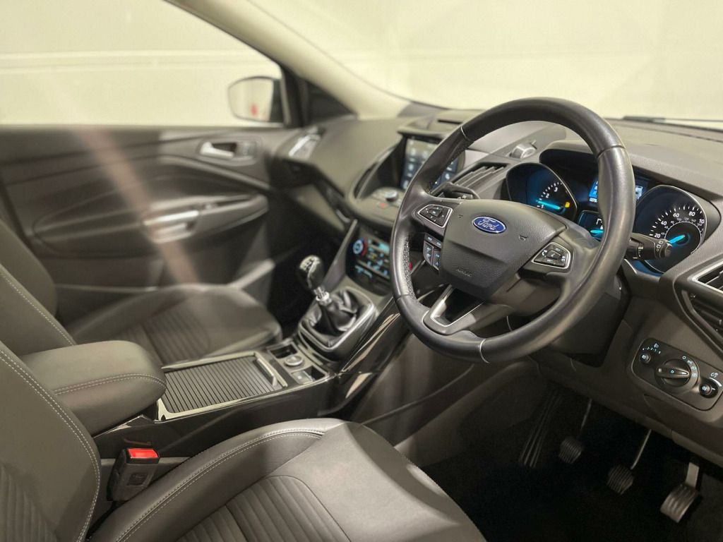 FINANCE & PART EXCHANGE AVAILABLE* - Only 2 registered keepers & 27,976 miles from new, FORD MAIN DEALER SERVICE HISTORY, 2 KEYS - this FANTASTIC LOW MILEAGE FORD KUGA 1.5 ECOBOOST TITANIUM SUV is finished in stunning special orders sports emerald green metallic & is complimented with contrasting 1/2 black leather sports trim and extends itself to the following additional features - on board satellite navigation system, dual zone climate control / automatic air conditioning, trip computer, cruise control with speed limiter, leather trimmed multi function steering wheel, rear park distance control, Bluetooth telephone prep, DAB digital radio, media input, voice command, Apple CarPlay / Android Auto, keyless entry & start, start / stop, lumbar support, hill start assist, privacy glass, emergency assistance, electric heated & folding exterior mirrors, auto headlights, rain sensor, power assisted steering, abs, airbags, electric mirrors, electric windows, remote central locking, head restraints, Ford 17'' sports alloy wheels, Ford anti theft system. ***FINANCE AVAILABLE - subject to status. T&C's apply.***PART EXCHANGE AVAILABLE***ALL VEHICLES ARE HPI & NATIONAL MILEAGE REGISTER CHECKED***THE AA WARRANTY IS SUBJECT TO TERMS & CONDITIONS AND DOES NOT COVER VEHICLES THAT ARE BEING USED FOR TAXI, PRIVATE HIRE, CHAUFFEURING PURPOSES OR FOR REWARD.***Please note, that the specifications/components/features etc. are generic to that vehicle of the type advertised but may not be included in the specific vehicle that is for sale. It is for the intended purchaser to satisfy themselves of the presence or absence of any specifications/components/features before sale. Please ask if you are uncertain of anything and we will see if we can assist.. 12V Power Socket - Load Compartment, 17in Alloy Wheels - 5x2 Spoke, 6-Way Manual Passenger Seat with Lumbar Adjustment, Airbags - Driver and Front Passenger, Airbags - Drivers Knee, Airbags - Front Side Impact, Airbags - Front and Rear Side Curtain, Anti-Lock Braking System - ABS with Electronic Stability Control - ESC, Armrest - Folding Centre - Rear, Audible Text Messaging - Voice Control and USB Connectivity, Centre Console, Child Locks - Manual on Rear Doors, Courtesy Lights - Front and Rear, Cruise Control with Active Speed Limiter, DEATC - Dual-Zone Electronic Automatic Temperature Control, Door Lever - Chrome Finish, EBA - Emergency Brake Assist, EPAS - Electric Power Assisted Steering, ESP - Electronic Stability Programme, Electric Parking Brake, Engine Immobiliser, Floor Mats - Front and Rear - Velour, Fog Lights - Front, Ford Key Free System - Keyless Entry with Keyless Start, Ford Power Starter Button, Ford SYNC3 DAB Navigation System, Front Seat - Drivers Manual Height - Fore-Aft and Recline Adjustment, Front Seat - Passenger Manual Height - Fore-Aft and Seatback Angle Adjustment, Front Seats - Seat-Back Map Pockets, Front Suspension - Independent with MacPherson Struts and Anti-Roll Bar, Headlights - Halogen, Headliner - Woven, IPS - Intelligent Protection System, LED Daytime Running Lights, Leather Steering Wheel and Gear Knob, Load Compartment Carpet, Locking Wheel Nuts, Mini Spare Wheel - 17in Steel, Multi-Colour Ambient Interior Lighting, MyKey, Power Folding Door Mirrors with Puddle Lights, Quickclear Heated Front Windscreen with Heated Washer Jets, Rain Sensitive Windshield Wipers, Rear Parking Sensors, Rear Seat - 60-40 Split Folding Seat Back and Cushion with Multi-Step Recline Function, Rear Seats - 2-Way Head Restraint Up-Down, Rear Suspension - Independent Control Blade Multi-Link System and Anti-Roll Bar, Remote Central-Double Locking, Scuff Plates - Front, Seats - Drivers with Manual Lumbar Support Adjustment, Seats - ISOFIX Mounting Provision for Child Seats - Outer Seats Only, Steering Column - Rake and Reach Adjustment, Thatcham Category 1 Alarm, Tie-Down Hooks, Tonneau Cover, Twin Exhausts and Rear Diffuser, Tyre Pressure Monitoring System, Windows - Electrically Operated Front and Rear with One Touch Lowering-Closing on Drivers Side and Global Closing, Groove Fabric and Salerno Leather - Charcoal Black.