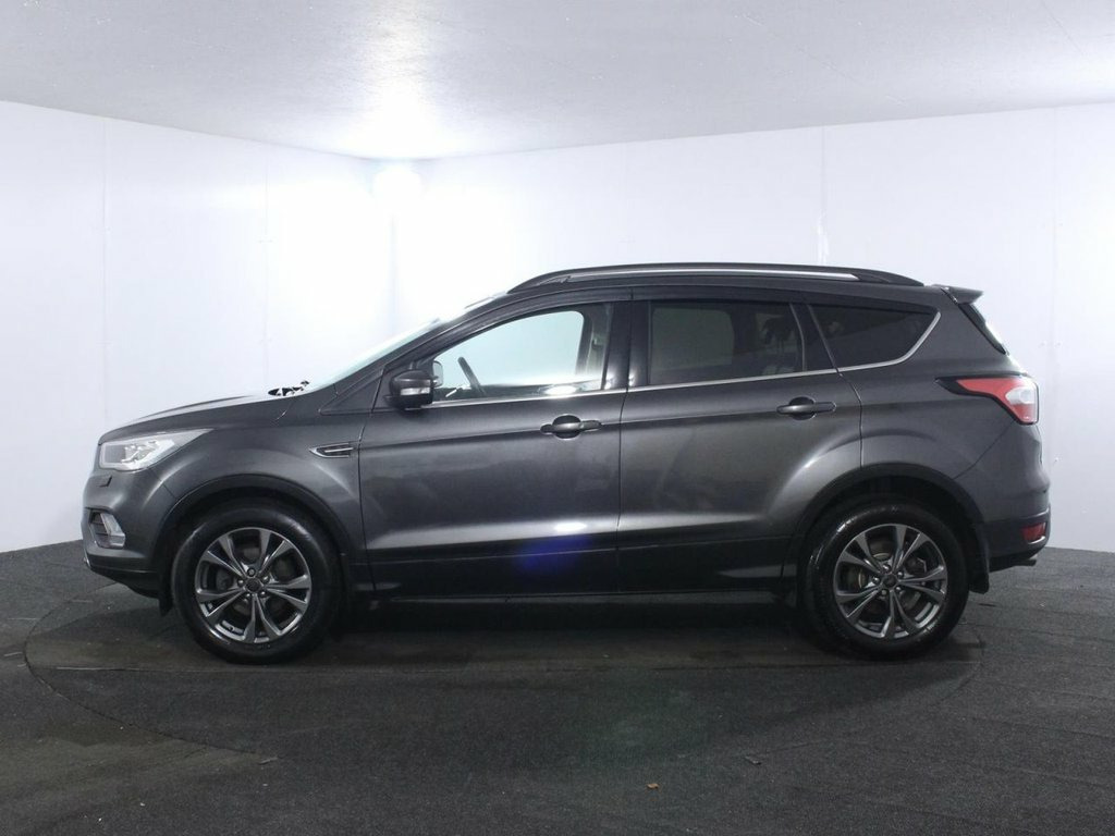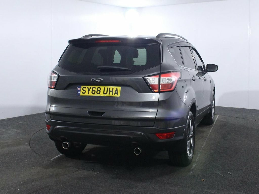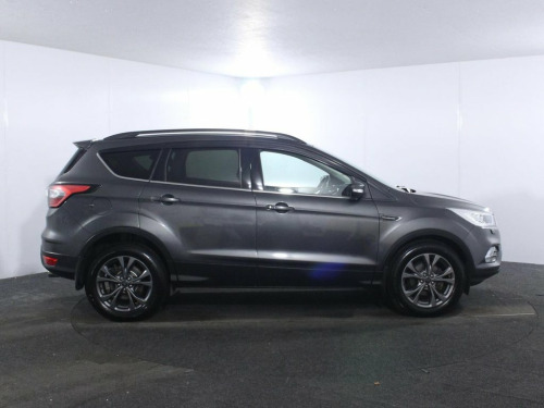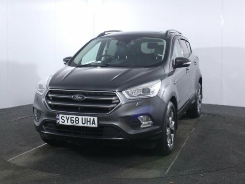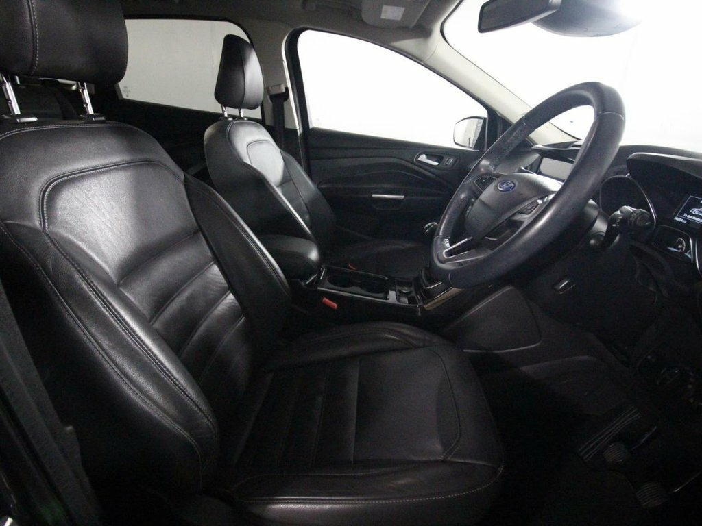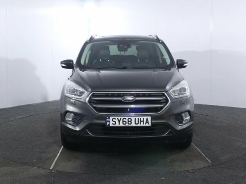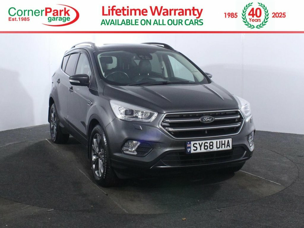 Service history with 5 services. Last serviced at 44,633 miles. The 2018 Ford Kuga 1.5T EcoBoost GPF Titanium X is a premium mid-size SUV powered by a refined 150 ps 1.5-litre turbocharged petrol engine with 240 Nm torque, paired to a six-speed manual gearbox and front-wheel drive, offering 0-62 mph in 9.7 seconds, a top speed of 121 mph, and WLTP combined economy around 42.8 mpg (real-world mid-30s to low 40s mpg) with 152 g/km CO2 under Euro 6 standards. Magnetic paintwork accentuates its upscale Titanium X styling with 18-inch 5-spoke alloy wheels, bi-xenon adaptive headlights, LED daytime running lights/rear lights, power-folding mirrors with puddle lights, chrome door levers/glass surrounds, twin exhausts/rear diffuser, front fog lights, and optional panoramic roof for a sophisticated presence. Inside, the luxurious cabin features Salerno charcoal black leather-trimmed seats (10-way power driver's with height/fore-aft/lumbar/recline/tilt, 6-way manual passenger with lumbar), heated front seats/cushions, multi-colour ambient lighting, dual-zone electronic auto temperature control (DEATC), leather steering wheel/gear knob, woven headliner, folding rear centre armrest, 60/40 split-folding/multi-recline rear seats with 2-way head restraints/map pockets, and practical touches like load compartment 12V socket/carpet/tonneau cover/tie-downs. Tech impresses with Ford SYNC3 DAB navigation, voice control/USB connectivity, cruise control/active speed limiter, rain-sensing wip 12V Power Socket - Load Compartment, 18in Alloy Wheels - 5 Spoke, 6-Way Manual Passenger Seat with Lumbar , Active City Stop, Airbags - Driver and Front Passenger, Airbags - Drivers Knee, Airbags - Front and Rear Side Curtain, Airbags - Front Side Impact, Anti-Lock Braking System - ABS with Elec, Armrest - Folding Centre - Rear, Audible Text Messaging - Voice Control a, Bi-Xenon Headlights with Dynamic Bending, Centre Console, Child Locks - Manual on Rear Doors, Cruise Control with Active Speed Limiter, DEATC - Dual-Zone Electronic Automatic T, Door Lever - Chrome Finish, Drivers Seat - 10-Way Power Adjustment, EBA - Emergency Brake Assist, Electric Parking Brake, Engine Immobiliser, EPAS -