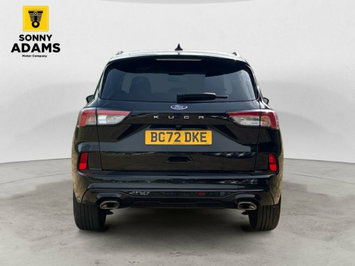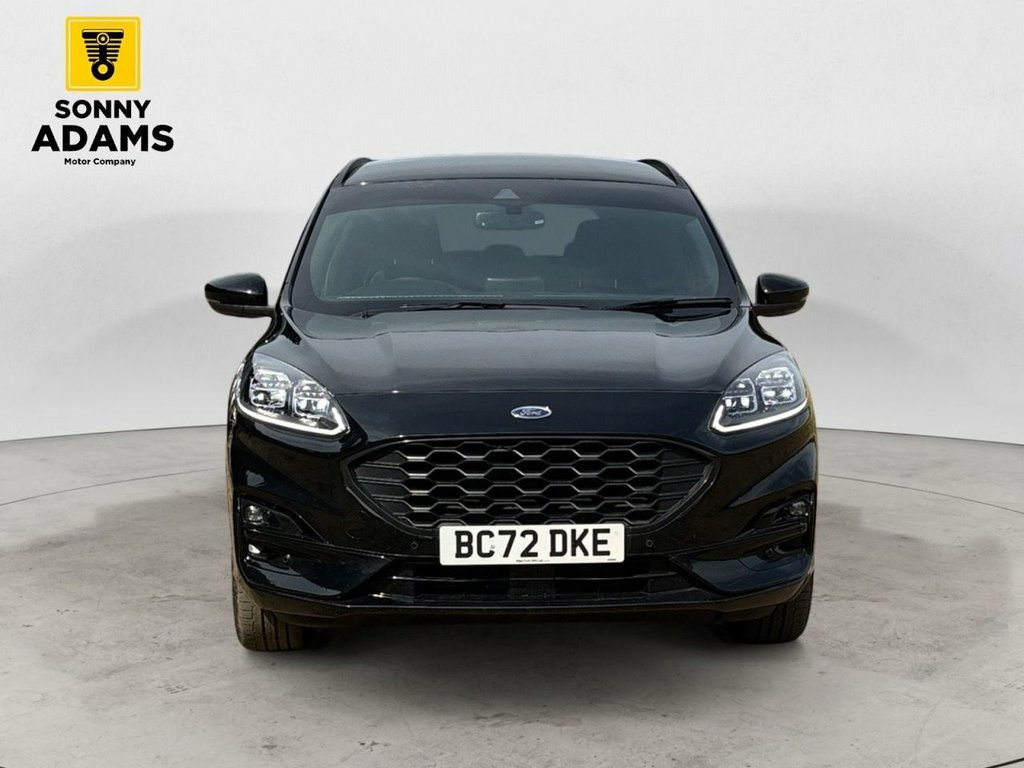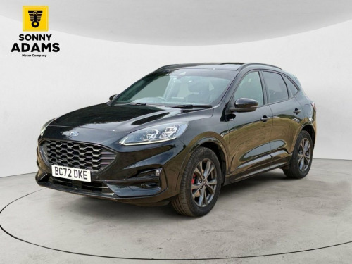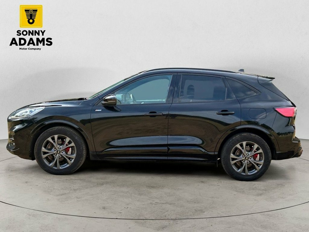 Presented in sleek Agate Black, this Ford Kuga ST-Line Edition combines sporty styling with everyday practicality and comfort. Powered by a responsive 1.5T EcoBoost petrol engine delivering 150 ps and paired with a smooth manual transmission, this Euro 6 (s/s) compliant SUV offers a refined yet engaging drive. The exterior is enhanced with a distinctive ST-Line bodystyling kit, 18" 10-spoke Rock Metallic alloy wheels, red brake calipers, full LED headlights, LED front fog lights, black roof rails, rear privacy glass, and a large rear spoiler. The interior features partial Sensico and Rapton cloth upholstery with red stitching, sports seats, aluminium pedals, a sports dark headliner, and ST-Line branded scuff plates for a premium, athletic feel. Inside, enjoy high levels of comfort and flexibility with a 10-way power adjustable driver's seat, an 8-way adjustable passenger seat with lumbar support, sliding rear seats, and a heated Quickclear windscreen. The cabin is equipped with dual-zone electronic automatic temperature control, ambient lighting, and Ford's SYNC3 infotainment system with DAB navigation, full smartphone connectivity, and a 12.3" digital instrument cluster. Practicality is further enhanced with features like handsfree power tailgate, rear seat centre armrest with integrated cup holders, removable package tray, multiple 12V power sockets, and power windows with global closing. Safety and technology highlights include pre-collision assist 10-Way Power Adjustable Drivers Seat, 12V Power Point in Floor Console, 12v Power Point in Cargo Area, 12v Socket - Voltage Regulator, 18in Alloy Wheels - 10 Spoke - Rock Meta, 2nd Row Sliding Seats, 8-Way Manual Passenger Seat including Lu, ABS - Anti-Lock Braking System with Enha, Air Conditioning - Electronic Automatic , Airbag - Driver and Front Passenger Side, Airbag - Front Passenger Deactivation Sw, Airbags - Driver and Front Passenger, Airbags - Front and Rear Side Curtain, Aluminium - Finish Front Scuff Plates wi, Aluminium Foot Pedals - ST-Line Design, Ambient Lighting, Auto Dimming Rear View Mirror, Auto Wipers, Automatic Door Relocking, Automatic Headlights with Auto High-Low , B