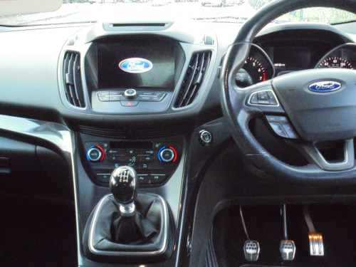 Discover this 2019 Ford Kuga T ST-Line, a well maintained example ready for its next owner. This stylish SUV is powered by an efficient 1.5L petrol engine, meeting Euro 6 emissions standards. Inside, you'll find comfort and convenience with DEATC dual zone electronic automatic temperature control, ensuring a pleasant cabin environment for all occupants. The Ford SYNC3 DAB navigation system keeps you connected and on track, offering seamless integration with Android Auto and Apple CarPlay, alongside Bluetooth connectivity for hands free calls and music streaming.Navigating tight spaces is made effortless thanks to the Enhanced Active Park Assist, which includes front and rear parking sensors. This advanced system, along with the dedicated rear parking sensors, provides comprehensive assistance when parking. These features, combined with the intuitive SYNC3 system and the comfortable climate control, highlight how this Ford Kuga T ST-Line offers a superior driving experience compared to other vehicles in its class.. 12V Power Socket - Load Compartment, 18in Alloy Wheels - 5x2 Spoke, 6-Way Manual Passenger Seat with Lumbar Adjustment, Airbags - Driver and Front Passenger, Airbags - Drivers Knee, Airbags - Front Side Impact, Airbags - Front and Rear Side Curtain, Alloy Foot Pedals, Anti-Lock Braking System - ABS with Electronic Stability Control - ESC, Armrest - Folding Centre - Rear, Audible Text Messaging - Voice Control and USB Connectivity, Black Roof Rails, Centre Console, Child Locks - Manual on Rear Doors, Courtesy Lights - Front and Rear, Cruise Control with Active Speed Limiter, DEATC - Dual-Zone Electronic Automatic Temperature Control, Dark Headliner, Door Lever - Chrome Finish, EBA - Emergency Brake Assist, EPAS - Electric Power Assisted Steering, ESP - Electronic Stability Programme, Electric Parking Brake, Engine Immobiliser, Enhanced Active Park Assist, Fog Lights - Front, Ford Power Starter Button, Ford SYNC3 DAB Navigation System, Front Seat - Drivers Manual Height - Fore-Aft and Recline Adjustment, Front Seat - Passenger Manual Height - Fore-Aft and Seatback Angle Adjustment, Front Seats - Seat-Back Map Pockets, Front Suspension - Independent with MacPherson Struts and Anti-Roll Bar, Front and Rear Floor Mats with Red Stitching, Full Body Styling Kit, Headlights - Halogen, IPS - Intelligent Protection System, LED Daytime Running Lights, Load Compartment Carpet, Locking Wheel Nuts, Mini Spare Wheel - 17in Steel, MyKey, Power Folding Door Mirrors with Puddle Lights, Quickclear Heated Front Windscreen with Heated Washer Jets, Rain Sensitive Windshield Wipers, Rear Parking Sensors, Rear Seat - 60-40 Split Folding Seat Back and Cushion with Multi-Step Recline Function, Rear Seats - 2-Way Head Restraint Up-Down, Rear Suspension - Independent Control Blade Multi-Link System and Anti-Roll Bar, Remote Central-Double Locking, Scuff Plates - Front, Seats - Drivers with Manual Lumbar Support Adjustment, Seats - ISOFIX Mounting Provision for Child Seats - Outer Seats Only, Sports Suspension, Steering Column - Rake and Reach Adjustment, Steering Wheel and Gear Knob - Leather with Red Stitching, Thatcham Category 1 Alarm, Tie-Down Hooks, Tonneau Cover, Twin Exhausts and Rear Diffuser, Tyre Pressure Monitoring System, Windows - Electrically Operated Front and Rear with One Touch Lowering-Closing on Drivers Side and Global Closing. Full service history