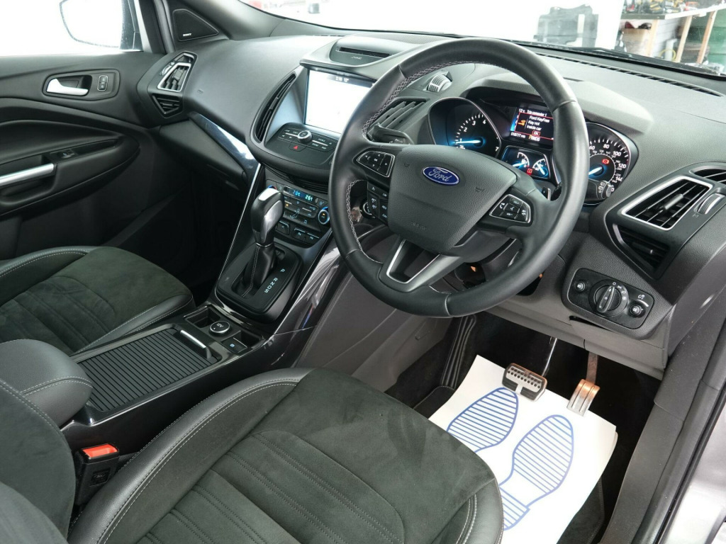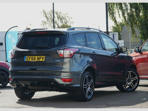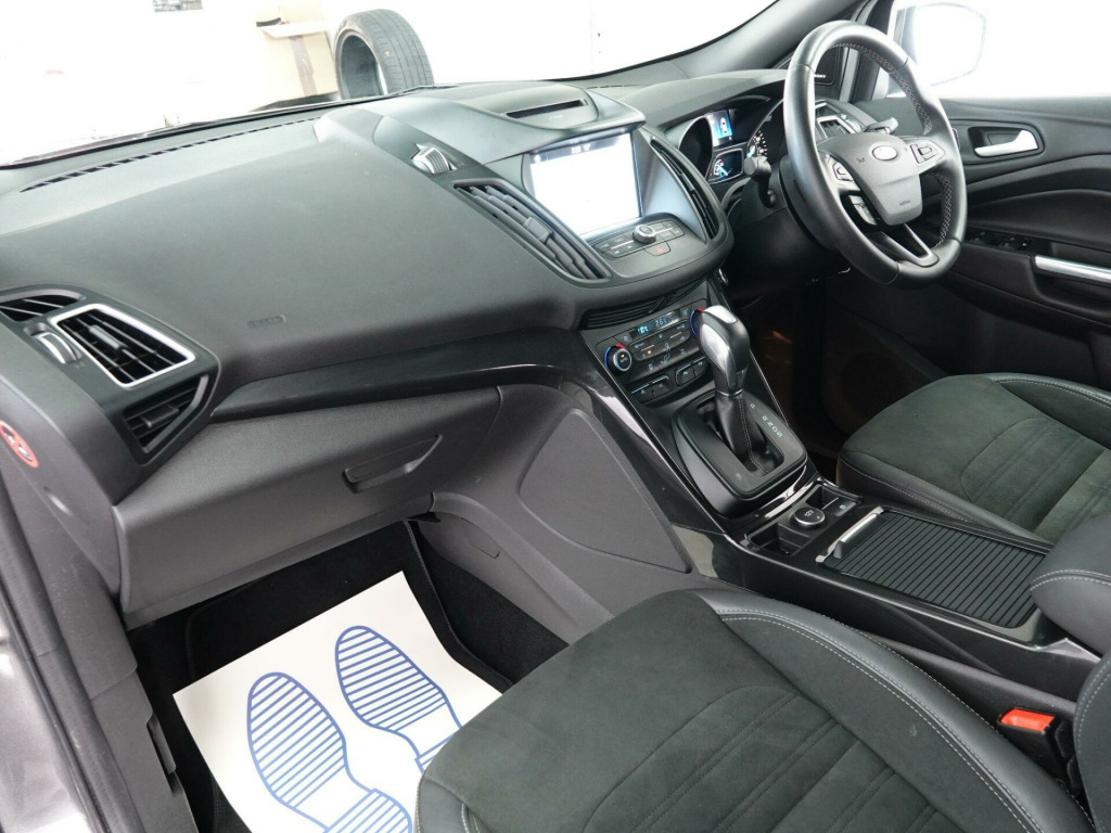 This 2016 Ford Kuga T ST Line offers exceptionally low mileage for its age, having covered just 18,775 miles. This desirable Four Wheel Drive model is presented in Euro 6 specification and benefits from a clear vehicle history check and a full service history, with its last service completed on 19th September 2025 at 18,775 miles. It has had only two owners from new and will be supplied with 12 months MOT. Notable features include a rear view camera with parking assistance, a driver assistance pack with blind spot assistance, a premium Ford DAB navigation system with Ford SYNC3 and Bluetooth, a power tailgate, and 19 inch alloy wheels.The Kuga T ST Line stands out with its comprehensive specification, indicating a higher level of equipment and refinement compared to other vehicles in its class. The inclusion of the Driver Assistance Pack, featuring blind spot assistance, enhances safety and driver awareness. Furthermore, the premium navigation system with SYNC3 and Bluetooth connectivity ensures seamless integration of your digital life, while the power tailgate adds a touch of convenience. These elements combine to offer a superior ownership experience. A 3 month warranty is also included for your peace of mind. emium ford dab navigation system with ford sync3, rear view camera, 19in alloy wheels - 5x2 spoke, rear privacy glass, st-line style pack, power tailgate, vector cloth-torino partial leather - charcoal black, driver assistance pack, 18in alloy wheels - 5x2 spoke - dark machined, accessory power socket - 12v, accessory power socket - 12v in luggage compartment, alloy pedals, armrest - folding centre - rear, automatic halogen headlights with led daytime running lights, black roof rails, centre console, courtesy light - footwell illumination, courtesy light - front and rear centre, cruise control with active speed limiter, deatc - dual-zone electronic automatic temperature control, dark headliner, door lever - chrome finish, eba - emergency brake assist, epas - electric power assisted steering, electric parking brake, electric windows - front and rear with global opening-closing and one touch, enhanced active park assist, flat load floor board, ford easy fuel - capless refuelling system, front fog lights, front lower grille - black, front seat - drivers manual height - fore-aft and recline adjustment, front seat - drivers manual lumbar support adjustment, front seat - passenger manual height - fore-aft and recline adjustment, front seats - 4-way front head restraints - up-down, front seats - seat-back map pockets, front upper grille - painted black with chrome bar insert and chrome surround, full body styling kit, hill start assist, ips - intelligent protection system, keyless start, leather steering wheel and gear knob, locking wheel nuts, mini spare wheel, power folding door mirrors with puddle lights, quickclear heated front windscreen with heated washer jets, rain sensitive windshield wipers, rear floor mats, rear seat - 60-40 split folding seat back and cushion with multi-step recline function, remote central-double locking, st-line floor mats with contrast stitching, st-line seats - gear knob and steering wheel, sync 3 with 8in colour touchscreen with bluetooth - voice control - usb connectivity port and emergency assistance, satellite navigation - navigation center, scuff plates - front, seats - passenger lumbar support, sports suspension, steering column - rake and reach adjustment, tvc - torque vectoring control, tailgate wash-wipe, thatcham category 1 alarm, tie-down hooks, tonneau cover, twin exhausts and rear diffuser, tyre pressure monitoring system, variable dimming of instrument cluster and radio screen display, edcc - enhanced dynamic cornering control