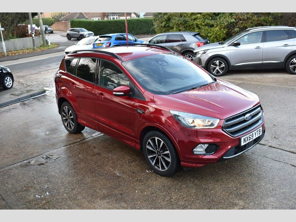 Take a look at this stunning metallic Ruby Red Ford Kuga. This low mileage petrol AWD automatic car looks stunning in this colour and comes with a full service history. It also comes with some great features such as navigation, Apple car play, front & rear parking sensors, half leather seats, privacy glass, keyless entry and start, cruise control, DAB, powerfold door mirrors and more! Fantastic value for money. Finance available from £0 deposit. Full Service History, DAB Radio, USB Connection, Bluetooth + Audio Streaming, Child Seat ISOFIX Attachment - Rear, Front Armrest, Automatic Headlights, Powerfold Door Mirrors, Electric Windows, Front & Rear Parking Sensors, Air Conditioning - Climate Control Dual , Apple & Android Carplay, Satelite Navigation, Ruby Red, Active City Stop, Dinamica Micro Fibre - Salerno Leather -, 18in Alloy Wheels - 5x2 Spoke - Absolute, Cruise Control with Adjustable Speed Lim, Ford Key Free System - Keyless Entry wit, Fog Lights - Front, Enhanced Active Park Assist, Paddle Shift, Rear Privacy Glass