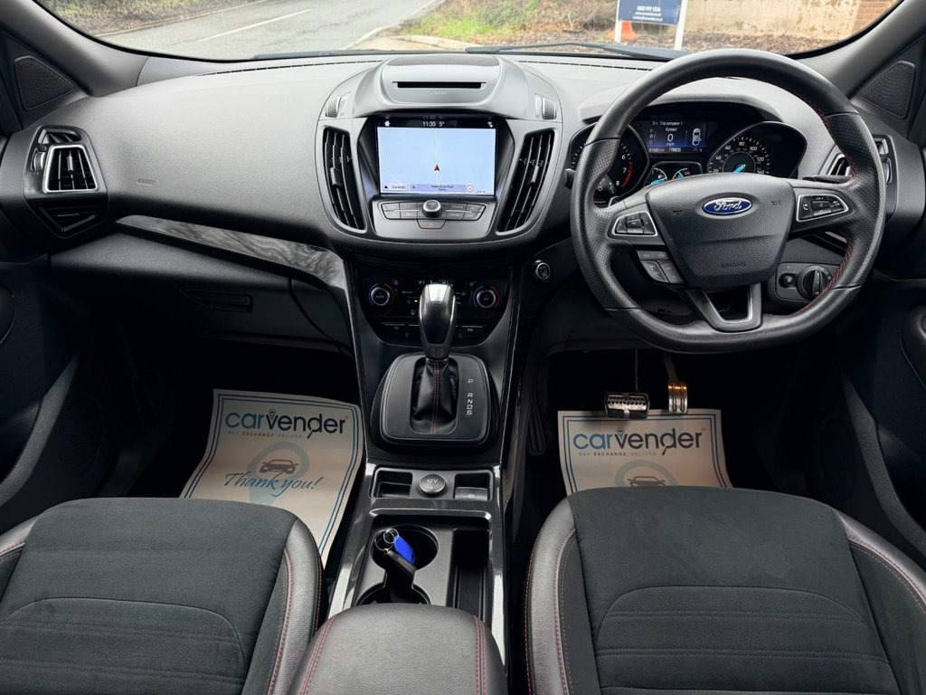 At Carvender we are presenting The 2019 Ford Kuga 1.5T Ecoboost ST-Line 5dr. The 2019 Ford Kuga is a perfect SUV which combines robust performance with sophisticated design and advanced technology. This Kuga is equipped with a 1.5 litre EcoBoost engine that delivers an impressive 176 brake horsepower. The Ford Kuga stands out with its bold and athletic exterior. The sleek lines, prominent grille and stylish alloy wheels give it a commanding road presence. This Kuga comes with the advanced features including Cruise Control, Rear & Front Parking Sensors with Assist, Half Leather Seats, A User Friendly Touchscreen, Apple CarPlay/Android Auto, Navigation System, Bluetooth connectivity and much more. Please refer to advert photos for more features. This Kuga has been very well maintained . We have Full Service History in the file which have been carried out at the mileages of Services have been carried out at millages of 11, 5586, 11458, 15211, 26195, 34736, 47934 and 51583 on 08/02/2026. Camelot and Water pump was also changed 34736miles on 20/03/2024. Do not miss on the opportunity to own this beautiful desirable car. Contact us today to schedule a test drive or visit our website for home delivery with 14 days money back guaranty. 12V Power Socket - Load Compartment, 18in Alloy Wheels - 5x2 Spoke - Absolute, 6-Way Manual Driver Seat with Lumbar Adj, 6-Way Manual Passenger Seat with Lumbar , Airbags - Driver and Front Passenger, Airbags - Drivers Knee, Airbags - Front Side Impact, Airbags - Front and Rear Side Curtain, Alloy Foot Pedals, Anti-Lock Braking System - ABS with Elec, Appearance Pack, Armrest - Folding Centre - Rear, Auto Dimming Rear View Mirror, Black Roof Rails, Centre Console, Child Locks - Manual on Rear Doors, Courtesy Lights - Front and Rear, Cruise Control with Adjustable Speed Lim, DEATC - Dual-Zone Electronic Automatic T, Dark Headliner, Door Lever - Chrome Finish, Door Mirrors - Power-Operated - H