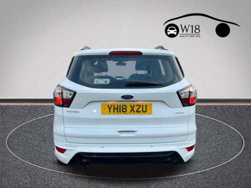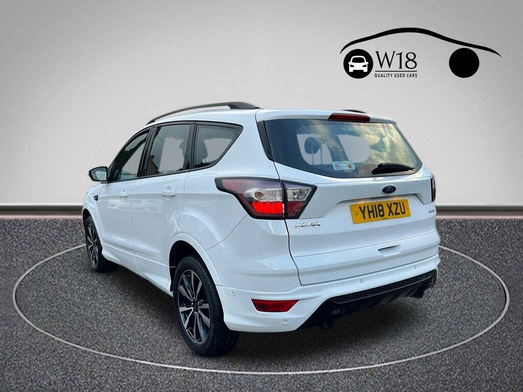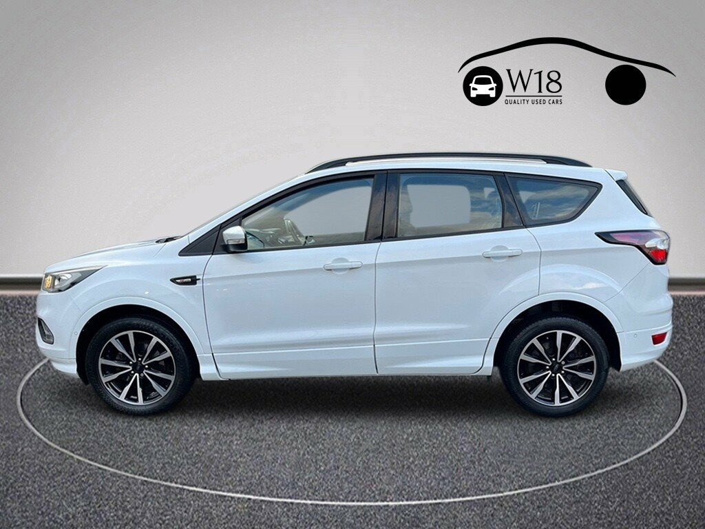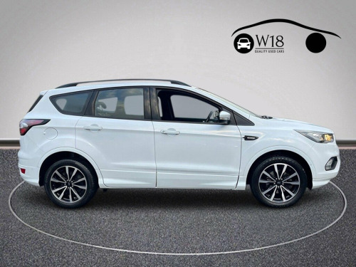 Boasting exceptionally low mileage for its age, this 2018 Ford Kuga T ST-Line presents a compelling proposition. This Euro 6 compliant 1.5 litre petrol model comes with a full service history (@18,995, @26,871, @38,700, @41,710) and a clear vehicle history check, ensuring peace of mind. You will also benefit from a 6 month warranty and a 12 month MOT provided on purchase. Inside, you'll find DEATC dual zone electronic automatic temperature control for personalised comfort, alongside an enhanced active park assist system with front and rear sensors, and rear parking sensors for effortless manoeuvring. The Ford DAB Navigation System with Ford SYNC3 and Bluetooth connectivity keeps you informed and entertained, while automatic halogen headlights with LED daytime running lights ensure visibility. With an impressive fuel economy of 45 miles per gallon, this Ford Kuga T ST-Line offers excellent running costs, making it a more economical choice compared to many similar vehicles. The very low mileage of just 41710 miles further highlights its superior condition and value, suggesting it has been well cared for and used sparingly. This combination of efficiency, low usage, and comprehensive features makes this Kuga a standout option for those seeking a reliable and well equipped family car. 12V Power Socket - Load Compartment, 18in Alloy Wheels - 5x2 Spoke - Dark Mac, 6-Way Manual Passenger Seat with Lumbar , Airbags - Driver and Front Passenger, Airbags - Drivers Knee, Airbags - Front Side Impact, Airbags - Front and Rear Side Curtain, Alloy Pedals, Anti-Lock Braking System - ABS with Elec, Armrest - Folding Centre - Rear, Audible Text Messaging - Voice Control a, Automatic Dimming Rear View Mirror, Automatic Halogen Headlights with LED Da, Black Roof Rails, Centre Console, Child Locks - Manual on Rear Doors, Courtesy Lights - Front and Rear, Cruise Control with Active Speed Limiter, DEATC - Dual-Zone Electronic Automatic T, Dark Headliner, Door Lever - Chrome Finish, EBA - Em