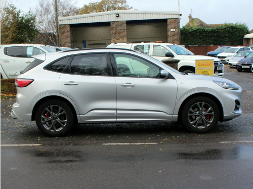 This 2021 Ford Kuga is an impressive SUV with only 32000 miles on the clock and a MOT that expires on 15/06/2026. Powered by a 1.5T EcoBoost petrol engine, this Euro 6 compliant vehicle is perfect for city and long-distance driving, and it's also ULEZ compliant, a great bonus for urban drivers. With 5 seats and 5 doors, it's a spacious and versatile family car, and the Moondust Silver exterior adds a touch of sophistication. The interior is equally luxurious, with features including a Bang and Olufsen Premium Audio System, Ford DAB Audio System, and a 10-way power-adjustable driver's seat for maximum comfort. This high-spec ST-Line model is a standout option for anyone in the market for a reliable and stylish SUV that doesn't compromise on performance., OPEN 7 DAYS A WEEK - A SELECTION OF UP TO 200 CARS AND VANS AVAILABLE. Click on dealer 'VISIT WEBSITE' link for many more large photographs of this car. We are a West Sussex Trading Standards Approved 'Buy with Confidence Dealership'. v power socket - load compartment, bang and olufsen premium audio system, ford dab audio system, ford sync3 navigation system, fordpass connect, power converter 230v, wireless charging, 18in alloy wheels - 10 spoke - rock metallic, black roof rails, heated and power folding door mirrors with puddle lights, large rear spoiler, locking wheel nuts, privacy glass, quickclear heated windscreen, red brake calipers, st-line bodystyling kit, st-line front scuff plates, tyre inflation kit, windows - electrically operated front and rear with one touch lowering-closing on drivers side and global closing, 2nd row sliding seats, alloy foot pedals, auto dimming rear view mirror, centre console, courtesy light - front and rear centre, deatc - dual-zone electronic automatic temperature control, dark headliner and pillars, door lever - chrome finish, flat bottom leather steering wheel, floor mats - front and rear - st-line, ford power starter button, full digital 12.3in instrument cluster, mykey gen ii, rain sensitive windshield wipers, seats - drivers 8-way adjustment, seats - passengers 4-way adjustment, sports seats, steering column - rake and reach adjustment, tie-down hooks, tonneau cover, unique st-line leather gear knob, abs - anti-lock braking system, airbags - driver and front passenger, airbags - drivers knee, airbags - front and rear side curtain, driver impairment monitor, eba - emergency brake assist, esc - electronic stability control, electric parking brake, engine immobiliser, ford easy fuel system, ford key free system - keyless entry with keyless start, ips - intelligent protection system, lane keeping aid with lane departure warning, post collision braking, powered child proof rear door locks with global closing, remote power central double locking doors, seats - isofix mounting provision for child seats - outer seats only, thatcham category 1 alarm, auto start-stop system, cruise control with adjustable speed limiter, epas - electric power assisted steering, front suspension - independent with macpherson struts and anti-roll bar, front and rear parking sensors, intelligent speed assistance, pre-collision assist with aeb, rear suspension - independent control blade multi-link system and anti-roll bar, selectable drive modes, sports suspension, tyre pressure monitoring system, front led fog lights with cornering function, headlights - automatic on-off, led daytime running lights, rear lights - led