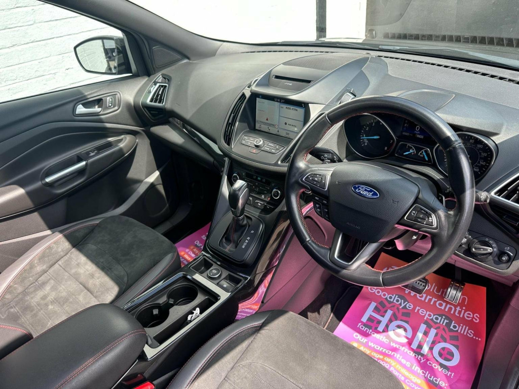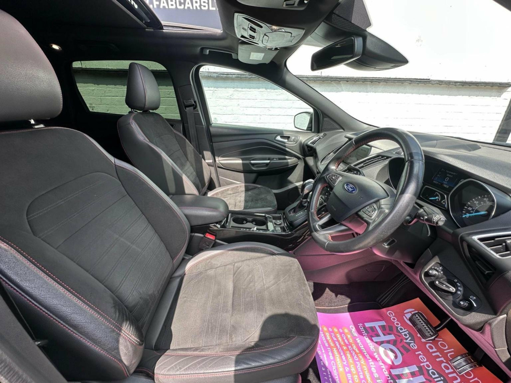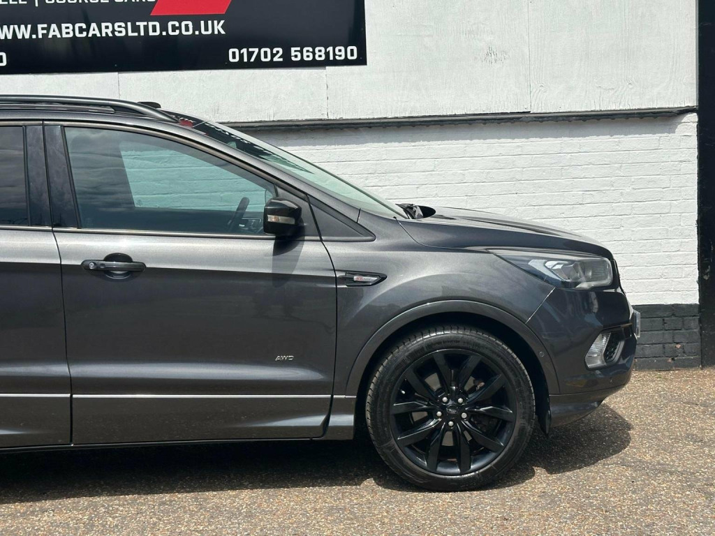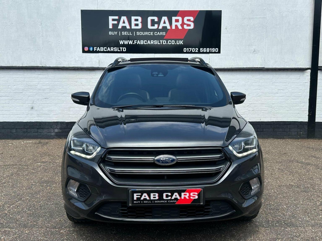 FAB CARS LTD take great pleasure in presenting this stunning Ford Kuga 1.5T EcoBoost ST-Line X Auto AWD Euro 6 (s/s) 5dr, is a mid-size SUV that blends sporty aesthetics with practical performance. The intelligent all-wheel drive, the Kuga offers smooth gear changes & reliable traction, even in adverse weather conditions. The system predominantly drives the front wheels but can distribute power to the rear axle when needed, the Kuga ST-Line X boasts a blend of leather & Alcantara upholstery, offering a sporty yet comfortable feel. The cabin features practical storage solutions, including door bins with cup holders, a deep central armrest box, & a glovebox. Rear passengers benefit from ample legroom & a 60/40 split-folding rear seat configuration. The powered tailgate adds convenience, & the boot space is generous, accommodating a spare wheel beneath the floor. The car is Fully Loaded 19-inch alloy wheels, Sports suspension, Full body kit with black roof rails, Front & Rear parking sensors, Pan roof, Aluminium pedals & stitched seats, Electric tailgate, SYNC3 infotainment system with Apple CarPlay & Android Auto, Heated seats, Keyless entry, Park assist, Great spec. Just serviced & gearbox serviced, FREE 6 months nationwide warranty covering electrical & mechanical parts + VAT + Labour. *Option to extended warranty to 12, 24, 36 months. *We can offer a nationwide delivery. Bespoke finance packages available HPI Clear, V5 & all relevant car docs. This lovely car looks & drives superb. At FAB CARS LTD we dont just sell cars, we do everything possible to get you on the road with your perfect vehicle. Check our great reviews. All cars Prepped to a high standard, *Most cars can be driven away the same day. We pride ourselves on our fantastic 5-star reputation, repeat business & referrals from many happy customers. All Payment methods accepted. Independent mechanical inspection welcome. test drive with a no pressure relaxed environment. P/X considered. Viewing Appointment only. Please call for more information, or to arrange an appointment on 01702568190