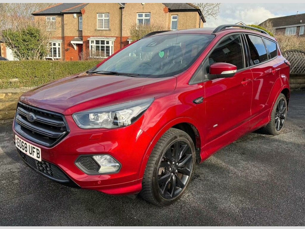 This 2018 Ford Kuga T ST-Line X boasts exceptionally low mileage for its age, having covered just 48,000 miles. This Euro 6 compliant model features a responsive 1.5 litre petrol engine paired with a capable four wheel drive system, ensuring confident driving in various conditions. The ST-Line X trim level comes equipped with a premium Ford DAB Navigation System, complete with Ford SYNC3, offering seamless integration for Android Auto and Apple CarPlay, Bluetooth connectivity, and a branded sound system. Parking is made easier with the integrated rear camera and parking assistance.Further enhancing this Kuga is the ST-Line Style Pack, which includes striking Xenon headlights. The exterior is further distinguished by a large rear spoiler, adding to its sporty aesthetic. Inside, you'll find multi-colour ambient interior lighting, creating a pleasant atmosphere. These features, combined with its low mileage and desirable ST-Line X specification, position this Ford Kuga as a compelling choice compared to other vehicles in its class.. 12V Power Socket - Load Compartment, 19in Alloy Wheels - 5x2 Spoke - Black, 6-Way Manual Passenger Seat with Lumbar Adjustment, Airbags - Driver and Front Passenger, Airbags - Drivers Knee, Airbags - Front Side Impact, Airbags - Front and Rear Side Curtain, Alloy Foot Pedals, Anti-Lock Braking System - ABS with Electronic Stability Control - ESC, Armrest - Folding Centre - Rear, Audible Text Messaging - Voice Control and USB Connectivity, Black Roof Rails, Centre Console, Child Locks - Manual on Rear Doors, Cruise Control with Active Speed Limiter, DEATC - Dual-Zone Electronic Automatic Temperature Control, Dark Headliner, Door Lever - Chrome Finish, Drivers Seat - 10-Way Power Adjustment, EBA - Emergency Brake Assist, EPAS - Electric Power Assisted Steering, ESP - Electronic Stability Programme, Electric Parking Brake, Engine Immobiliser, Enhanced Active Park Assist, Fog Lights - Front, Ford Key Free System with Hands-Free Power Tailgate, Ford Power Starter Button, Ford SYNC3 DAB Navigation System, Front Seat - Drivers Power Height - Fore-Aft - Lumbar - Recline and Cushion Tilt Adjustment, Front Seat - Heated Cushion and Seat Back, Front Seat - Passenger Manual Height - Fore-Aft and Seatback Angle Adjustment, Front Seats - Seat-Back Map Pockets, Front Suspension - Independent with MacPherson Struts and Anti-Roll Bar, Front and Rear Floor Mats with Red Stitching, Full Body Styling Kit, Headlights - Halogen, Heated Driver and Passenger Seats, IPS - Intelligent Protection System, LED Daytime Running Lights, Load Compartment Carpet, Locking Wheel Nuts, Mini Spare Wheel - 17in Steel, MyKey, Paddle Shift, Power Folding Door Mirrors with Puddle Lights, Power Opening Panoramic Roof, Quickclear Heated Front Windscreen with Heated Washer Jets, Rain Sensitive Windshield Wipers, Rear Parking Sensors, Rear Seat - 60-40 Split Folding Seat Back and Cushion with Multi-Step Recline Function, Rear Seats - 2-Way Head Restraint Up-Down, Rear Suspension - Independent Control Blade Multi-Link System and Anti-Roll Bar, Remote Central-Double Locking, Scuff Plates - Front, Seats - ISOFIX Mounting Provision for Child Seats - Outer Seats Only, Sports Suspension, Steering Column - Rake and Reach Adjustment, Steering Wheel and Gear Knob - Leather with Red Stitching, Thatcham Category 1 Alarm, Tie-Down Hooks, Tonneau Cover, Twin Exhausts and Rear Diffuser, Tyre Pressure Monitoring System, Windows - Electrically Operated Front and Rear with One Touch Lowering-Closing on Drivers Side and Global Closing, Rear View Camera, Premium Ford DAB Navigation System with Ford SYNC3, Rear Privacy Glass, Large Rear Spoiler, ST-Line Style Pack, Dinamica Micro Fibre - Salerno Leather - Ebony and Charcoal Black, Multi-Colour Ambient Interior Lighting. Full service history
