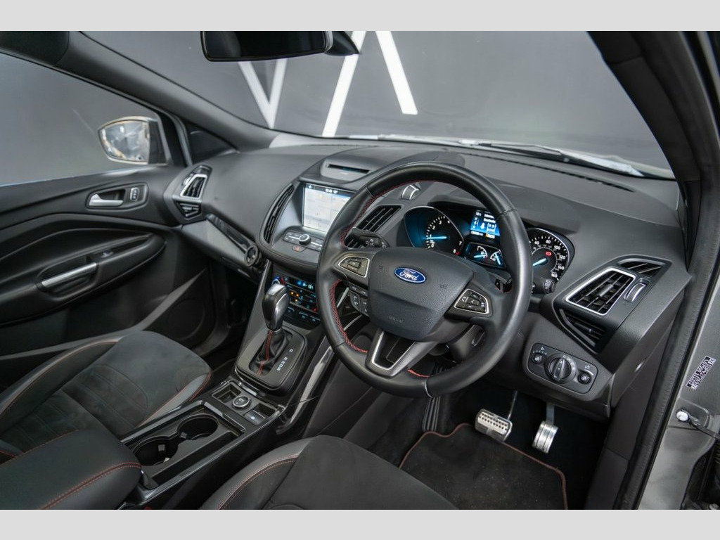 This car is a striking Ford Kuga 1.5T EcoBoost ST-Line X AWD, finished in a dynamic and athletic style that perfectly blends performance with practicality. Powered by a 176 PS turbocharged petrol engine paired with all-wheel drive and a smooth automatic transmission, this Kuga delivers confident handling and composed ride quality in all conditions. The ST-Line Style Pack (£1125.00) enhances its bold character with 19in 5x2-Spoke Black Alloy Wheels, a Full Body Styling Kit, and Rear Privacy Glass (£250.00), giving it a road presence that's unmistakably sporty.  Inside, the heated front sport seats with red contrast stitching, flat-bottom leather steering wheel, and dark headliner create a refined yet performance-inspired cabin. The Panoramic Power Opening Roof floods the interior with natural light, while premium features such as SYNC 3 Navigation with DAB, Enhanced Active Park Assist, Dual-Zone Climate Control, and Key-Free System with Hands-Free Power Tailgate elevate comfort and convenience. With its Quickclear Heated Windscreen, Sports Suspension, and advanced safety technology including Active Speed Limiter, Lane Assist, and Electronic Stability Control, this Kuga ST-Line X delivers the perfect balance of style, technology, and driving excitement — a true SUV designed for those who love to drive. ST-Line Style Pack, Rear Privacy Glass, 12V Power Socket - Load Compartment, 19in Alloy Wheels - 5x2 Spoke - Black, 6-Way Manual Passenger Seat with Lumbar , Airbags - Driver and Front Passenger, Airbags - Drivers Knee, Airbags - Front Side Impact, Airbags - Front and Rear Side Curtain, Alloy Foot Pedals, Anti-Lock Braking System - ABS with Elec, Armrest - Folding Centre - Rear, Audible Text Messaging - Voice Control a, Black Roof Rails, Centre Console, Child Locks - Manual on Rear Doors, Cruise Control with Active Speed Limiter, DEATC - Dual-Zone Electronic Automatic T, Dark Headliner, Door Lever - Chrome Finish, Drivers Seat - 10-Way Power Adjustment, EBA - Emergency Brake Assist, EPAS - E