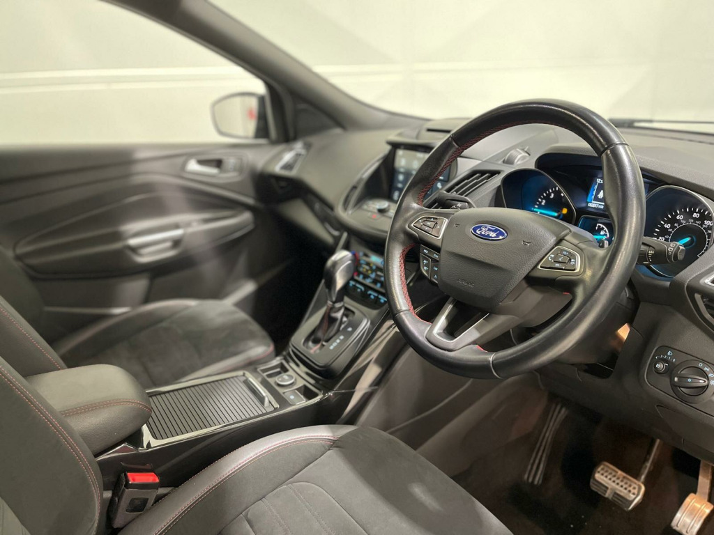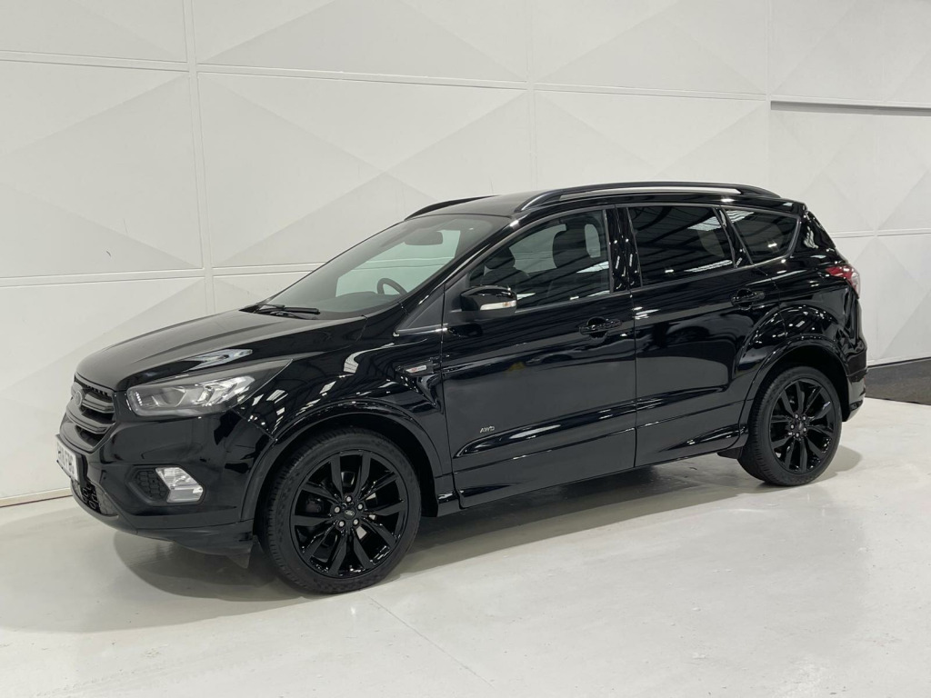 FINANCE & PART EXCHANGE AVAILABLE* - Only 2 registered keepers & 63,017 miles from new, SERVICE HISTORY, 2 KEYS- this HIGH SPECIFICATION FOUR WHHEL DRIVE FORD KUGA 1.5 ECOBOOST ST-LINE X AUTOMATIC WITH PANORAMIC GLASS SUNROOF is finished in stunning sports black & is complimented with contrasting full black leather & alcantara sports trim and extends itself to the following additional features - Ford ST-Line X styling, full electric tilt & sliding glass panoramic sunroof with electric blind, on board satellite navigation system, dual zone climate control / automatic air conditioning, trip computer, cruise control with speed limiter, leather trimmed multi function steering wheel with paddle shift, front & rear park distance control, park assist, driver & passenger heated front seats, driver seat electrically adjustable, Bluetooth telephone prep, DAB digital radio, media input, voice command, Apple CarPlay / Android Auto, keyless entry & start, start / stop, heated front screen, roof rails, lumbar support, emergency assistance, electric tailgate, privacy glass, hands-free boot opening, electric folding & heated exterior mirrors, auto headlights, rain sensor, power assisted steering, abs, airbags, electric mirrors, electric windows, remote central locking, head restraints, Ford 19'' sports alloy wheels finished in sports black, Ford anti theft system. ***FINANCE AVAILABLE - subject to status. T&C's apply.***PART EXCHANGE AVAILABLE***ALL VEHICLES ARE HPI & NATIONAL MILEAGE REGISTER CHECKED***THE AA WARRANTY IS SUBJECT TO TERMS & CONDITIONS AND DOES NOT COVER VEHICLES THAT ARE BEING USED FOR TAXI, PRIVATE HIRE, CHAUFFEURING PURPOSES OR FOR REWARD.***Please note, that the specifications/components/features etc. are generic to that vehicle of the type advertised but may not be included in the specific vehicle that is for sale. It is for the intended purchaser to satisfy themselves of the presence or absence of any specifications/components/features before sale. Please ask if you are uncertain of anything and we will see if we can assist.. 19in Alloy Wheels - 5x2 Spoke - Black, 6-Way Manual Passenger Seat with Lumbar Adjustment, Accessory Power Socket - 12V, Accessory Power Socket - 12v in Luggage Compartment, Airbags - Driver and Front Passenger, Airbags - Drivers Knee, Airbags - Drivers and Front Passenger Front Side - Front and Rear Curtain, Airbags - Front Side Impact, Alloy Pedals, Armrest - Folding Centre - Rear, Audible Text Messaging - Voice Control and USB Connectivity, Automatic Dimming Rear View Mirror, Automatic Halogen Headlights with LED Daytime Running Lights, Automatic Headlights - Rain Sensing Wipers - Auto Dimming Rear View Mirror, Black Roof Rails, Centre Console, Child Locks - Manually Adjustable Rear Door Locks, Courtesy Light - Footwell Illumination, Courtesy Light - Front and Rear, Cruise Control with Active Speed Limiter, DEATC - Dual-Zone Electronic Automatic Temperature Control, Dark Headliner, Door Lever - Chrome Finish, EPAS - Electric Power Assisted Steering, ESP - Electronic Stability Programme, Electric Parking Brake, Electric Windows - Front and Rear with Global Opening-Closing and One Touch, Enhanced Active Park Assist, Flat Load Floor Board, Fog Lights - Front, Ford DAB Navigation System with Ford SYNC3, Ford Easy-Fuel Capless Refuelling System, Front Lower Grille - Black, Front Seats - 4-Way Front Head Restraints - Up-Down, Front Seats - Seat-Back Map Pockets, Front Upper Grille - Black, Full Body Styling Kit, Handsfree Power Tailgate, Heated Driver and Passenger Seats, Hill Start Assist, IPS - Intelligent Protection System, Keyless Opening with Hands Free Power Tailgate, Keyless Start, Leather Steering Wheel and Gear Knob, Locking Wheel Nuts, Locks - Remote Central with Double Locking, Mini Spare Wheel, Power Folding Door Mirrors with Puddle Lights, Power Opening Panoramic Roof, Quickclear Heated Front Windscreen with Heated Washer Jets, Rain Sensitive Windshield Wipers, Rear Floor Mats, Rear Parking Sensors, Rear Seat - 60-40 Split Folding Seat Back and Cushion with Multi-Step Recline Function, ST-Line Floor Mats with Contrast Stitching, ST-Line Seats - Gear Knob and Steering Wheel, SYNC3 with 8in Touchscreen DAB Audio System, Scuff Plates - Front, Seats - Drivers 10-Way Power Adjustment, Seats - Drivers Lumbar Support, Seats - ISOFIX Mounting Provision for Child Seats - Outer Seats Only, Seats - Passenger Lumbar Support, Sports Suspension, Steering Column - Rake and Reach Adjustment, Tailgate Wash-Wipe, Thatcham Category 1 Alarm, Tie-Down Hooks, Tonneau Cover, Twin Exhausts and Rear Diffuser, Tyre Pressure Monitoring System, 12V Power Socket - Load Compartment, Airbags - Front and Rear Side Curtain, Anti-Lock Braking System - ABS with Electronic Stability Control - ESC, Child Locks - Manual on Rear Doors, Courtesy Lights - Front and Rear, EBA - Emergency Brake Assist, Engine Immobiliser, Ford SYNC with Emergency Assistance, Front Seat - Passenger Manual - Fore-Aft and Recline Adjustment, Loadspace Floor Carpet, MyKey, Paddle Shift, Rear Seats - 2-Way Head Restraint Up-Down, Seat Belts - 3-Point Diagonal Inertia Reel - All Seats, Seat Belts - Rear Belt Minder Alert, Seatbelts - Manual Height Adjustment, Seats - Drivers with Manual Lumbar Support Adjustment, Seats - Passenger Height Adjustment, Rear Privacy Glass.