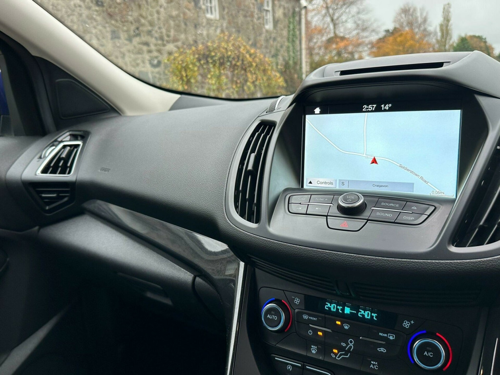 Experience refined driving in this 2017 Ford Kuga Titanium, a vehicle that combines practicality with a touch of luxury. The Kuga T Titanium boasts a responsive 1.5L petrol engine and meets stringent Euro 6 emission standards, making it a sound choice for the environmentally conscious driver.Equipped with keyless opening and entry, getting on the road is effortless. The dual-zone electronic automatic temperature control ensures a comfortable cabin environment for both driver and passengers, while automatic halogen headlights with LED daytime running lights provide enhanced visibility. The Ford DAB navigation system with Ford SYNC3, including Bluetooth connectivity, keeps you connected and entertained on the go. Manoeuvring is made easier with rear parking sensors. With a fuel economy of 45 mpg, this Kuga offers an economical option compared to similar vehicles. in alloy wheels - 5x2 spoke, accessory power socket - 12v, accessory power socket - 12v in luggage compartment, airbags - driver and front passenger, airbags - drivers knee, airbags - drivers and front passenger front side - front and rear curtain, airbags - front side impact, armrest - folding centre - rear, audible text messaging - voice control and usb connectivity, automatic dimming rear view mirror, automatic halogen headlights with led daytime running lights, automatic headlights - rain sensing wipers - auto dimming rear view mirror, centre console, child locks - manually adjustable rear door locks, courtesy light - footwell illumination, courtesy light - front and rear, cruise control with active speed limiter, deatc - dual-zone electronic automatic temperature control, door lever - chrome finish, epas - electric power assisted steering, esp - electronic stability programme, electric parking brake, electric windows - front and rear with global opening-closing and one touch, flat load floor board, fog lights - front, ford dab navigation system with ford sync3, ford easy-fuel capless refuelling system, front floor mats, front lower grille - self colour, front seat - drivers manual height - fore-aft and recline adjustment, front seat - passenger manual - fore-aft and recline adjustment, front seats - 4-way front head restraints - up-down, front seats - seat-back map pockets, front upper grille - painted black with chrome bar insert and chrome surround, gear shift indicator, hill start assist, ips - intelligent protection system, keyless opening, keyless start, leather steering wheel and gear knob, locking wheel nuts, locks - remote central with double locking, mini spare wheel, multi-colour ambient interior lighting, power folding door mirrors with puddle lights, quickclear heated front windscreen with heated washer jets, rain sensitive windshield wipers, rear floor mats, rear parking sensors, rear seat - 60-40 split folding seat back and cushion with multi-step recline function, sync3 with 8in touchscreen dab audio system, scuff plates - front, seats - drivers lumbar support, seats - front sports, seats - isofix mounting provision for child seats - outer seats only, seats - passenger lumbar support, steering column - rake and reach adjustment, tailgate wash-wipe, thatcham category 1 alarm, tie-down hooks, tonneau cover, twin exhausts and rear diffuser, tyre pressure monitoring system