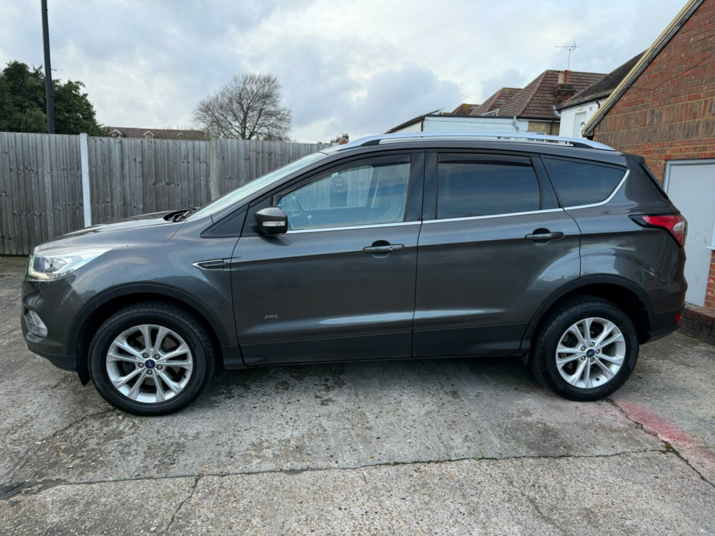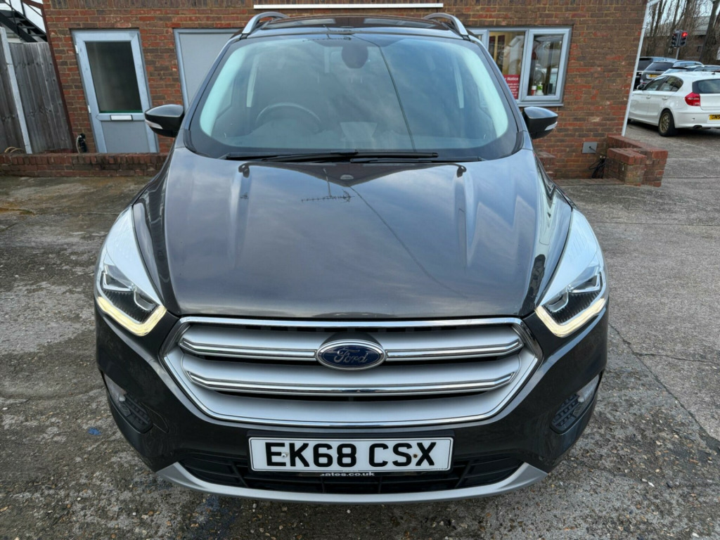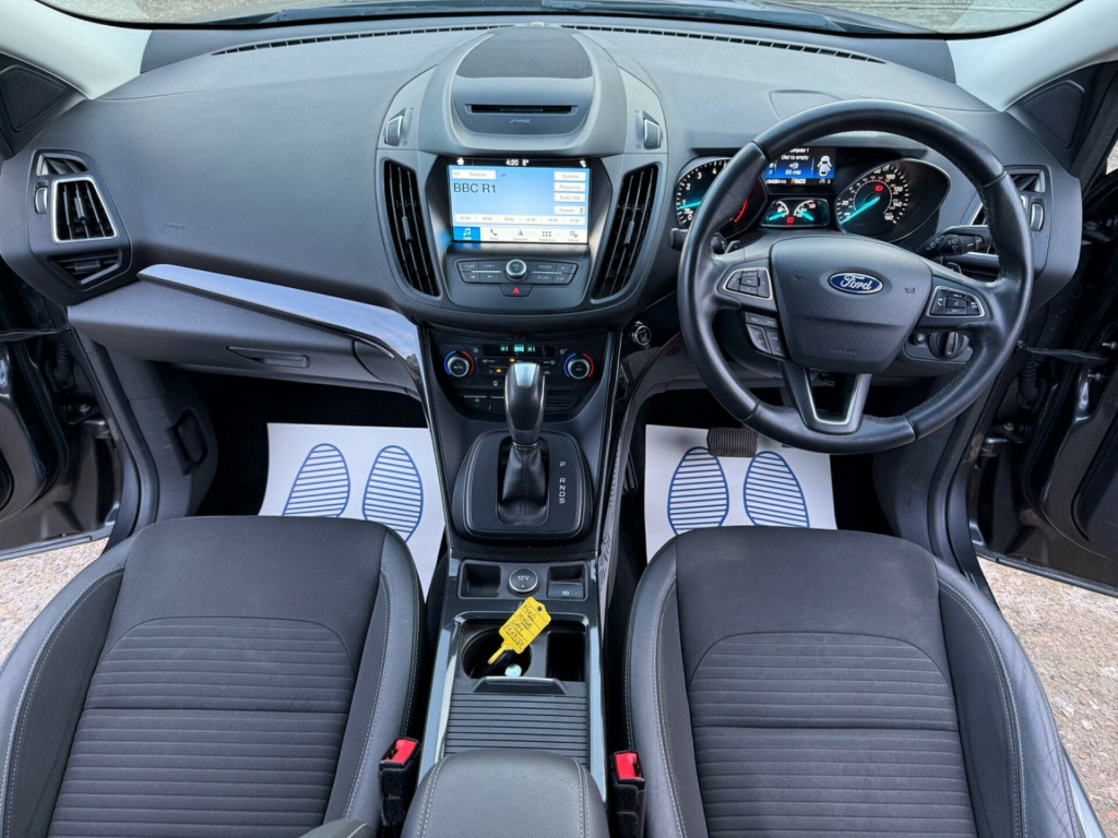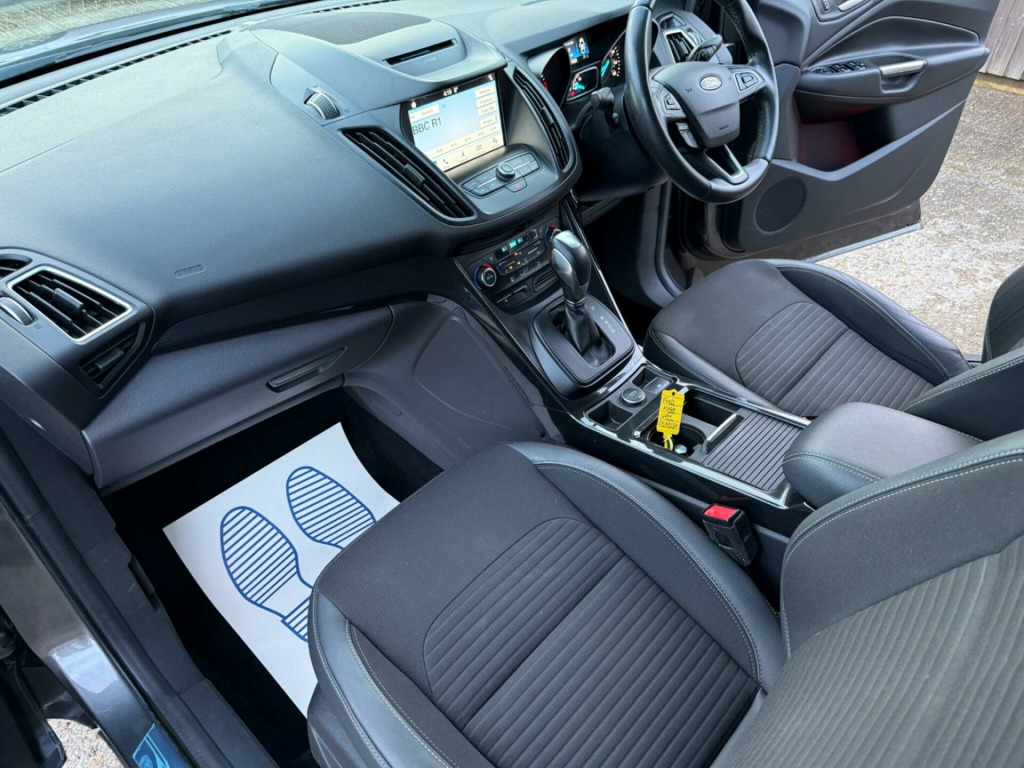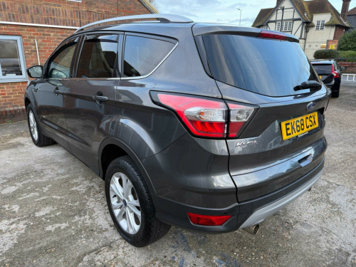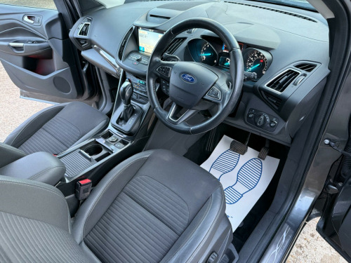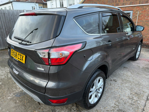 This 2018 Ford Kuga T Titanium boasts an MOT valid until February 2027 great service history and a clear vehicle history check and 6 months comprehensive warranty offering you peace of mind. This Four Wheel Drive model is powered by a 1.5 litre petrol engine and meets Euro 6 emissions standards. It comes equipped with a Premium Ford DAB Navigation System featuring Ford SYNC3, which includes Android Auto, Apple CarPlay, Bluetooth, a branded sound system, and rear parking assistance. Comfort is enhanced by DEATC Dual-Zone Electronic Automatic Temperature Control, and convenience is provided by the Ford Key Free System for keyless entry and start, alongside rear parking sensors.The Titanium trim level ensures a well appointed driving experience, with features designed to make every journey more enjoyable. The inclusion of a rear camera and parking sensors simplifies manoeuvring, while the advanced navigation system keeps you on track. The keyless entry and start system adds a touch of modern convenience. This Ford Kuga offers a compelling package of technology and practicality, making it a strong choice for those seeking a capable and feature rich SUV. atc - dual-zone electronic automatic temperature control, multimedia system - ford sync3 dab radio/cd/usb/mp3/music streaming via bluetooth with steering mounted audio controls, audible text messaging - voice control and usb connectivity, led daytime running lights, rain sensitive windshield wipers, dusk sensor (automatic) headlights, quickclear heated front windscreen with heated washer jets, cruise control with active speed limiter, windows - electrically operated front and rear with one touch lowering-closing on drivers side and global closing, tinted glass, power folding door mirrors with puddle lights, privacy glass to rear windows, compurt (drivers information centre), front centre armrest with storage, keyless entry/start remote central-double locking with 1 key, 17in alloy wheels - 5x2 spoke, 6-way manual driver seat with lumbar adjustment, 6-way manual passenger seat with lumbar adjustment, leather steering wheel and gear knob, seats - isofix mounting provision for child seats - outer seats only, rear seat - 60-40 split folding seat back and cushion with multi-step recline function, rear seats - 2-way head restraint up-down, 12v power socket - load compartment, airbags - driver and front passenger, airbags - drivers knee, airbags - front side impact, airbags - front and rear side curtain, anti-lock braking system - abs with electronic stability control - esc, armrest - folding centre - rear, centre console, child locks - manual on rear doors, courtesy lights - front and rear, door lever - chrome finish, eba - emergency brake assist, epas - electric power assisted steering, esp - electronic stability programme, electric parking brake, engine immobiliser, floor mats - front and rear - velour, fog lights - front, ford key free system - keyless entry with keyless start, ford power starter button, front seat - drivers manual height - fore-aft and recline adjustment, front seat - passenger manual height - fore-aft and seatback angle adjustment, front seats - seat-back map pockets, front suspension - independent with macpherson struts and anti-roll bar, headlights - halogen, headliner - woven, ips - intelligent protection system, load compartment carpet, locking wheel nuts, mini spare wheel - 17in steel, multi-colour ambient interior lighting, mykey, paddle shift, rear suspension - independent control blade multi-link system and anti-roll bar, scuff plates - front, steering column - rake and reach adjustment, thatcham category 1 alarm, tie-down hooks, tonneau cover, twin exhausts and rear diffuser, tyre pressure monitoring system, full service history (8 stamps in book), rear parking sensors, premium ford dab navigation system with ford sync3, bluetooth hands-free phone connectivity, voice control system, groove fabric and salerno leather - charcoal black
