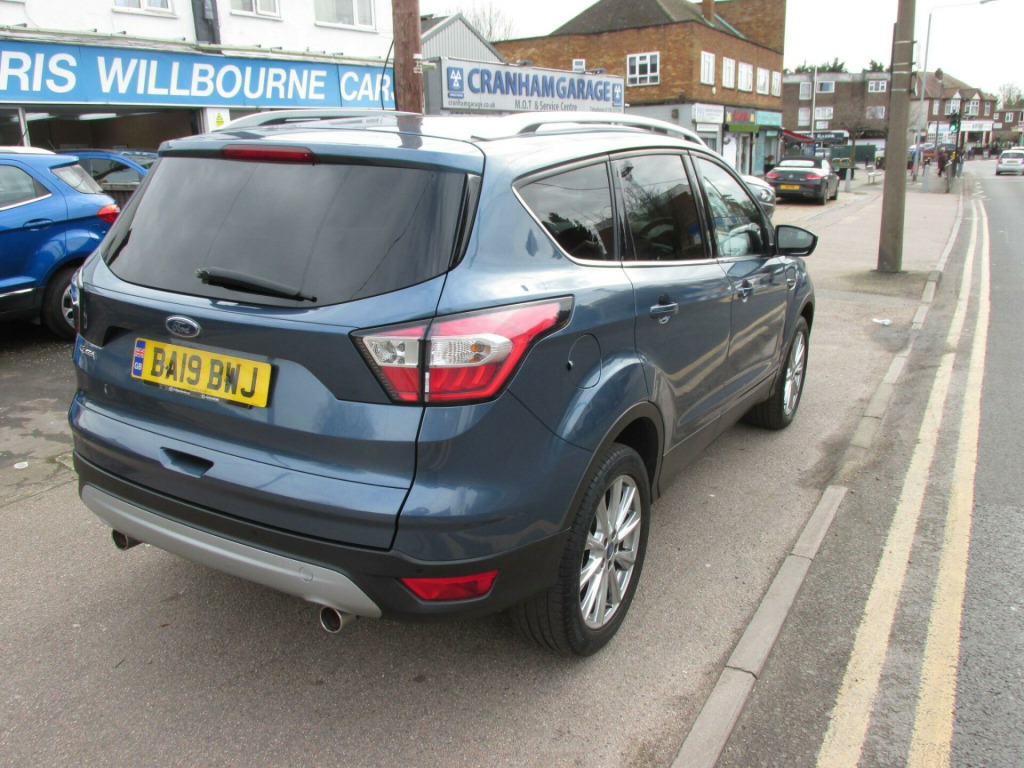 With an MOT valid until February 2027 and a full service history, this 2019 Ford Kuga T Titanium Edition offers excellent peace of mind. This Euro 6 compliant 1.5L petrol model presents a clear vehicle history and benefits from a recent service at 67186 miles. The Titanium Edition trim ensures a well equipped driving experience, featuring a premium Ford DAB Navigation System with Ford SYNC3, which seamlessly integrates Android Auto, Apple CarPlay, and Bluetooth connectivity.This Ford Kuga stands out with its advanced parking assistance, including rear parking sensors and a rear camera, making manoeuvring effortless. The Ford Key Free System allows for convenient keyless entry and start, while automatic halogen headlights with LED daytime running lights enhance visibility and safety. The branded sound system within the SYNC3 setup further elevates your journeys, indicating a superior level of comfort and technology compared to other vehicles in its class. v power socket - load compartment, 18in alloy wheels - 10 spoke - luster nickel, 6-way manual passenger seat with lumbar adjustment, abs - anti-lock braking system, airbags - driver and front passenger, airbags - drivers knee, airbags - front side impact, airbags - front and rear side curtain, appearance pack, armrest - folding centre - rear, automatic dimming rear view mirror, automatic halogen headlights with led daytime running lights, centre console, child locks - manual on rear doors, courtesy lights - front and rear, cruise control with active speed limiter, deatc - dual-zone electronic automatic temperature control, door lever - chrome finish, eba - emergency brake assist, epas - electric power assisted steering, esp - electronic stability programme, electric parking brake, engine immobiliser, exhaust - dual, floor mats - front and rear - velour, fog lights - front, ford key free system - keyless entry with keyless start, ford power starter button, ford sync3 dab navigation system, front passenger airbag with deactivation switch, front seat - drivers manual height - fore-aft and recline adjustment, front seat - drivers power height - fore-aft - lumbar - recline and cushion tilt adjustment, front seat - passenger manual height - fore-aft and seatback angle adjustment, front seats - seat-back map pockets, front suspension - independent with macpherson struts and anti-roll bar, headliner - woven, hill start assist, ips - intelligent protection system, leather steering wheel and gear knob, load compartment carpet, locking wheel nuts, mini spare wheel - 17in steel, multi-colour ambient interior lighting, mykey, power folding door mirrors with puddle lights, quickclear heated windscreen, rain sensitive windshield wipers, rear parking sensors, rear seat - 60-40 split folding seat back and cushion with multi-step recline function, rear seats - 2-way head restraint up-down, rear suspension - independent control blade multi-link system and anti-roll bar, remote central-double locking, scuff plates - front, seats - drivers 6 way adjustment with armrest and lumbar support, seats - drivers with manual lumbar support adjustment, seats - isofix mounting provision for child seats - outer seats only, steering column - rake and reach adjustment, thatcham category 1 alarm, tie-down hooks, tonneau cover, tyre pressure monitoring system, windows - electrically operated front and rear with one touch lowering-closing on drivers side and global closing, premium ford dab navigation system with ford sync3