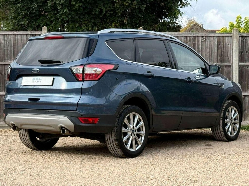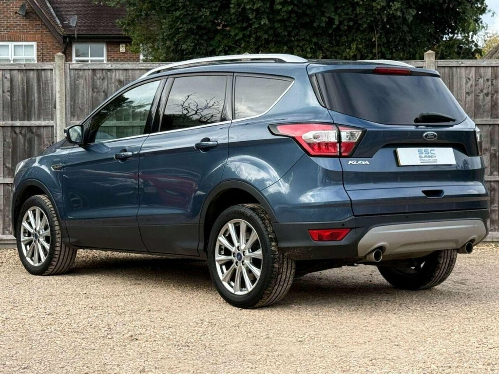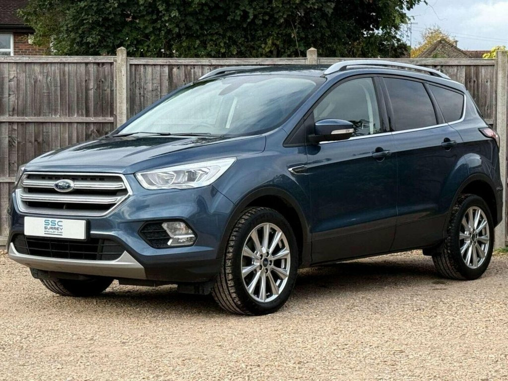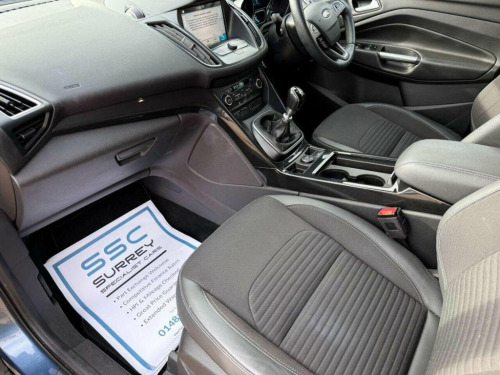 Surrey Specialist Cars are proud to present our lovely Ford Kuga Titanium Edition. This amazing car comes with Full Service History, finished in stunning metallic blue with half leather seats. The car will come with Long MOT so it will be ready to go. The 1.5L Petrol engine offers great economy at over 38 MPG on combined cycle. Features Include Multifunction Steering Wheel, Trip Computer, Satellite Navigation, Stereo/Phone Control, Parking Sensors, FM/DAB Radio, CD Player, Bluetooth Audio, USB Input, AUX Input, Air Conditioning, Heated Rear and Front Screen, Start/ Stop System, 12V Charging Socket, Fog Lights, 6 Speed Manual Gearbox, 18 Inch Alloy Wheels and two Remote Control Keys to name a few. We are open 7 days a week, and prepare all of our cars to the highest standards. We have a Click & Collect option available, and can also arrange delivery on request. All cars are HPI clear and a full history report is provided with every car. We welcome any inspection and viewing is highly recommended. All cars are available with our AA warranty starting from just ?150 for 3 months. Debit and credit card facilities are available and we offer competitive finance packages. If you have any questions or would like to view any of our cars give us a call or drop us a message on whatsapp 01483 363 144 to arrange an appointment with one of our team. We also offer full bespoke walkaround videos on request. We are always on the lookout for high quality stock, if you have a car we are int 12V Power Socket - Load Compartment, 18in Alloy Wheels - 10 Spoke - Luster Ni, 6-Way Manual Driver Seat with Lumbar Adj, 6-Way Manual Passenger Seat with Lumbar , Airbags - Driver and Front Passenger, Airbags - Drivers Knee, Airbags - Front Side Impact, Airbags - Front and Rear Side Curtain, Anti-Lock Braking System - ABS with Elec, Appearance Pack, Armrest - Folding Centre - Rear, Auto Dimming Rear View Mirror, Centre Console, Child Locks - Manual on Rear Doors, Courtesy Lights - Front and Rear, Cruise Control with Adjustable Speed Lim, DEATC - Dual-Zone Electronic Automatic T, Door Lever - Chrome Finish, Door Mirrors - Power-Operated - Heated a, EBA - Emergency Brake Assist, EPAS - Electri