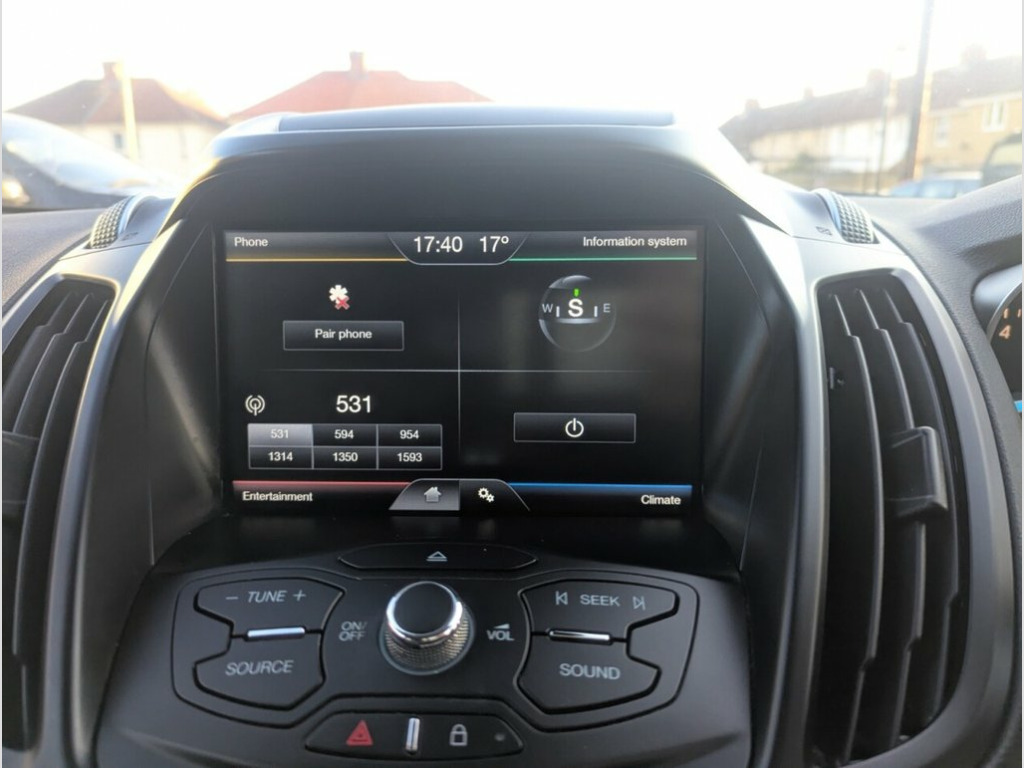 BRISTOL CAZ THIS 2015 FORD KUGA 1.5T TITANIUM SUV 5 DOOR MANUAL IN METALLIC MAGNETIC GREY WITH CONTRASTING 1/2 BLACK TORION LEATHER AND VECTOR CLOTH INTERIOR FULL SERVICE HISTORY CLIMATE CONTROL CRUISE CONTROL DAB MEDIA SCREEN WITH BLUETOOTH AND AUX...REAR PARKING SENSORS REAR PRIVACY GLASS 17 INCH MULTI SPOKE ALLOYS BRISTOL CLEAN AIR ZONE FRIENDLY SUPERB FAMILY SUV 17in Alloy Wheels - 5x2 Spoke, 8in High Resolution Touchscreen, ABS - Anti-lock Braking System, Air Conditioning - Dual Zone Electronic , Airbags - Drivers Knee, Airbags - Front and 2nd Row Curtain, Airbags - Front Passenger, Airbags - Side Impact, Alarm - Thatcham Category 1 with Volume , Armrest - Folding Centre - Rear, Audible Text Messaging, Automatic Dimming Rear View Mirror, Automatic Rain Sensing Wipers, AUX Connection, Bluetooth Hands-free Phone, Body Colour Exterior Mirrors, CD Player, Centre Console - Bottle-Can Holder, Centre Console - Stowage Tray, Courtesy Light - Footwell Illumination, Courtesy Light - LED Overhead with Theat, Cruise Control with Speed Limiter, Daytime Running