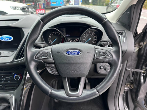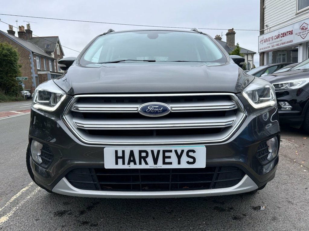 SERVICE HISTORY MOT JUNE 2026. This 2017 Ford Kuga T Titanium presents an exceptional opportunity with its remarkably low mileage of just 43,000 miles. This Euro 6 compliant 1.5 litre petrol model offers a refined driving experience,  Powered by an efficient 1.5 litre petrol engine meeting Euro 6 emissions standards & enhanced by its Titanium trim. Key features include automatic halogen headlights with distinctive LED daytime running lights, ensuring excellent visibility. Convenience is paramount with keyless entry and opening, allowing seamless access to the vehicle.  The Ford Kuga  stands out with its impressive fuel economy, achieving an excellent average 45 miles per gallon, making it a cost effective choice for both daily commutes and longer journeys. The interior boasts DEATC dual zone electronic automatic temperature control, providing individual climate settings for driver and passenger comfort. For effortless parking, rear parking sensors are fitted, assisting you in tight spaces. The SYNC 3 system, complete with an 8 inch colour touchscreen, offers Bluetooth connectivity for handsfree calls and music streaming, voice control, a USB port, and emergency assistance. These carefully selected features demonstrate the superior level of comfort and technology this Kuga offers compared to other vehicles in its class. Carplay/Android Auto will help you keep in touch on the move while you listen to your favourite tunes! A stunning desirable example. 17in Alloy Wheels - 5x2 Spoke, Accessory Power Socket - 12V, Accessory Power Socket - 12v in Luggage , Airbags - Driver and Front Passenger, Airbags - Drivers and Front Passenger Fr, Airbags - Drivers Knee, Airbags - Front Side Impact, Armrest - Folding Centre - Rear, Audible Text Messaging - Voice Control a, Automatic Dimming Rear View Mirror, Automatic Halogen Headlights with LED Da, Automatic Headlights - Rain Sensing Wipe, Centre Console, Child Locks - Manually Adjustable Rear D, Courtesy Light - Footwell Illumination, Courtesy Light - Front and Rear, Cruise Control with Active Speed Limiter, DEATC - Dual-Zone Electronic Automatic T, Door Lever - Chrome Finish, Electric Parking Brake, El