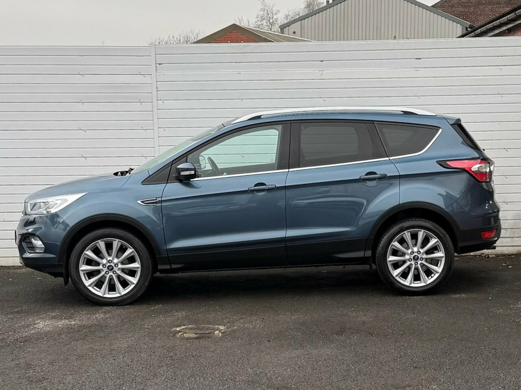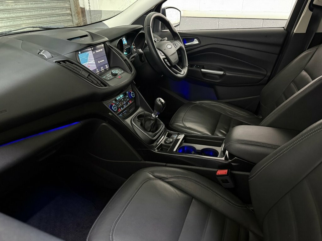 Here we have a superb 2019 Ford Kuga 1.5T EcoBoost Titanium X Edition SUV, finished in attractive metallic paint and offering a high level of comfort, technology and practicality. This vehicle comes with a full service history, has been very well looked after, is lovely and clean inside and out, and drives superbly. Powered by the smooth and efficient 1.5 EcoBoost petrol engine producing 150 ps, paired with a manual gearbox, this Kuga delivers a confident and enjoyable drive while remaining Euro 6 compliant. The Titanium X Edition specification is particularly impressive and includes 19-inch alloy wheels, electric folding door mirrors, sun protection glass, an electric tailgate, and rear parking sensors. One of the standout features is the panoramic sunroof, which floods the cabin with natural light and adds to the premium feel. Inside, the interior benefits from full leather upholstery, electric front seats, a leather multifunction steering wheel, dual-zone climate control, and heated front seats, providing excellent comfort for both driver and passengers. Technology highlights include a touchscreen multimedia system with satellite navigation, Apple CarPlay and Android Auto, Bluetooth telephone and audio, and DAB digital radio. Additional features include automatic headlights and wipers, cruise control, front centre armrest, twin cupholders, twin USB ports, and ISOFIX child seat mounting points, making this a very practical and family-friendly SUV. A well-specified, spa Salerno Leather - Charcoal Black, Family Pack, Driver Assistance Pack, Winter Pack, Premium Ford DAB Navigation System with , Magnetic, 12V Power Socket - Load Compartment, 19in Alloy Wheels - 10-Spoke Polished, Airbags - Driver and Front Passenger, Airbags - Drivers Knee, Airbags - Front Side Impact, Airbags - Front and Rear Side Curtain, Anti-Lock Braking System - ABS with Elec, Appearance Pack, Armrest - Folding Centre - Rear, Auto Dimming Rear View Mirror, Bi-Xenon Headlights with Dynamic Bending, Centre Console, Child Locks - Manual on Rear Doors, Cruise Control with Adjustable Speed Lim, DEATC - Dual-Zone Electronic Automatic T, Door Lever - Chrome Finish, Door Mirrors - Power-Operated