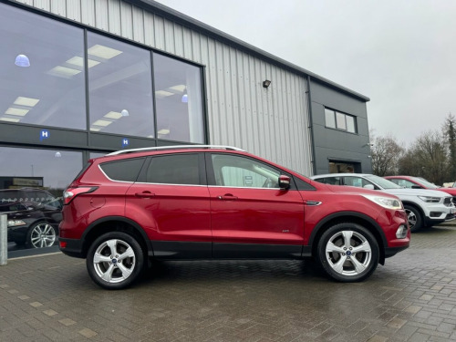 DRIVE HOME TODAY IN THIS SUPERB LOW MILEAGE 2017 FORD KUGA 1.5T ECOBOOST TITANIUM-X 5 DOOR AUTOMATIC AWD EURO 6 182 BHP FINISHED IN RUBY RED AND TRIMMED WITH HEATED BLACK LEATHER SEATING. LOW MILEAGE ONLY 43K WITH A FULL SERVICE HISTORY INC 7 XSERVICES AND LAST SERVICED @ 41,285 MILES. A GREAT COMBINATION OF STYLE, LUXURY AND ECONOMY & PRACTICALITY. GREAT SPEC INC 18"ALLOY WHEELS, HEATED SEATS, GLASS PANORAMIC ROOF, SAT-NAV, CAR PLAY, REAR CAMERA, PARK ASSIST, PRIVACY GLASS, ELECTRIC TAIL GATE, CRUISE & CLIMATE CONTROL, FULL SIZE SPARE WHEEL. Handsfree Power Tailgate, Salerno Leather - Ebony, Ruby Red, 18in Alloy Wheels - 5 Spoke, 6-Way Manual Passenger Seat with Lumbar , Accessory Power Socket - 12V, Accessory Power Socket - 12v in Luggage , Airbags - Driver and Front Passenger, Airbags - Drivers Knee, Airbags - Drivers and Front Passenger Fr, Airbags - Front Side Impact, Armrest - Folding Centre - Rear, Audible Text Messaging - Voice Control a, Automatic Dimming Rear View Mirror, Automatic Headlights - Rain Sensing Wipe, Bi-Xenon Headlights with Dynamic Bending, Centre Console, Child Locks - Manually Adjustable Rear D, Courtesy Light - Footwell Illumination, Courtesy Light - Front and Rear, Cruise Control with Active Speed Limi