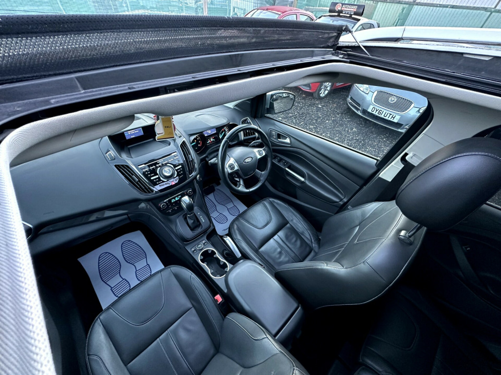 Ford Kuga 1.5T Titanium X Auto AWD - TOP SPEC - PAN ROOF - HEATED SEATS - FRONT AND REAR SENSORS - REAR TABLES AND CUPHOLDERSTRADE YOUR OLD CAR IN TODAY - DRIVE AWAY SAME DAY!A premium example of the Ford Kuga Titanium X, finished in a sleek metallic grey and loaded with comfort, tech and convenience features. This is the sought-after AWD automatic model with the reliable 1.5 EcoBoost engine and top spec from factory. Backed by full service history, a recent gearbox service and 7 months warranty - this is the PERFECT winter family car!Comes with the following:• 7 Months Warranty• Full Service History• Gearbox Just Serviced• Electric Panoramic Roof• 1.5L Petrol Engine• Automatic Gearbox• AWD (All-Wheel Drive)• ULEZ Compliant• Electric Tailgate• Front & Rear Parking Sensors• Heated Front Seats• Cruise Control with Limiter• Rear Folding Tray Tables• Front Centre Armrest• Rear Centre Armrest with Cupholders• Dual-Zone Climate Control• Sony Sound System• Bluetooth, DAB Radio, USB & AUX• Infotainment System• Automatic Headlights & Wipers• ISOFIX Mounting Points• Alloy Wheels• Rear Privacy Glass• HPI Clear• Excellent Condition Inside & OutA standout high-spec Kuga that offers power, comfort and practicality in one complete SUV package. Perfect for families, commuting or weekend trips.Warranty AvailablePart-Exchange WelcomeViewings & Test Drives AvailableNationwide Delivery AvailableContact Us Today to Book Your ViewingVehicle registered: 21/07/2015Buying with MP Motors London LtdMP Motors London LTD is a trusted used car dealership based in North West London, known for offering quality checked vehicles at fair prices. We focus on reliable cars that suit new drivers, families and everyday commuters, making the buying process simple, clear and stress free.Every car is inspected, road tested and HPI cleared before sale, giving you full peace of mind. We offer flexible warranty options, nationwide delivery, part exchange and honest guidance throughout the process.Our aim is to give every customer a smooth experience from start to finish, with friendly support and zero pressure. Whether you are buying your first car or upgrading your current one, MP Motors London LTD is here to help you find a dependable vehicle you can trust. r conditioning, bluetooth connection, climate control, colour satnav, door mirrors electrically foldable, dual climate zones, dvd player, full leather, panoramic sunroof, rain-sensing wipers, satellite navigation, usb/ipod interface, cruise control, front parking sensor, parking sensors, rear parking sensor, trip computer, abs, child locks, locking wheel nuts, remote central locking, tracker fitted, automated high-beam assist, windscreen heating, cd player, electric seats, electrically adjustable drivers seat, front armrest, heated front seat, heated seats, lumbar support, seat-back tables, 2 zone climate control, electric sunroof, opening panoramic glass roof, push button start, alloy wheels, body coloured bumpers, colour coded body, roof rails, tyre repair kit