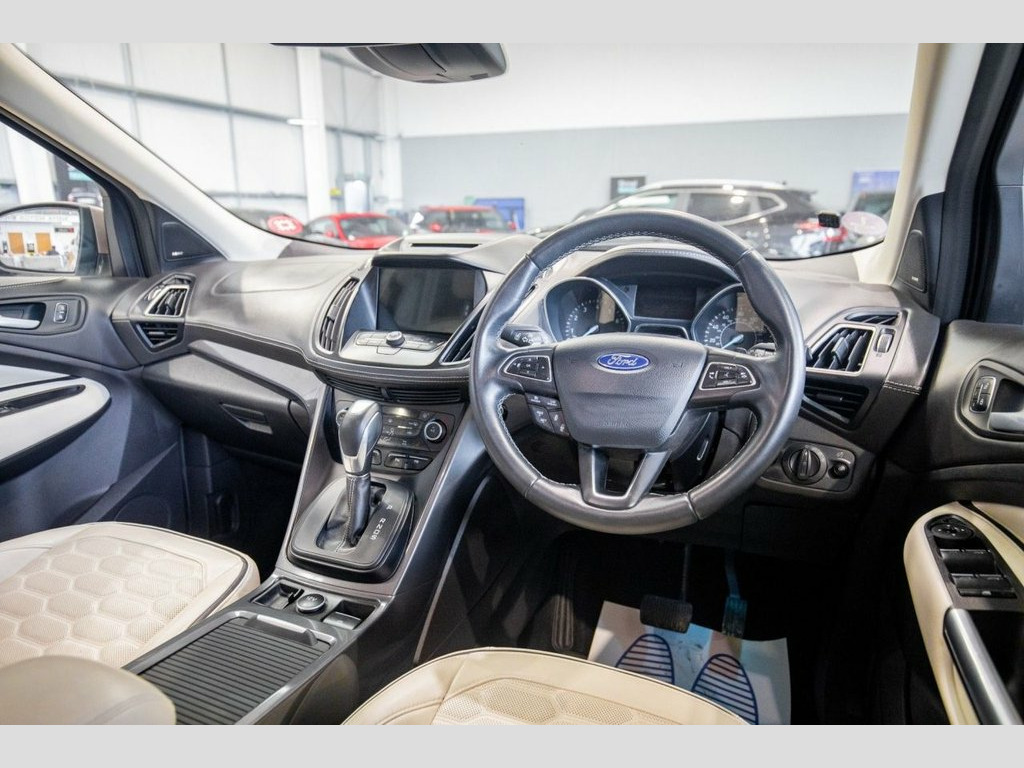 2018 Ford Kuga Vignale – 1 Owner | Full Service History | 50,000 Miles For sale: a beautifully maintained 2018 Ford Kuga Vignale in the stunning Milano Grigio Exclusive paint finish. Just one owner from new, with a full documented service history, and having covered just over 50,000 miles. This top-of-the-range Vignale blends luxury, technology and safety with an excellent driving experience. Key Features & Specification 1 Owner From New Full Service History Just over 50,000 miles Milano Grigio Exclusive exterior colour Windsor Full Leather Interior in Cashmere Hands-Free Power Tailgate (foot-activated) Adaptive Cruise Control Blind Spot Information System (BLIS) Active City Stop Wired Dashcam (professionally installed) Reverse Camera Vignale Luxury Styling & Trim Keyless Entry and Keyless Start SYNC 3 Touchscreen with Navigation and Apple CarPlay/Android Auto Front and Rear Parking Sensors Premium Vignale 18" Alloy Wheels Heated Front Seats and Dual-Zone Climate Control Power-Folding Door Mirrors LED Daytime Running Lights and Bi-Xenon Headlights Condition The car is in excellent condition inside and out, reflecting careful single ownership. The interior's Cashmere Windsor leather is clean and well-kept, and all Vignale refinements have been meticulously maintained. Drives superbly with no issues. Dashcam and reverse camera are fully operational. Summary A rare opportunity to own a high-specification Ford Kuga Vignale with luxury features, advanc Active City Stop, Blind Spot Information System, Milano Grigio, Windsor Leather - Cashmere, Adaptive Cruise Control, 12V Power Socket - Load Compartment, 18in Alloy Wheels - Unique 5x2-Spoke - S, 6-Way Manual Passenger Seat with Lumbar , Airbags - Driver and Front Passenger, Airbags - Drivers Knee, Airbags - Front Side Impact, Airbags - Front and Rear Side Curtain, Anti-Lock Braking System - ABS with Elec, Armrest - Folding Centre - Rear, Audible Text Messaging - Voice Control a, Bi-Xenon Headlights with Dynamic Bending, Centre Console, Child Locks - Manual on Rear Doors, Courtesy Lights - Front and Rear, Cruise Control with Active Speed Limiter, DEATC - Dual-Zone Electronic Automatic T, Doo