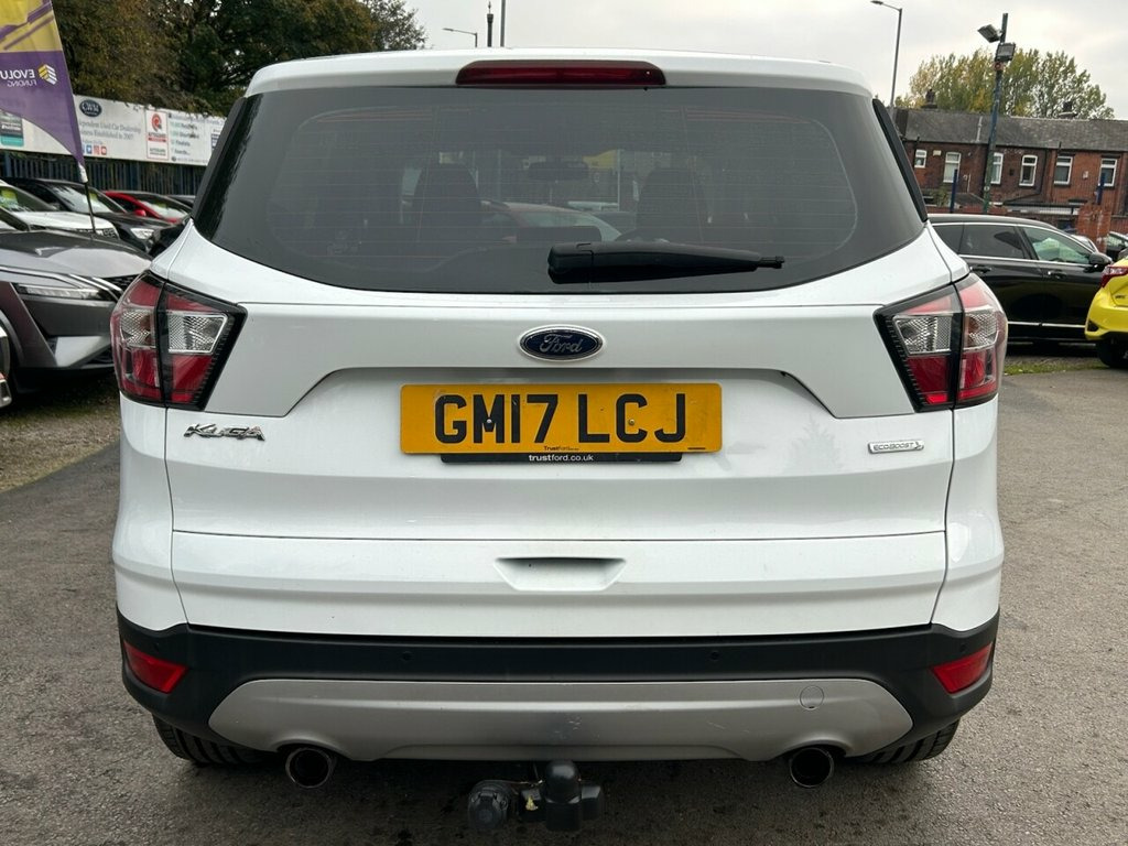Discover this 2017 Ford Kuga Zetec with exceptionally low mileage for its age, having covered just 44,489 miles. This T Zetec model is equipped with a 1.5 litre petrol engine and meets Euro 6 emissions standards. It boasts a clear vehicle history check, offering peace of mind. Inside, you'll find manual air conditioning to keep you comfortable, and rear parking sensors to assist with manoeuvring. This Ford Kuga Zetec stands out with its very low mileage, indicating it has been used sparingly and is likely to have plenty of life left. Its low insurance group rating is another advantage, suggesting that running costs could be more affordable compared to similar vehicles. This combination of well preserved provenance and practical features makes it a sensible choice. 17in Alloy Wheels - 10 Spoke, Accessory Power Socket - 12V, Accessory Power Socket - 12v in Luggage , Airbags - Driver and Front Passenger, Airbags - Drivers and Front Passenger Fr, Airbags - Drivers Knee, Airbags - Front Side Impact, Audible Text Messaging - Voice Control a, Automatic Headlights - Rain Sensing Wipe, Centre Console, Child Locks - Manually Adjustable Rear D, Courtesy Light - Footwell Illumination, Courtesy Light - Front and Rear, Cruise Control with Active Speed Limiter, Door Lever - Chrome Finish, Door Mirrors - Electrically Operated and, Electric Windows - Front and Rear with G, EPAS - Electric Power Assisted Steering, ESP - Electronic Stability Programme, Flat Load Floor B