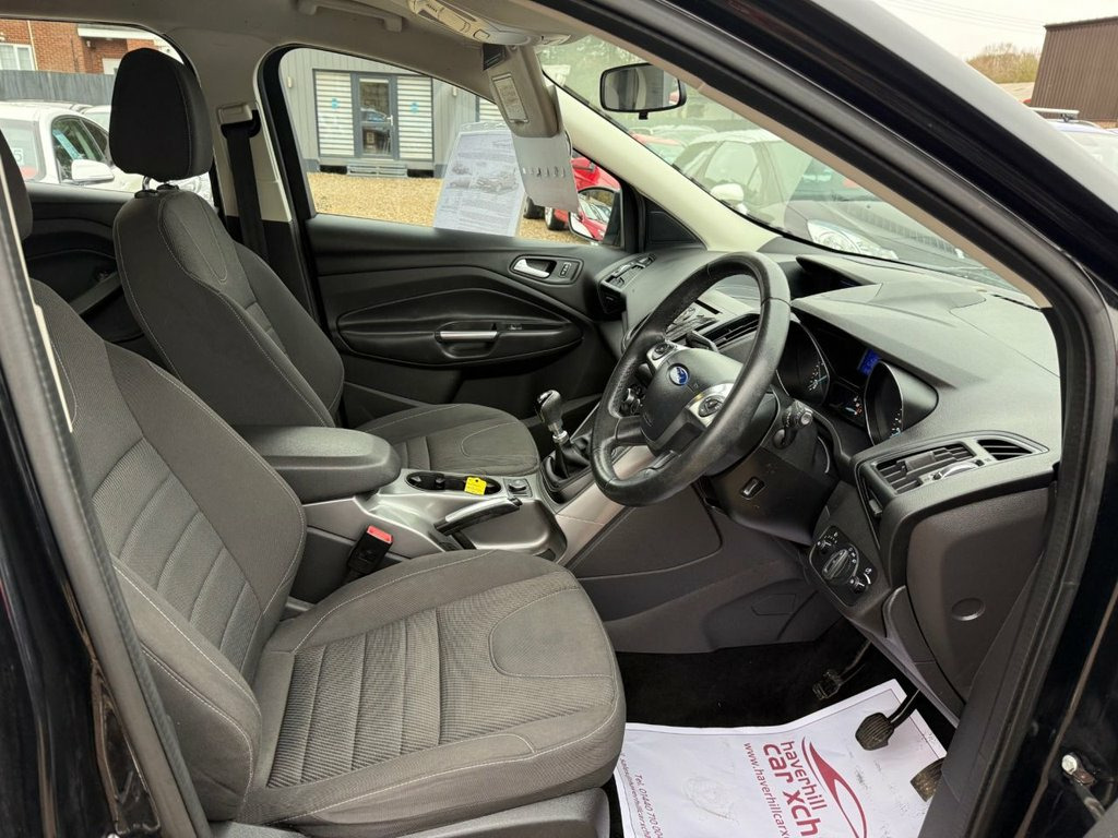 LONG MOT UNTIL 23.07.2026+FORD RADIO-CD PLAYER+BLUETOOTH HANDSFREE AND VOICE CONTROL+AIR-CONDITIONING+LED DAYTIME RUNNING LIGHTS+PARKING ASSISTANCE+'PANTHER BLACK' PAINT+17 INCH ALLOY WHEELS. At Haverhill Car Xchange we would like to offer you our Ford Kuga Zetec SUV which has been finished in a 'Panther Black' paint with 'Charcoal Black Vector Cloth' upholstery. Specification Includes a Ford 6000 Radio-CD Player, Bluetooth Handsfree and Voice Connection, AUX Connection, USB Connection, Portable Audio Device Connector, Emergency Assistance, Air-Conditioning, Cruise Control with Speed Limiter, Front and Rear Electric Windows with One-Touch Facility, Body Coloured Bumpers/Door Handles/Rear Roof Spoiler and Door Mirrors with Puddle Lights, Stainless Steel Scuff Plates, Chrome Front Upper Grille, Daytime Running Lights, Headlights with Courtesy Delay, Front Fog Lights, Parking Assistance, Leather Multifunction Steering Wheel, Heated Front Windscreen, 17 Inch Alloy Wheels, Electric Power Assisted Steering, ABS Breaking System, Airbags, Alarm, Immobiliser, Remote Central Locking and ISOFIX Anchorage Points for Child Seats. Vector Cloth - Charcoal Black, Parking Sensor - Rear, Panther Black, 17in Alloy Wheels - 5x2 Spoke - Premium, ABS - Anti-lock Braking System, AUX Connection, Air Conditioning - Manual, Airbags - Drivers Knee, Airbags - Front Passenger, Airbags - Front and 2nd Row Curtain, Airbags - Side Impact, Alarm - Thatcham Category 1 with Volume , Audible Text Messaging, Bluetooth Handsfree and Voice Control, Body Colour Exterior Mirrors, Bounce-Back Sensors, Courtesy Light - Footwell Illumination, Courtesy Light - Front and Rear Reading , Cruise Control with Speed Limiter, Daytime Running Lamps, Door Handles - Body Colour, Door Lever - Aluminium, Door Mirrors - Electrically Operated and, Door Mirrors -