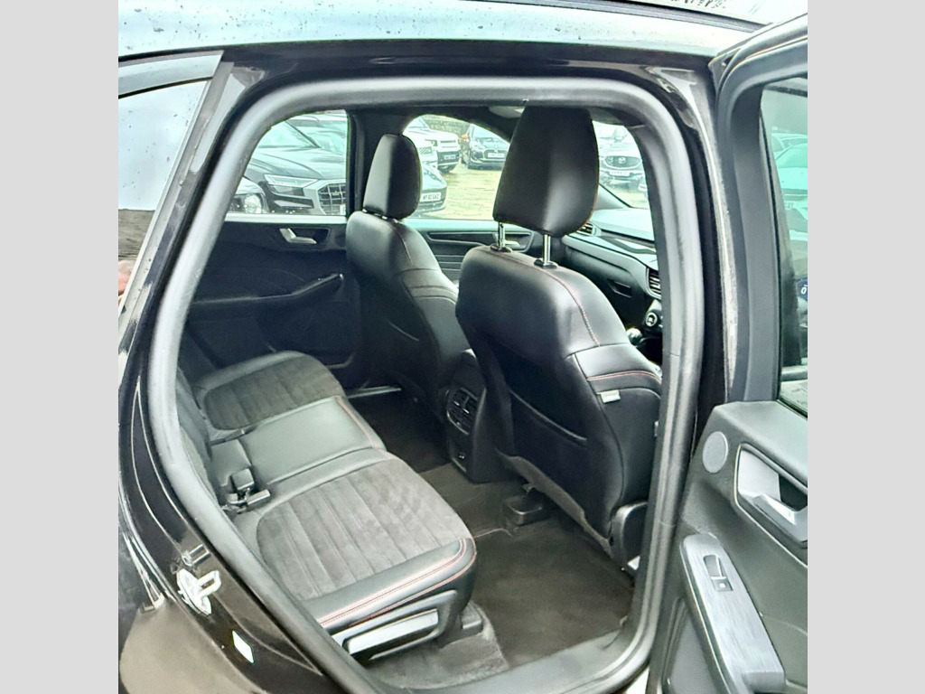 This 2021 Ford Kuga ST-Line Edition has been cherished by just one owner since new, offering a superb example of this popular SUV. Powered by an efficient 2.0L Diesel engine meeting Euro 6 emissions standards, this ST-Line Edition boasts a suite of intelligent features designed for convenience and safety. These include automatic headlights with auto high-low beam and follow me home lighting, a rear view camera, and front and rear parking sensors to assist with manoeuvring. Access and starting are made effortless with the Ford Key Free System and Ford Power Start Button, allowing for keyless entry and ignition.The highlights of this Ford Kuga ST-Line Edition demonstrate its excellent value and efficiency. Achieving an impressive 58 miles per gallon, it offers significant savings on fuel costs compared to many other vehicles in its class. Furthermore, its low CO2 emissions and placement in a low insurance group mean that running costs are kept to a minimum, making it a sensible choice for a wide range of drivers. rtial sensico - rapton cloth - ebony with red stitching, driver assistance pack, technology pack, 10-way power adjustable drivers seat, 12v power point in floor console, 12v power point in cargo area, 12v socket - voltage regulator, 18in alloy wheels - 10 spoke - rock metallic, 2nd row sliding seats with 60-40 split, 8-way manual passenger seat including lumbar support and height adjust, airbag - driver and front passenger side, airbag - front passenger deactivation switch, airbags - driver and front passenger, airbags - front and rear side curtain, alloy pedals, aluminium - finish front scuff plates with st-line script, ambient lighting, auto dimming rear view mirror, auto wipers, automatic door relocking, automatic headlights with auto high-low beam, b and o premium audio system with large instrument cluster, black roof rails, centre console with electronic parking brake, cruise control with adjustable speed limiter, dark headliner and pillars, driver and passengers sun visor with illumination, dual exhaust tailpipes with unique brushed stainless steel finish, dual zone electronic automatic temperature control - deatc, epas - electric power assisted steering, esc - electronic stability programme and abs - anti lock braking system, engine immobiliser - securilock, exterior door handles - body coloured, flat bottom steering wheel in sensico with red stitching, floor mats - front and rear - st-line, ford easy fuel system, ford key free system with ford power start button - keyless start, fordpass connect, front led fog lights with cornering function, front seats - 2-way manual height adjust passive head restraints, front seats - drivers and passengers seatback map pockets, front windows - laminated glass, front and rear bumper - sporty body colour with rear ebony high-gloss insert, front and rear parking sensors, full digital 12.3in instrument cluster, full led headlamps, gear shift - unique leather trimmed knob with satin aluminium insert and red gaiter stitching, glovebox lights, handsfree power tailgate, headlights - automatic follow me home lighting, headlights - unique bending, heated and power folding door mirrors with puddle lights, high-mounted brake light, intelligent speed assist, kuga badge, led daytime running lights, lane keeping aid with lane departure warning, large rear spoiler, load compartment - lights, load compartment - tie down hooks, load compartment carpet, locking wheel nuts, lower bodyside moulding - body colour, lower door frame beltline - black, manual childproof locks on rear doors, mini overhead console with sunglasses holder bin, mobile phone wireless charging pad, mykey gen ii, post collision braking, power door deadlocks - double locking, power door locks, power front and rear windows with shot up and down - one global closing, pre-collision assist with autonomous emergency braking - camera detection, privacy glass, quickclear heated windscreen, rear lights - led, rear seat centre head restraint, rear seats - 2-way head restraint up-down, rear seats - folding centre armrest with integrated cup holder, rear seats - sliding seat adjust tracks - fore-aft, rear view camera, red brake calipers, remote power central double locking doors, remote tailgate release, removable package tray, rocker panel mouldings - body colour - st-line design, st-line badge on left and right side wings, st-line bodystyling kit, st-line front and rear bumper moulding - body colour, st-line leather gear knob, satellite navigation - navigation center, seat belt - drivers - front passenger and rear seat belt reminder alert, seat belts - front 3-point seatbelts with load limiter, seat belts - front height adjustable, seat belts - rear retractable rear belt - 3-point all positions, seats - isofix mounting provision for child seats - outer seats only, selectable drive modes, sports seats, standard duty suspension, steering column - locking electric, steering column - rake and reach adjustment, tailgate badge - hybrid - mhev, tailgate handle - body colour, tether anchorage - two rear seat top tether anchorage restraints, thatcham category 1 perimeter and volume sensing alarm, tow hooks - front and rear, trip computer, twin exhausts, tyre inflation kit, tyre pressure monitoring system, upper door frame beltline - black, wiper - intermittent rear window wiper, wrong way alert